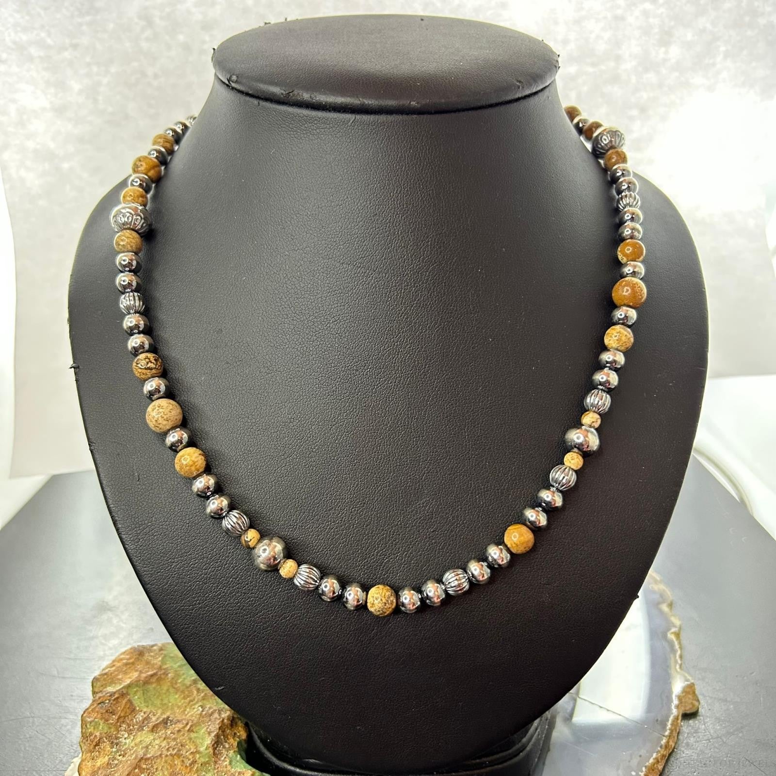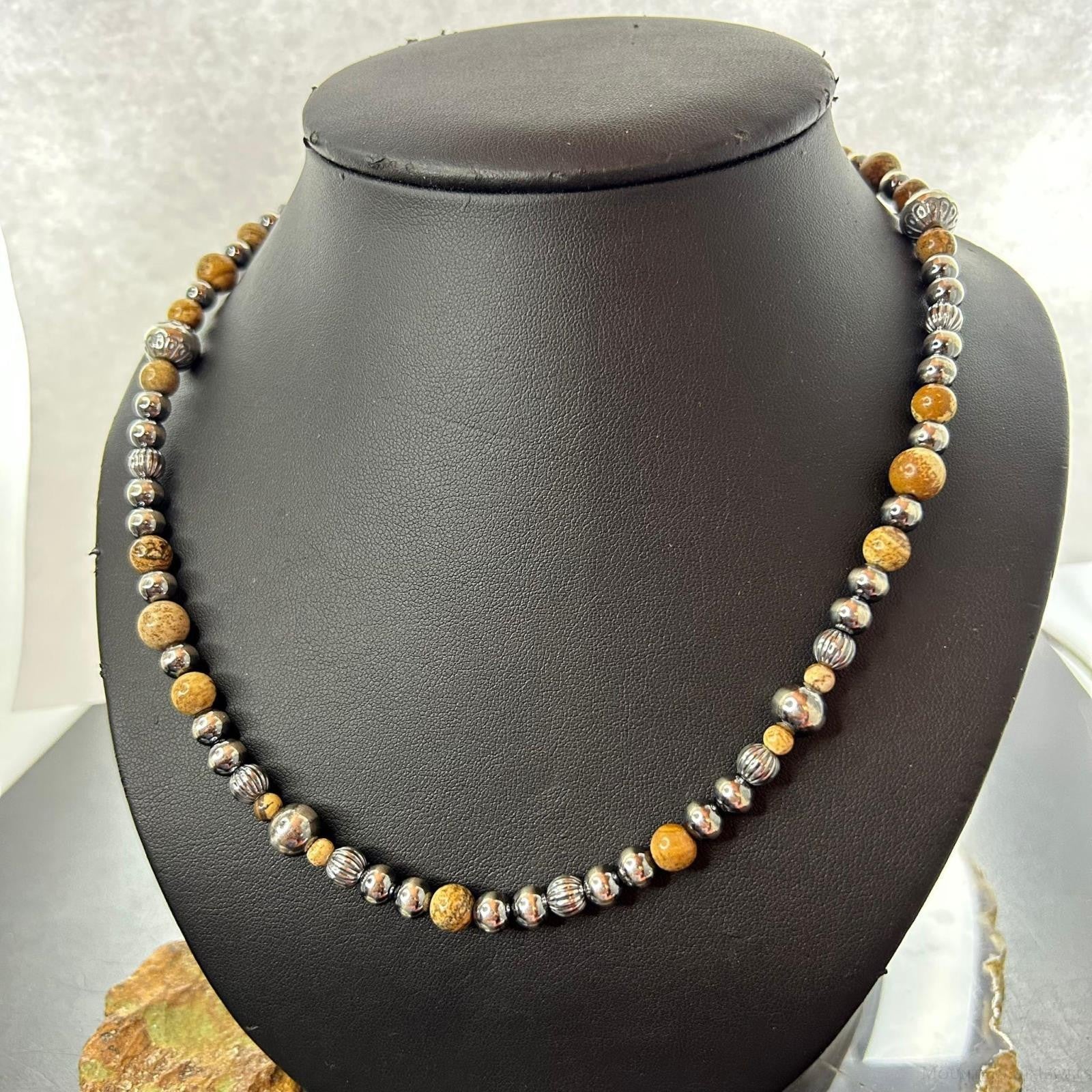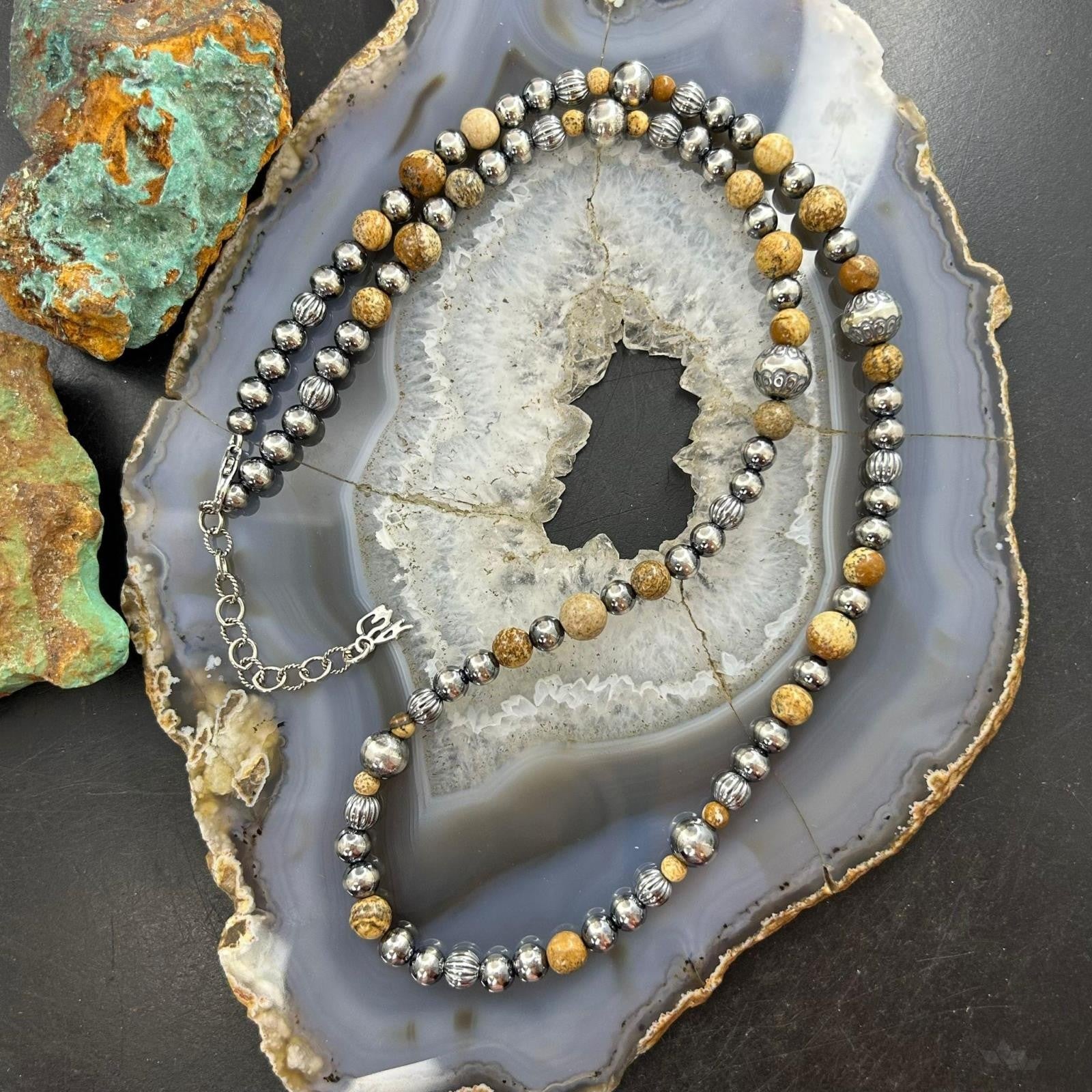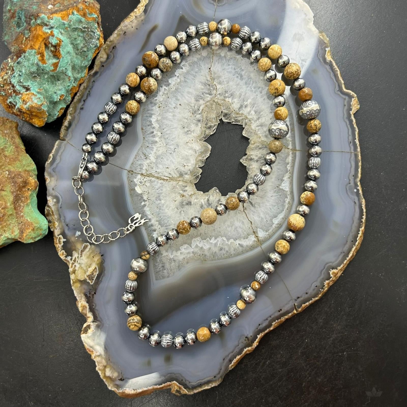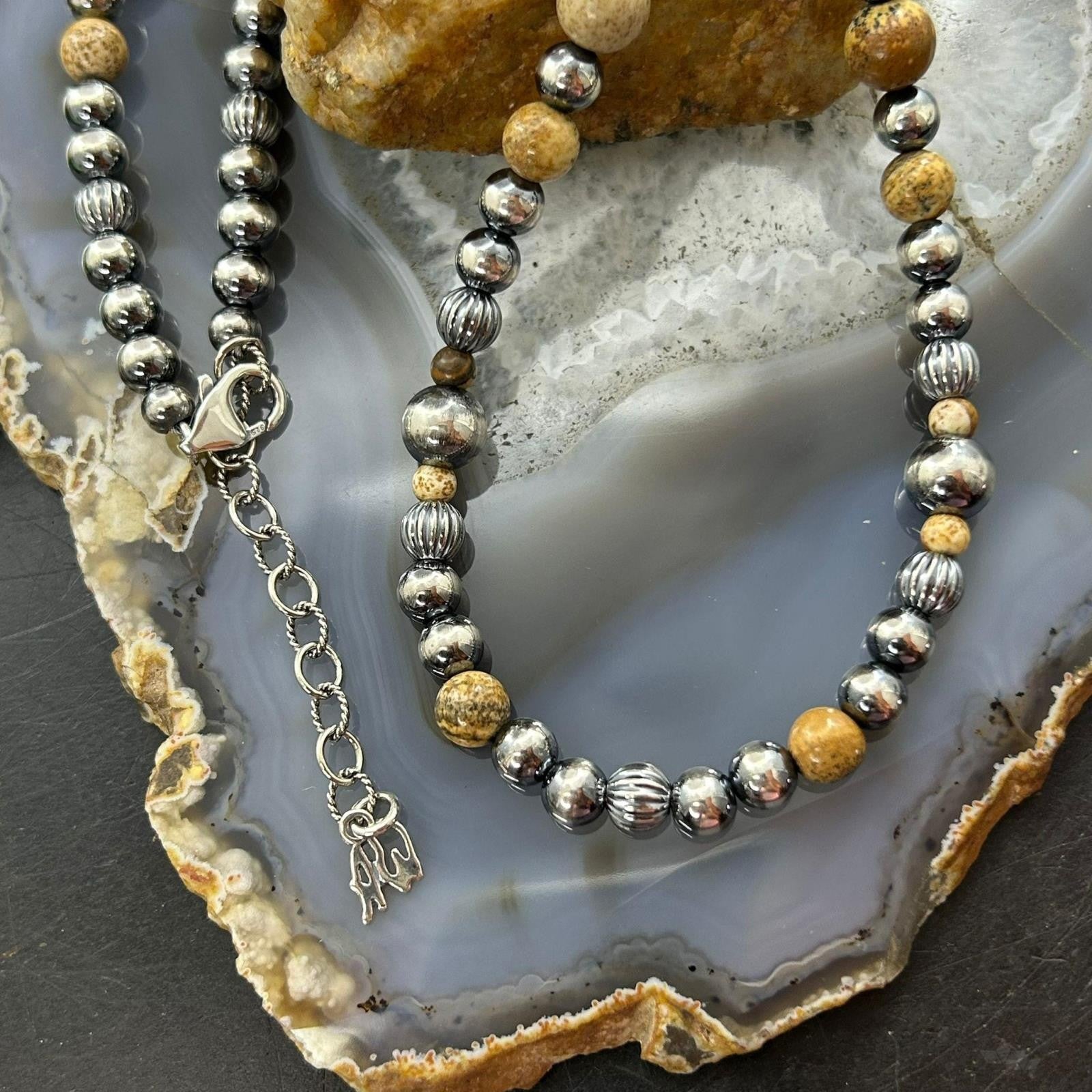 Carolyn Pollack Sterling Silver Decorated Beaded & Picture Jasper Necklace For Women