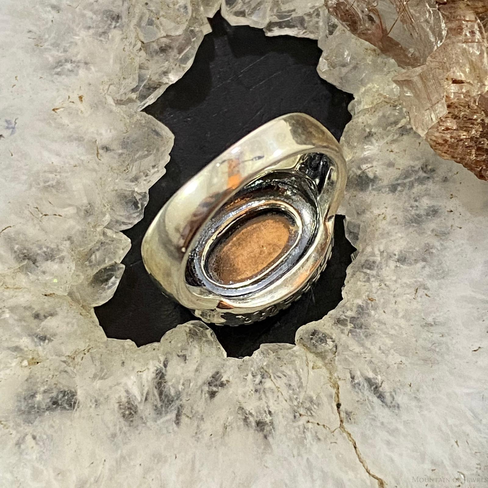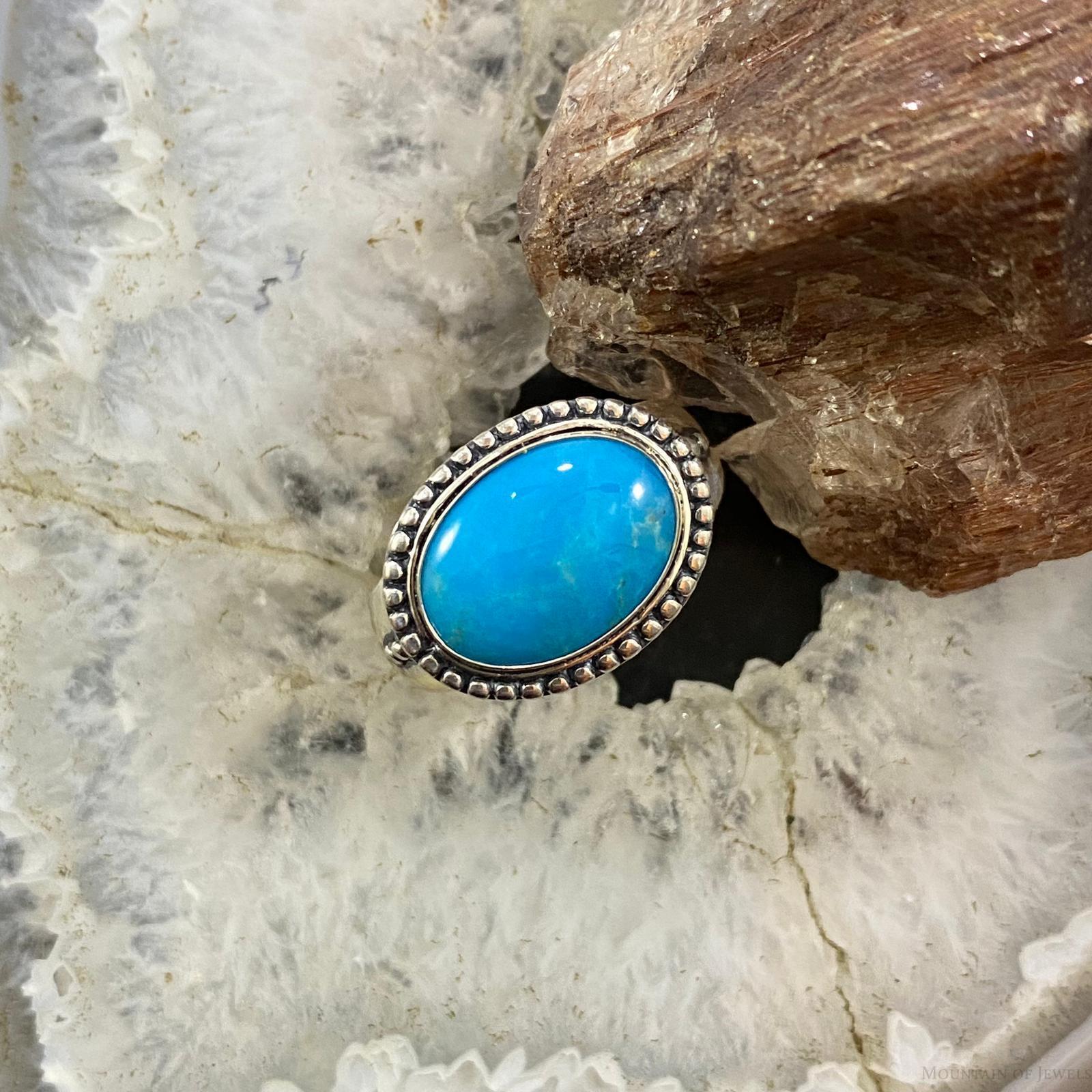 Carolyn Pollack Southwestern Style Sterling Silver Horizontally Mounted Oval Turquoise Decorated Ring For Women