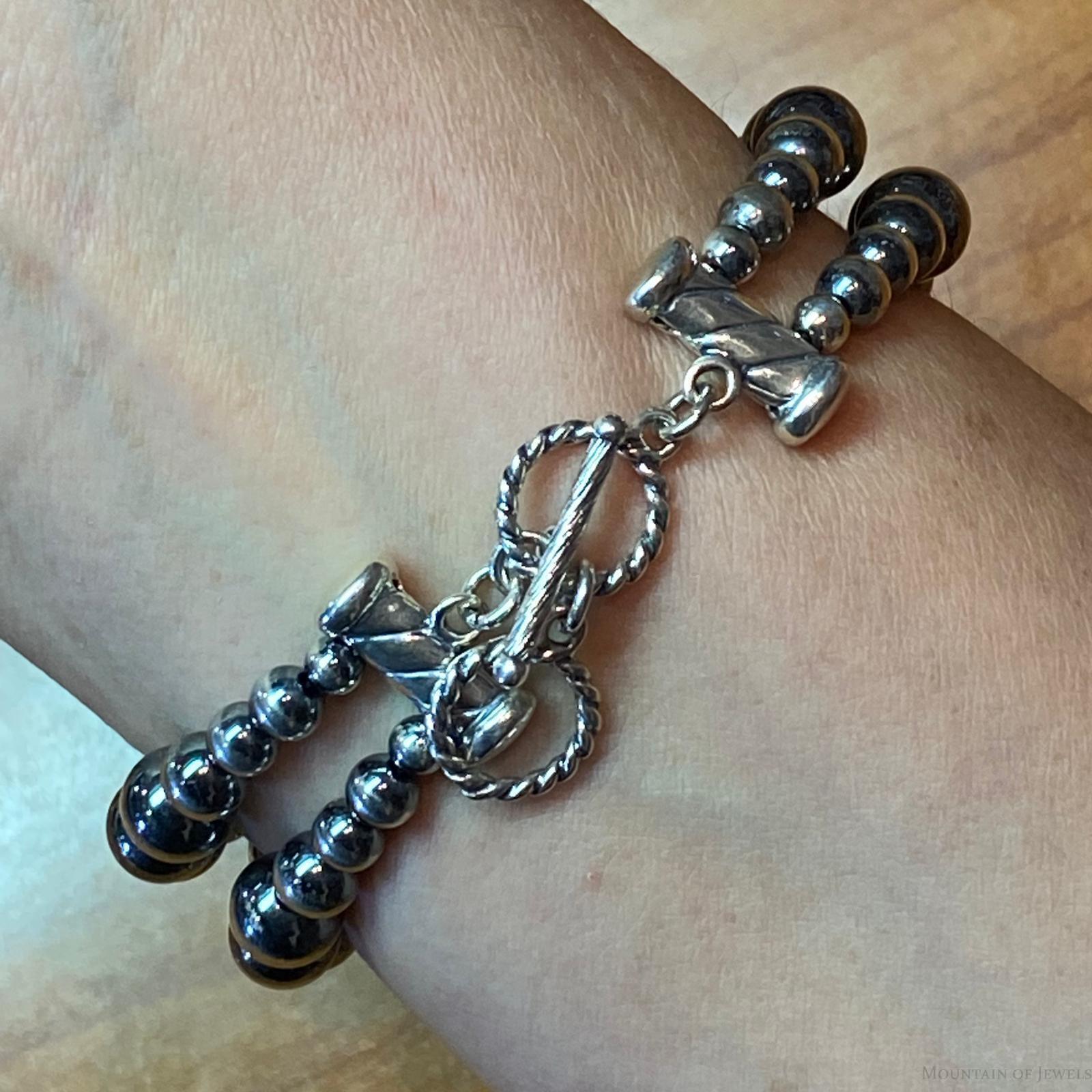 Carolyn Pollack Sterling Silver Navajo Pearl Bead 3 Denim Lapis Link Bracelet For Women