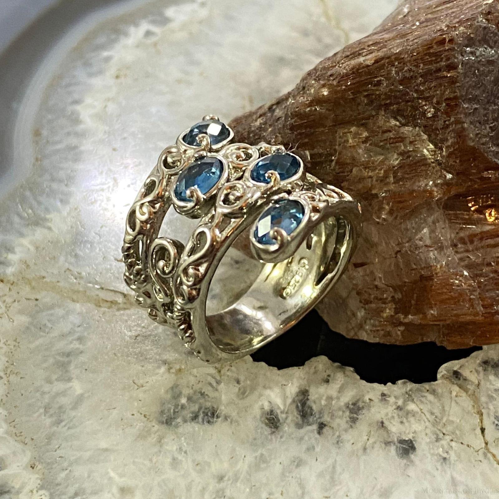 Carolyn Pollack Sterling Silver 4 Oval Faceted London Blue Topaz Decorated Ring For Women