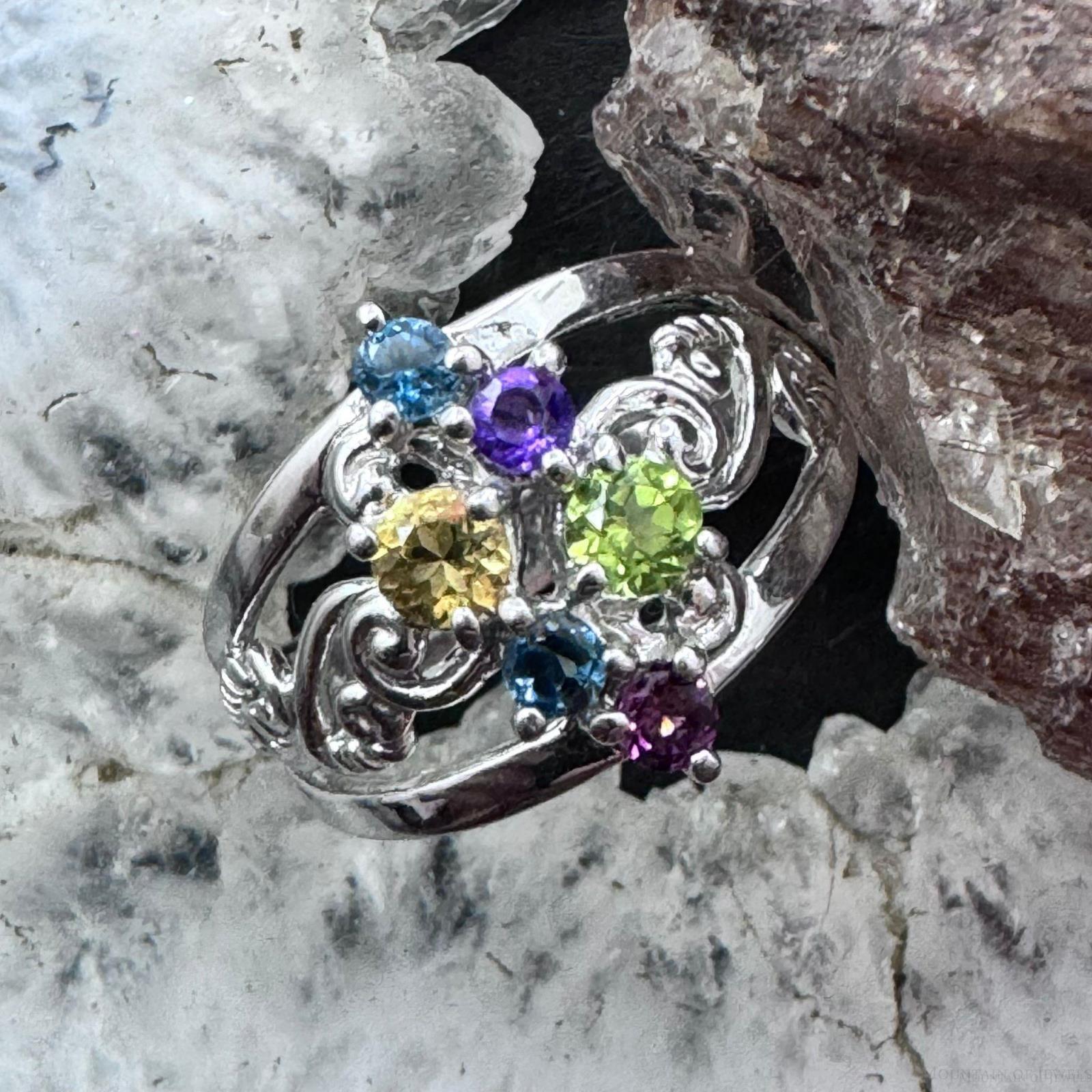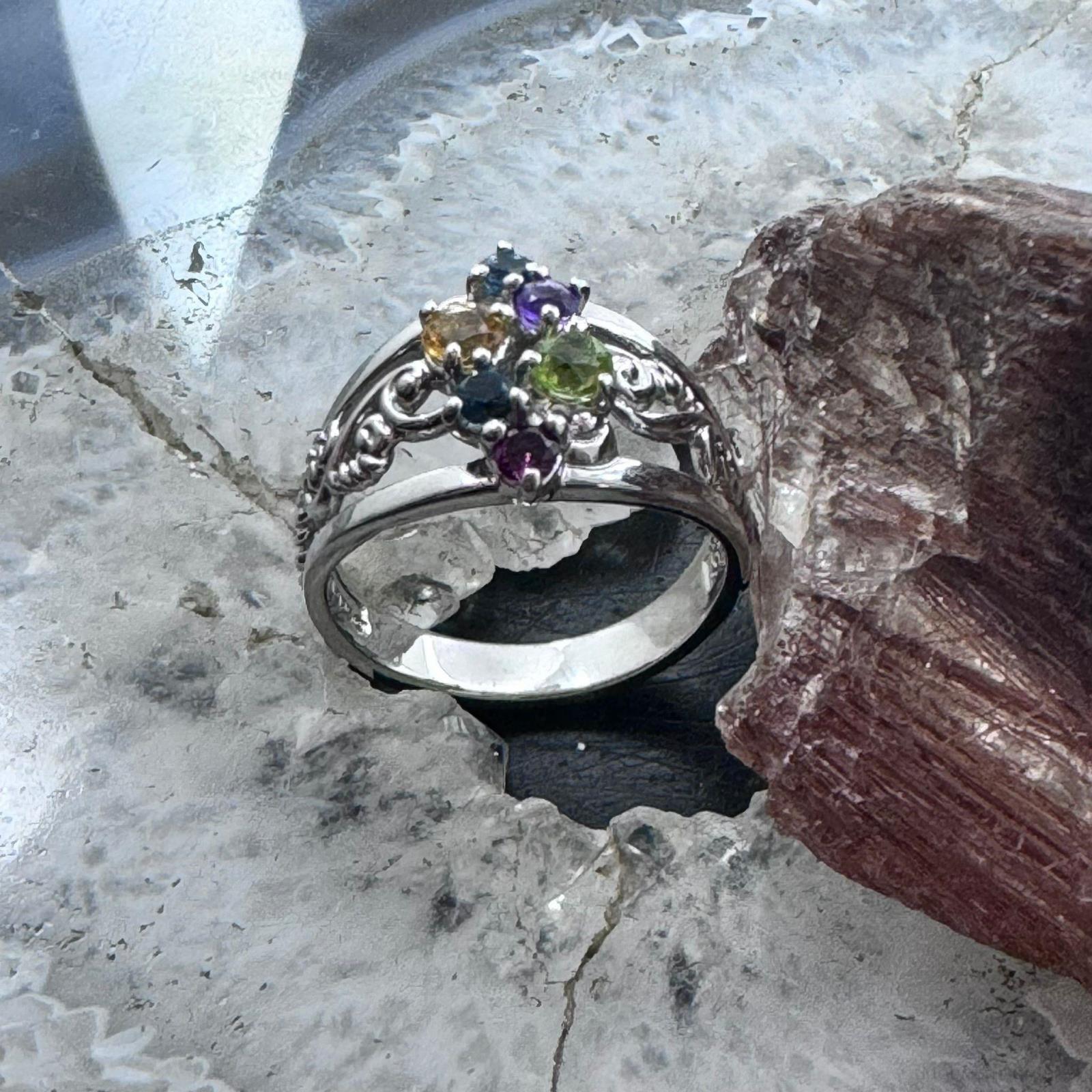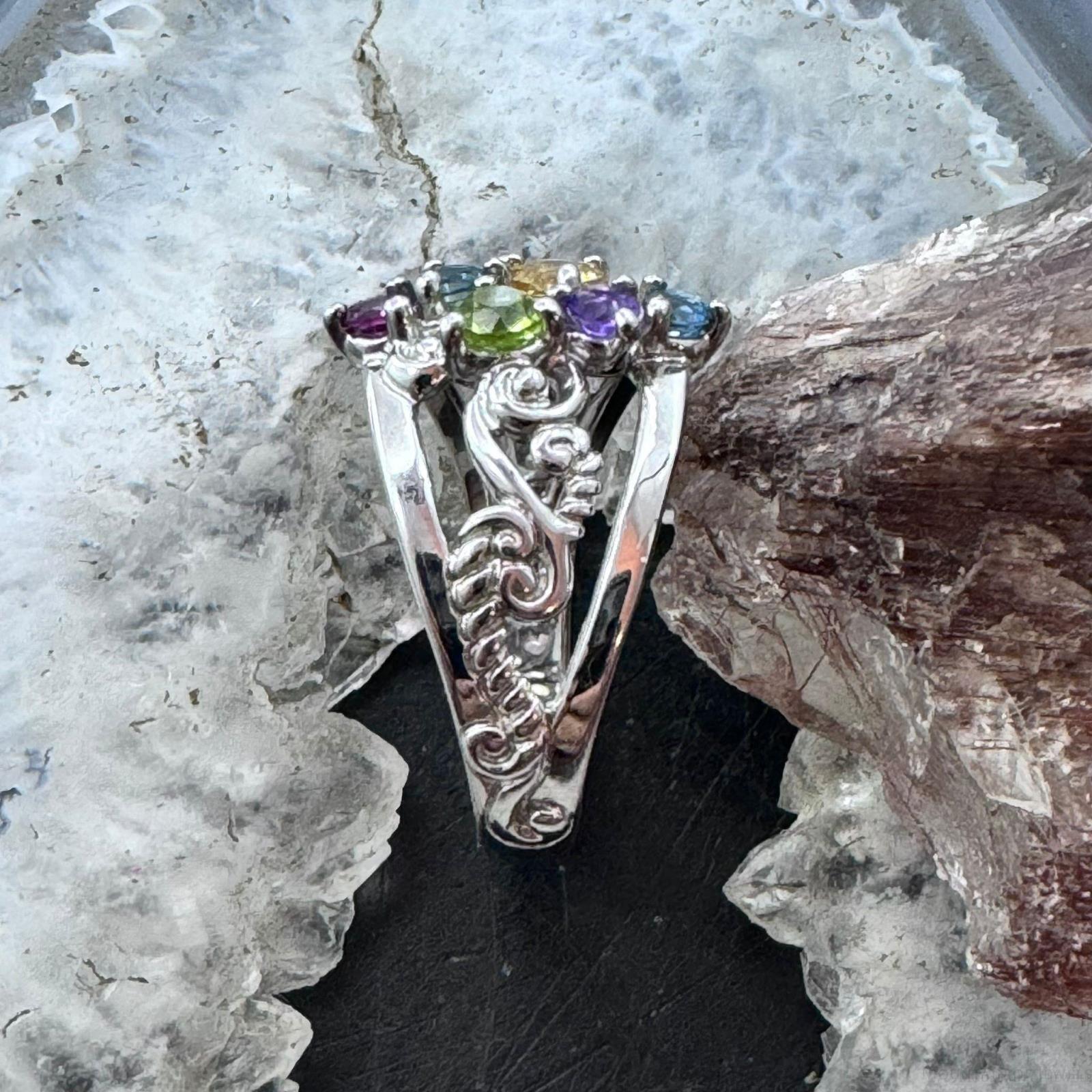 Carolyn Pollack Sterling Silver 6 Faceted Multistone Decorated Ring For Women