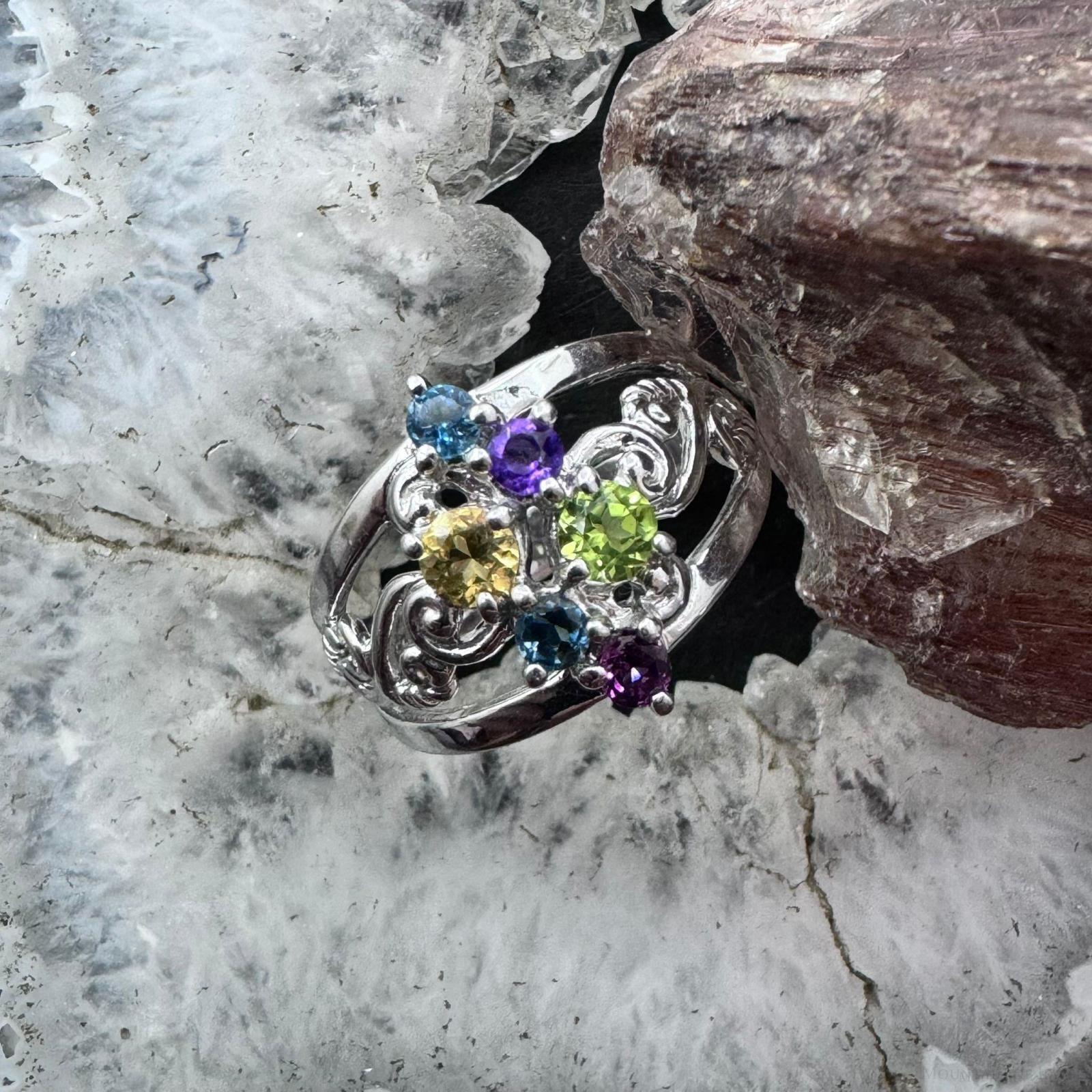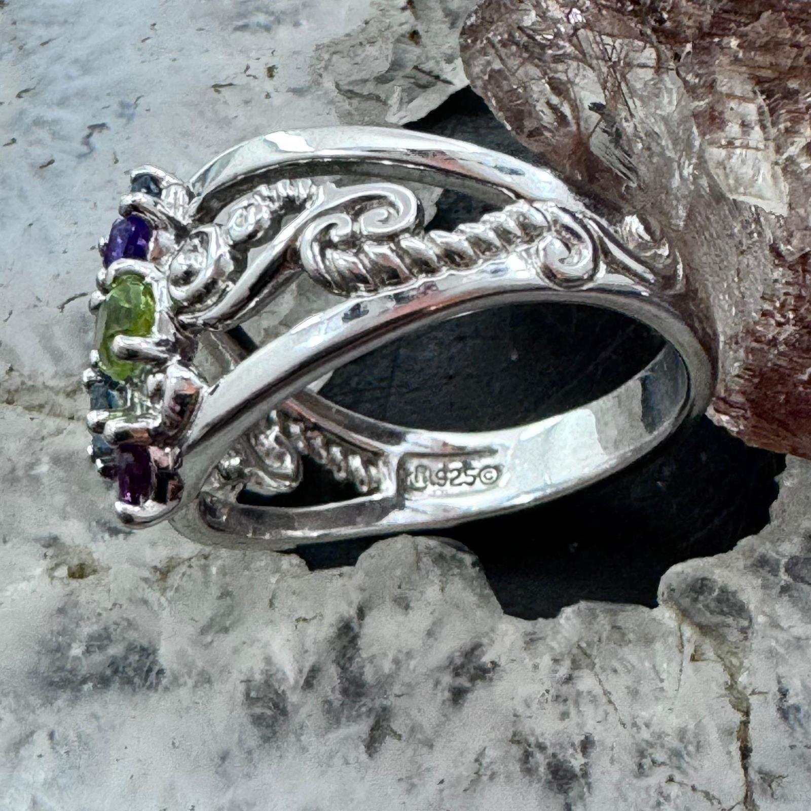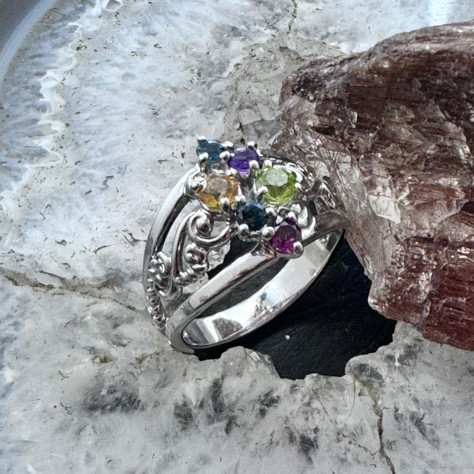 Carolyn Pollack Sterling Silver 6 Faceted Multistone Decorated Ring For Women