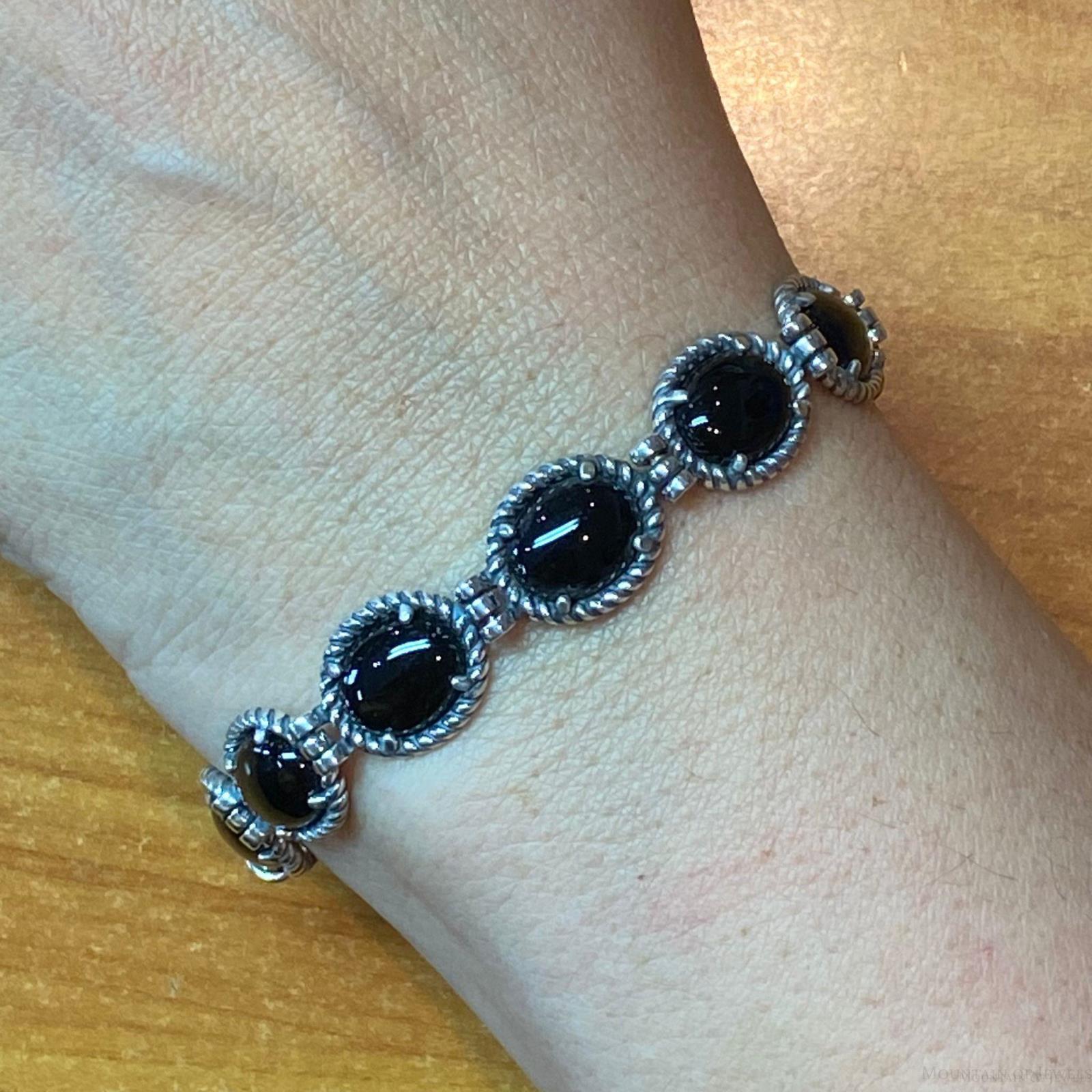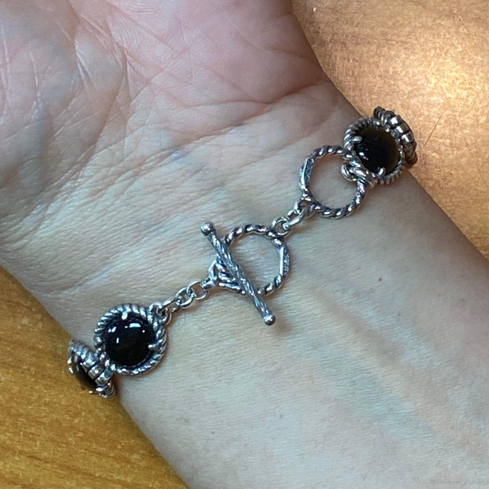 Carolyn Pollack Sterling Silver 9 Oval Onyx Reversible Link Bracelet For Women