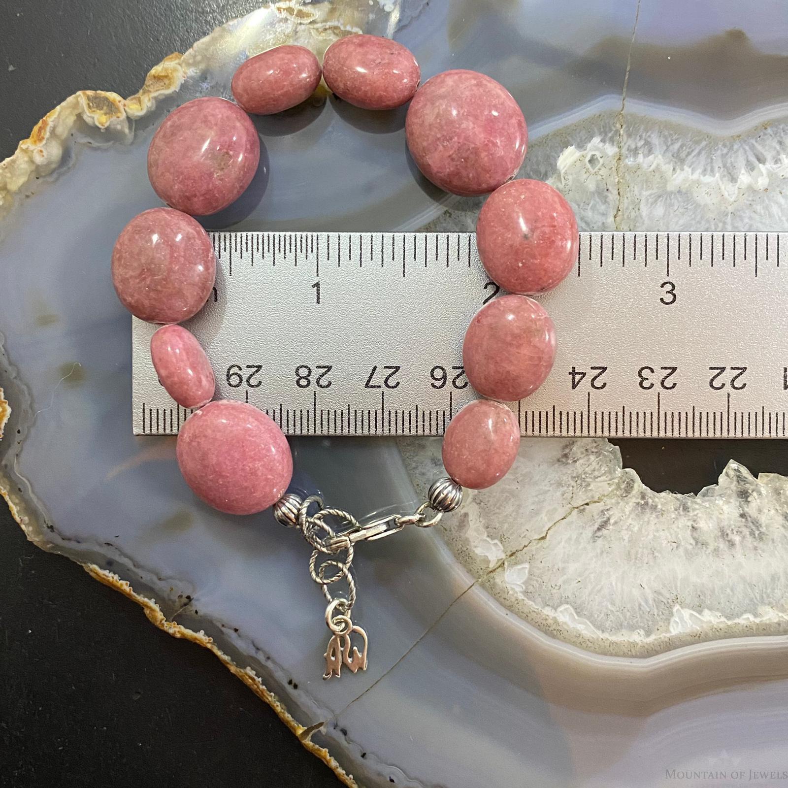 Carolyn Pollack Sterling Silver Chunky Rhodonite Bead Link Bracelet For Women