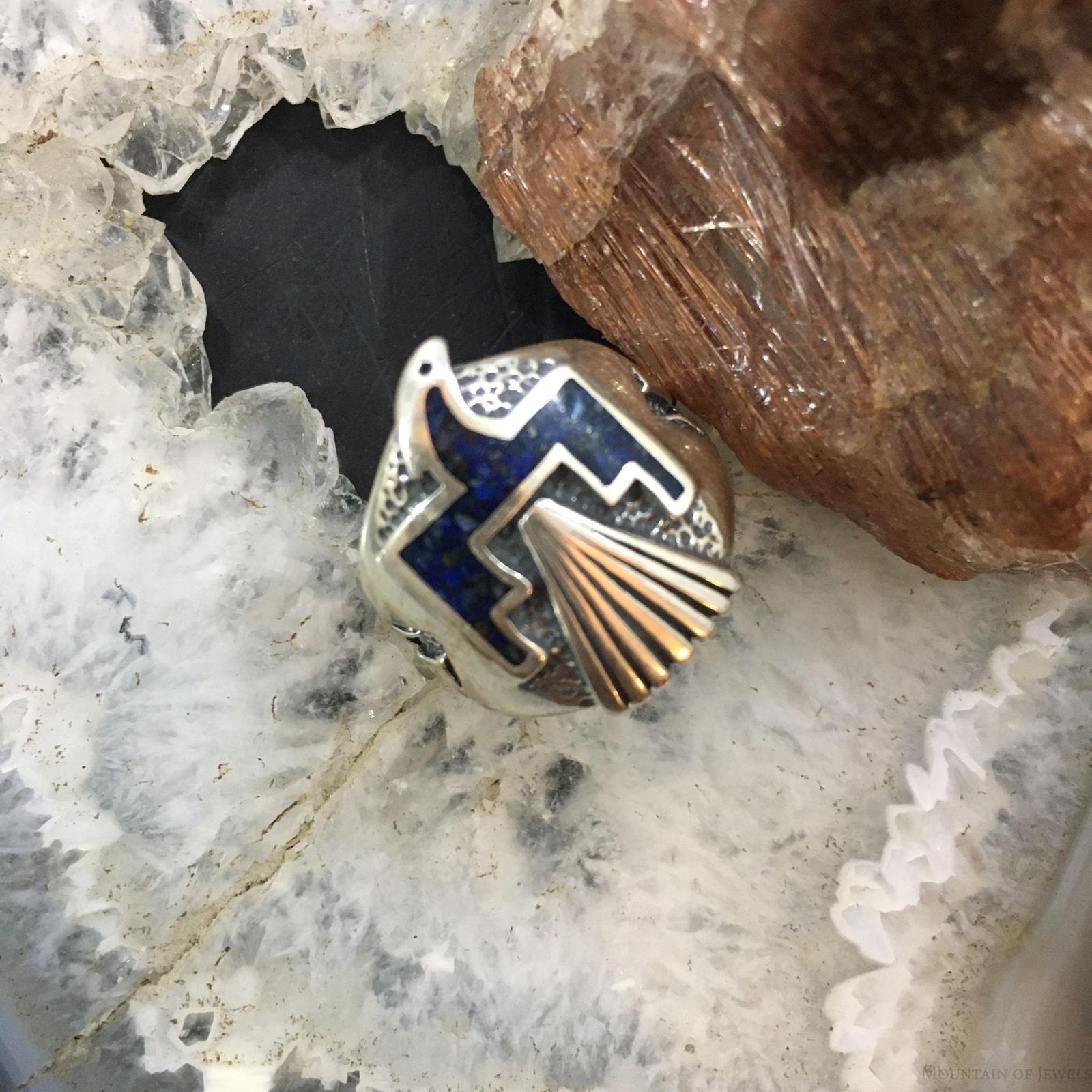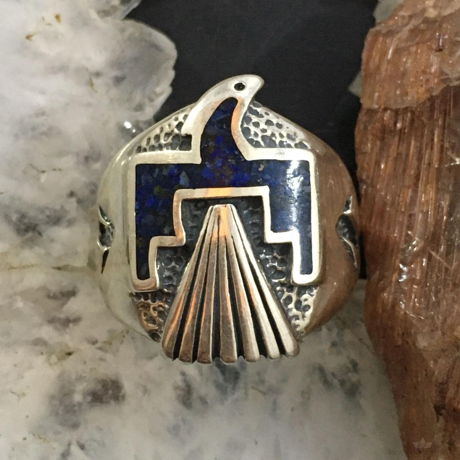 Carolyn Pollack Southwestern Style Sterling Silver Lapis Chip Inlay Thunderbird Ring For Women