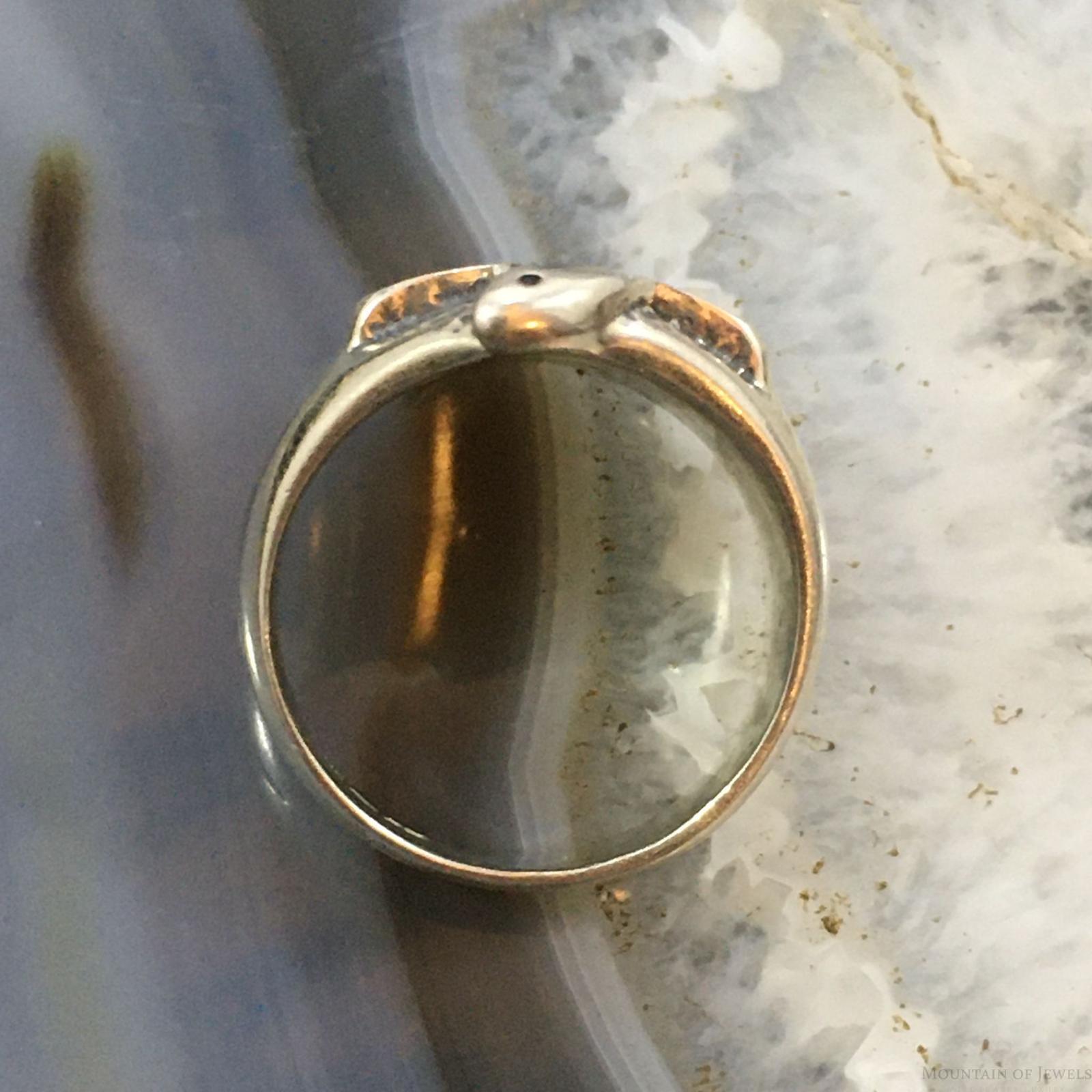 A Majestic Raised Thunderbird Features a Gorgeous Engraved Tail and a Shank Decorated With Engraved Arrows. This Design Has an Oxidized Finish With Beautiful Polished Accents.