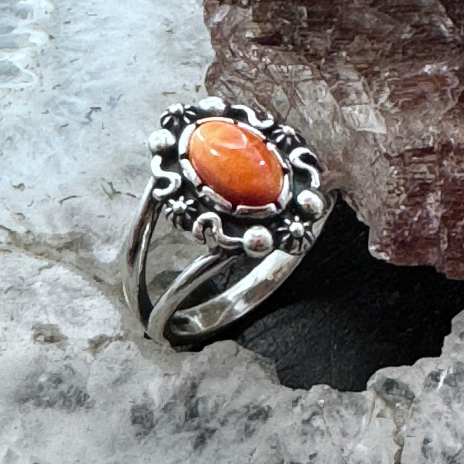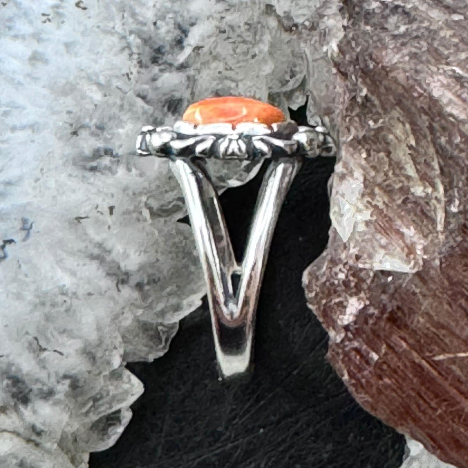 Carolyn Pollack Sterling Silver Orange Spiny Oyster Decorated Split Shank Ring For Women