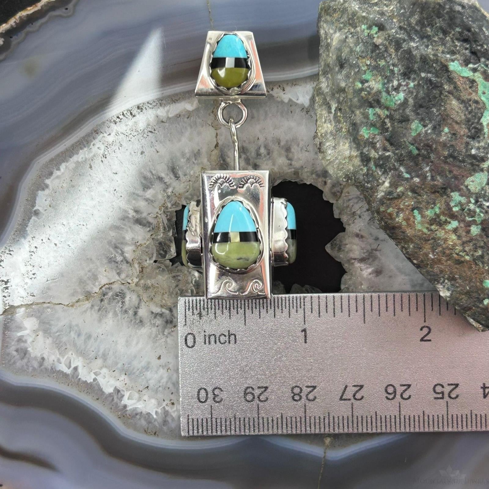 Cliffton Aguilar Santo Domingo Sterling Silver Multistone Decorated Rectangular Pendant