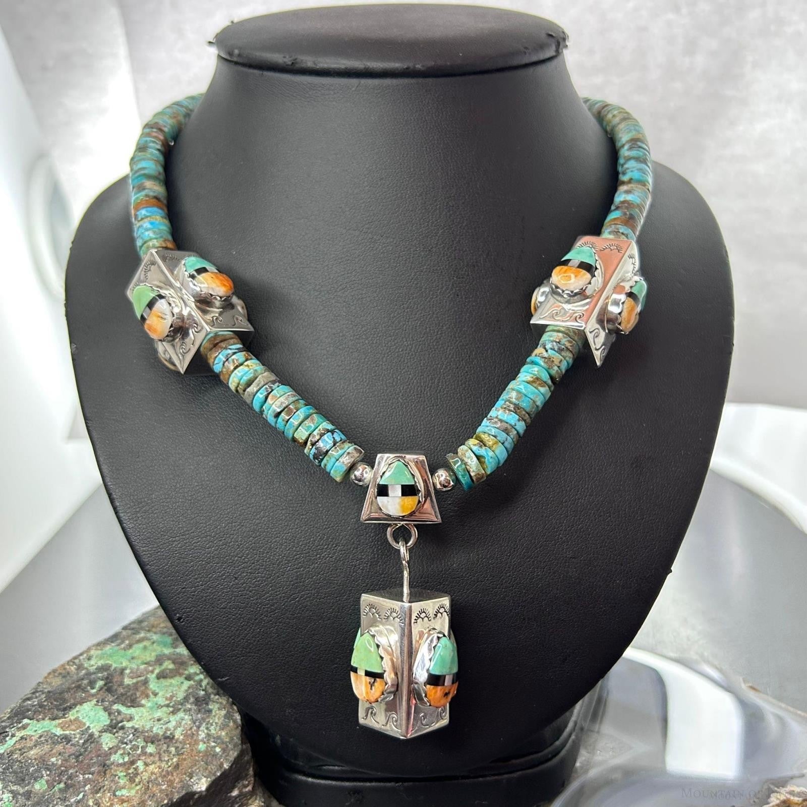 Cliffton Aguilar Santo Domingo Sterling Silver & Turquoise Beads w/Pendant 18" Necklace