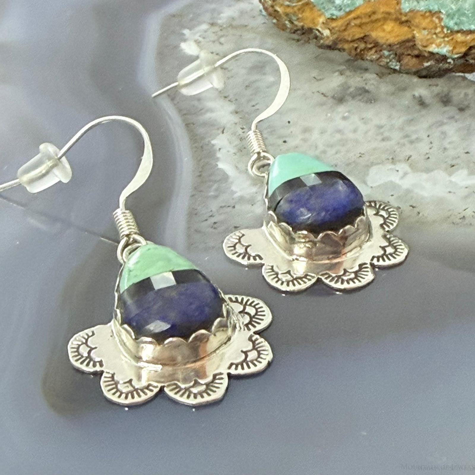 Clifton Aguilar Sterling Silver Teardrop Multistone Inlay Dangle Earrings For Women