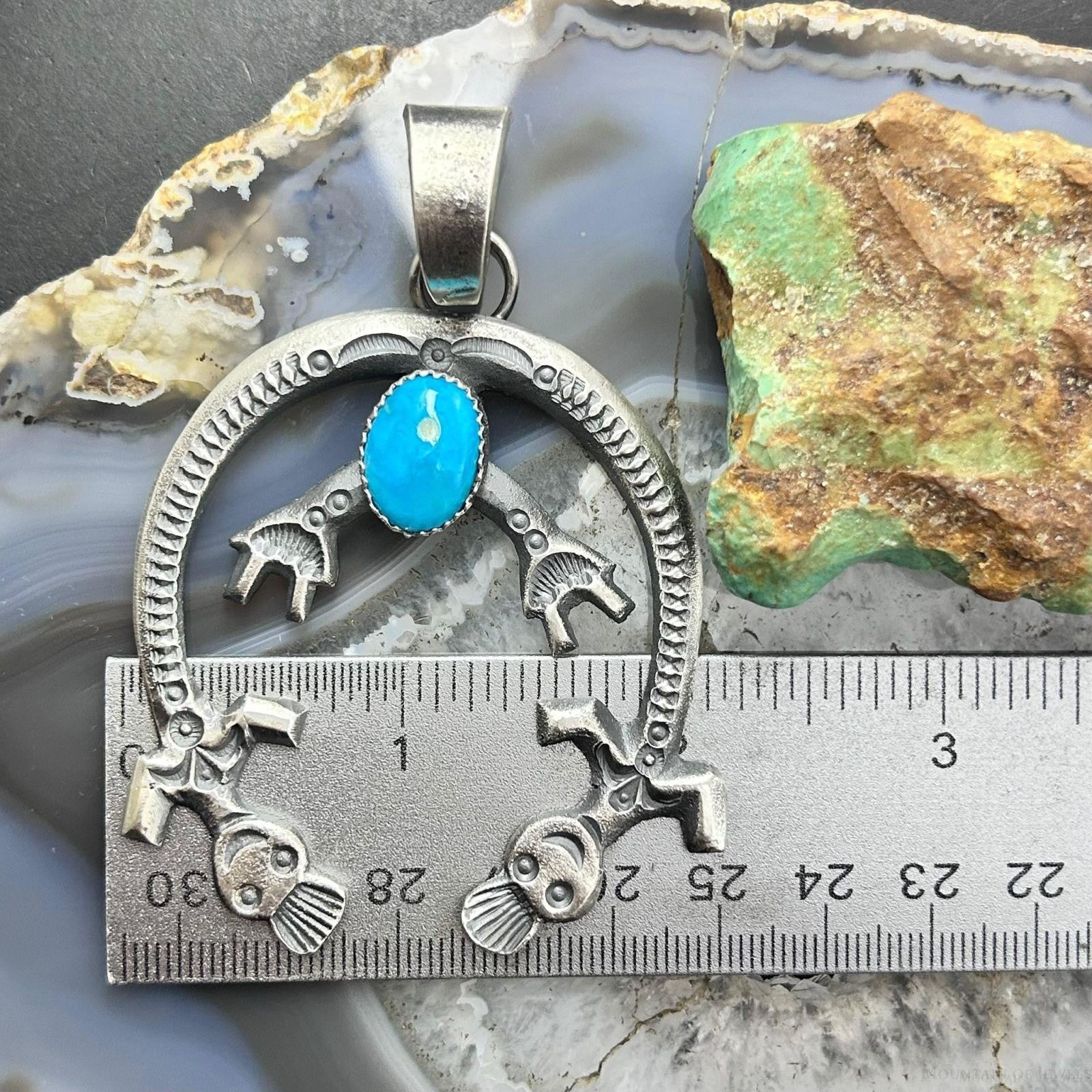 Eva & Linberg Billah Native American Sterling Silver Oval Turquoise Unisex Naja Pendant