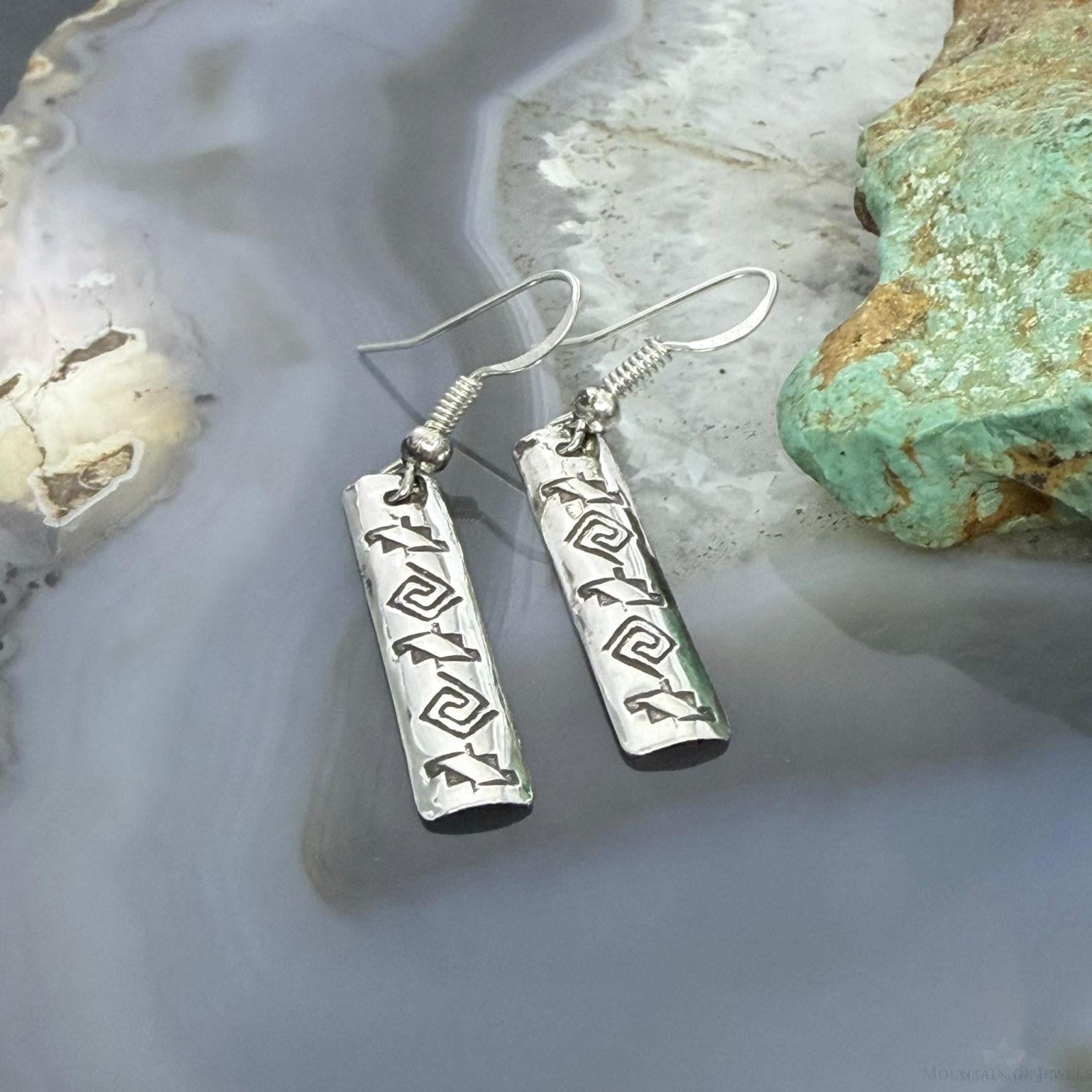 Felicia Etcitty Navajo Sterling Silver Long Etched Dangle Earrings For Women