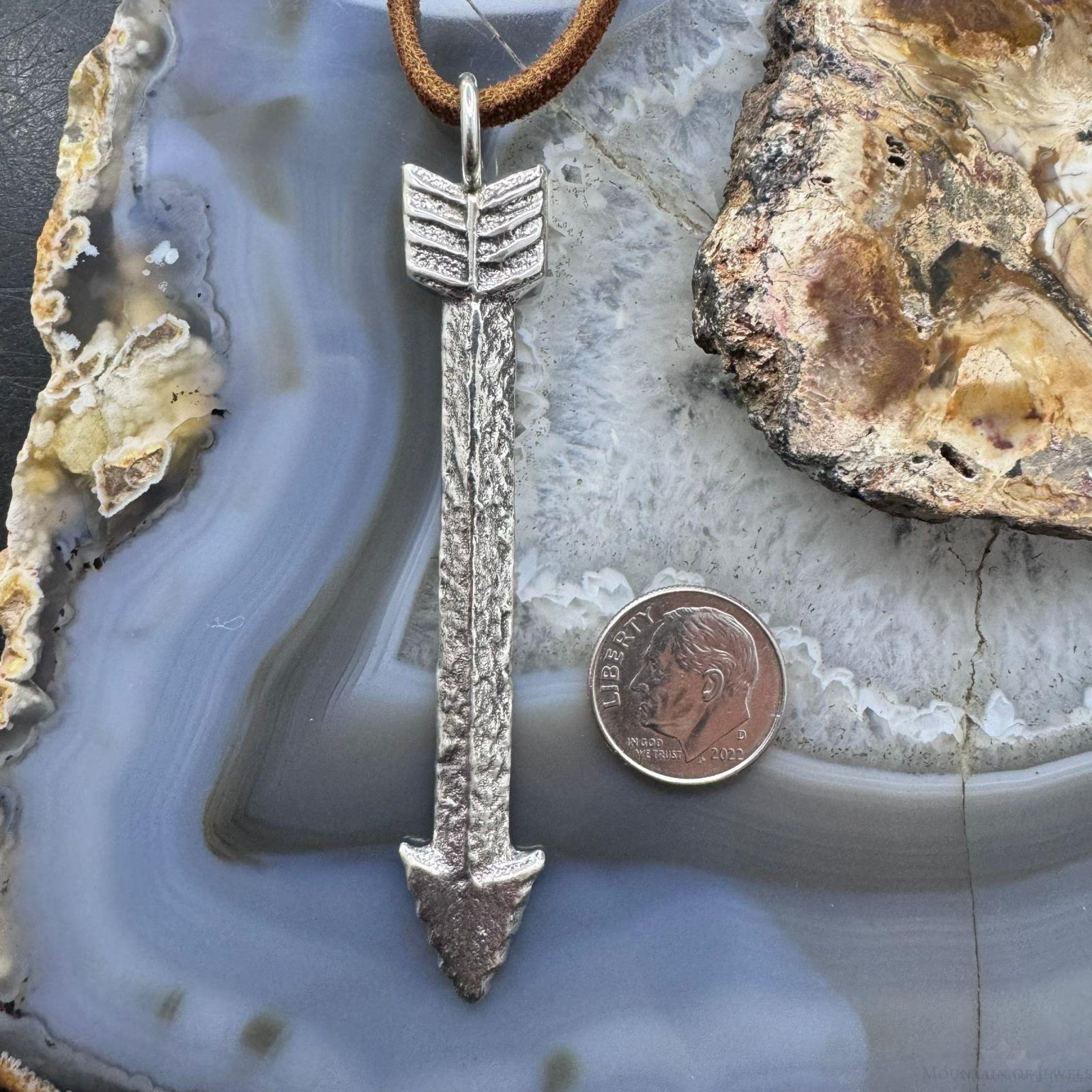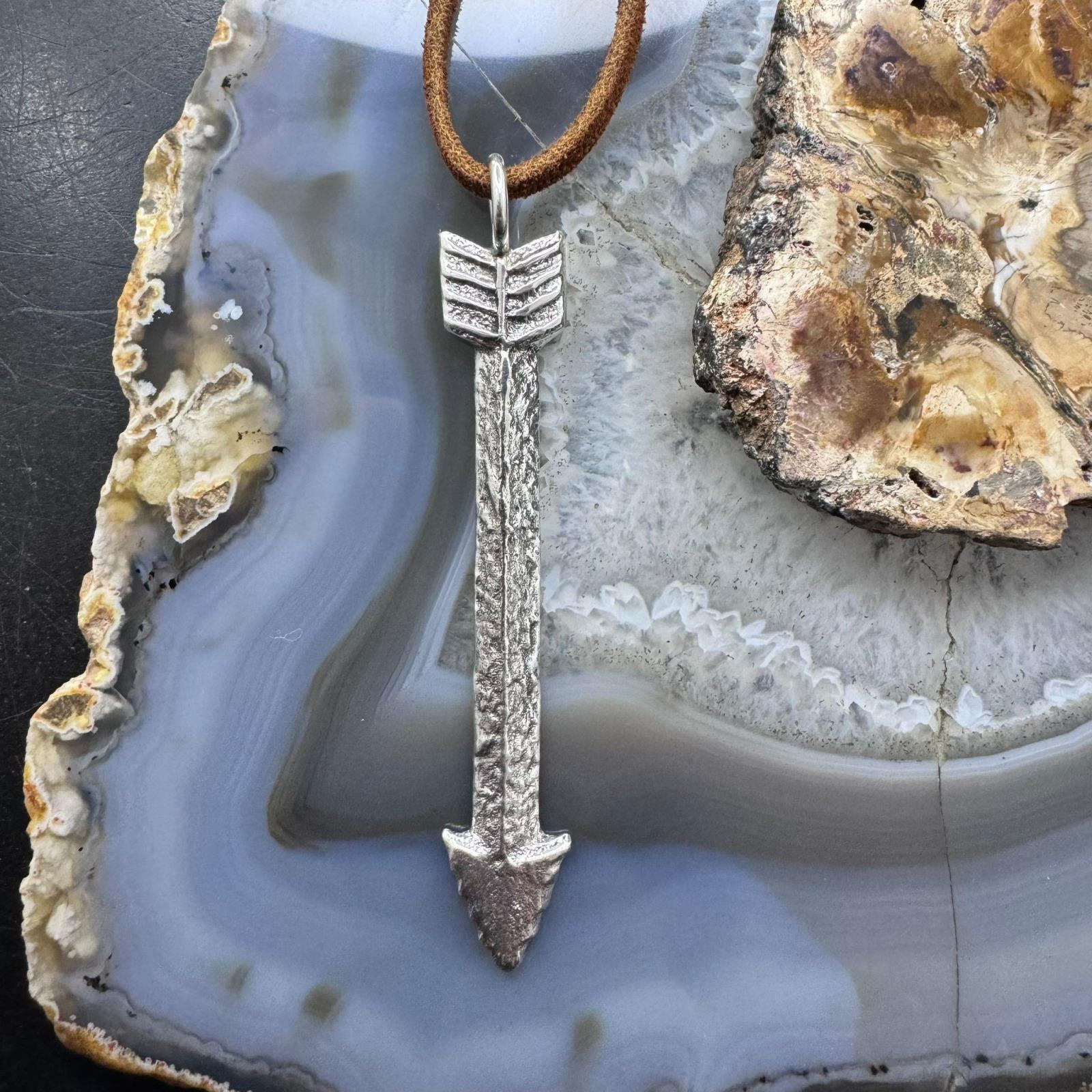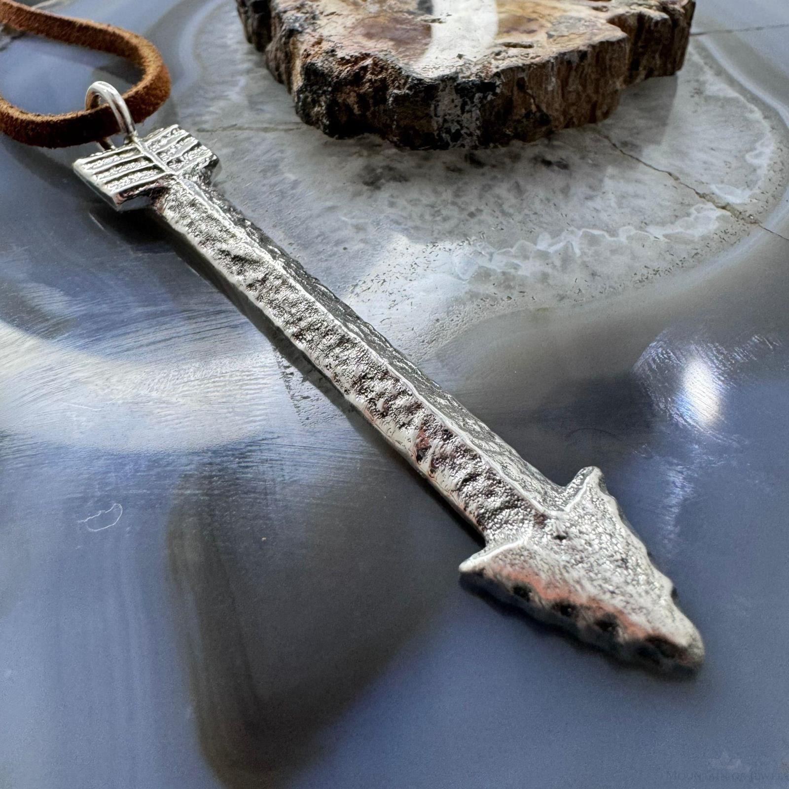 Gary Custer Sterling Tufa Cast Unisex Arrow Pendant w/Adjustable Leather Cord #1