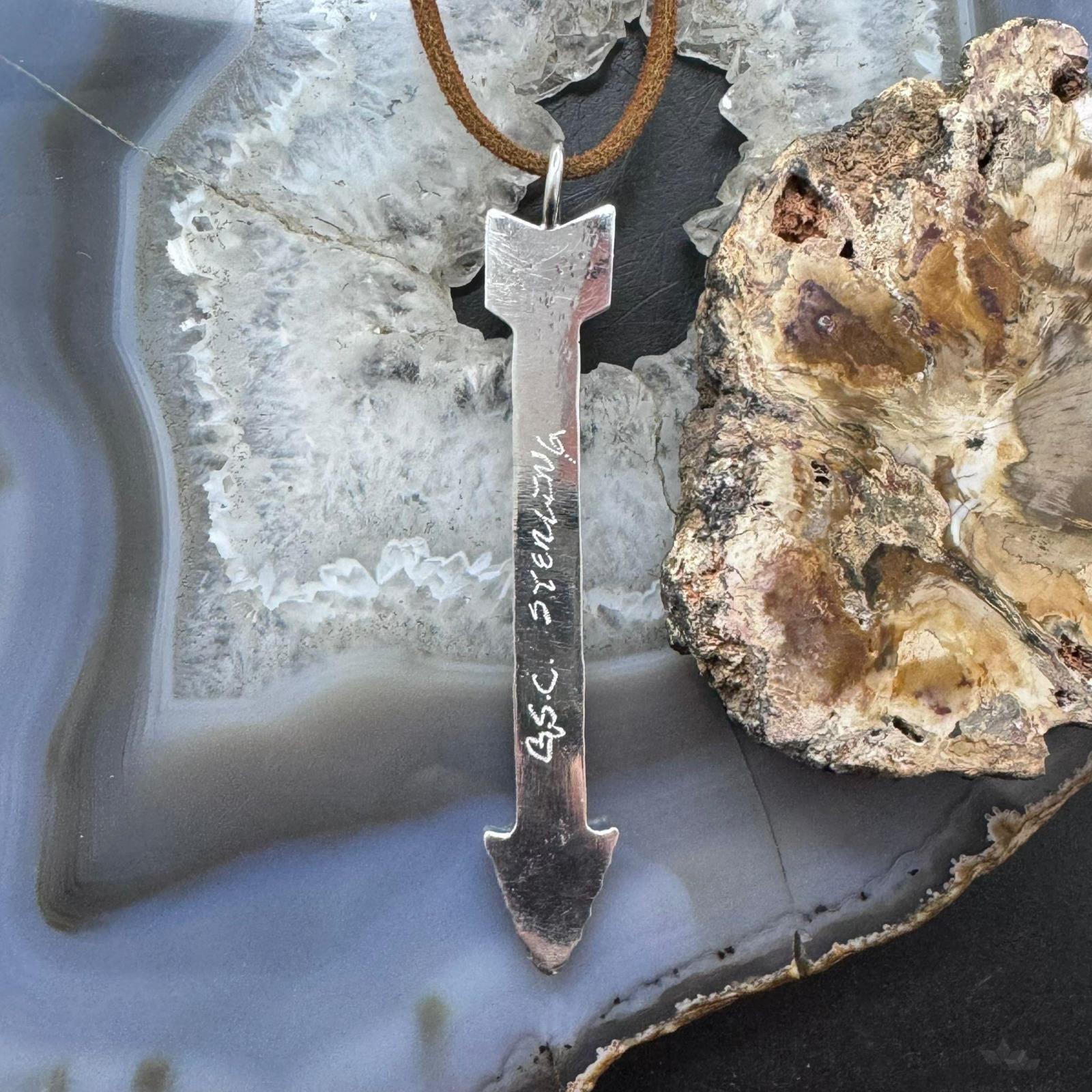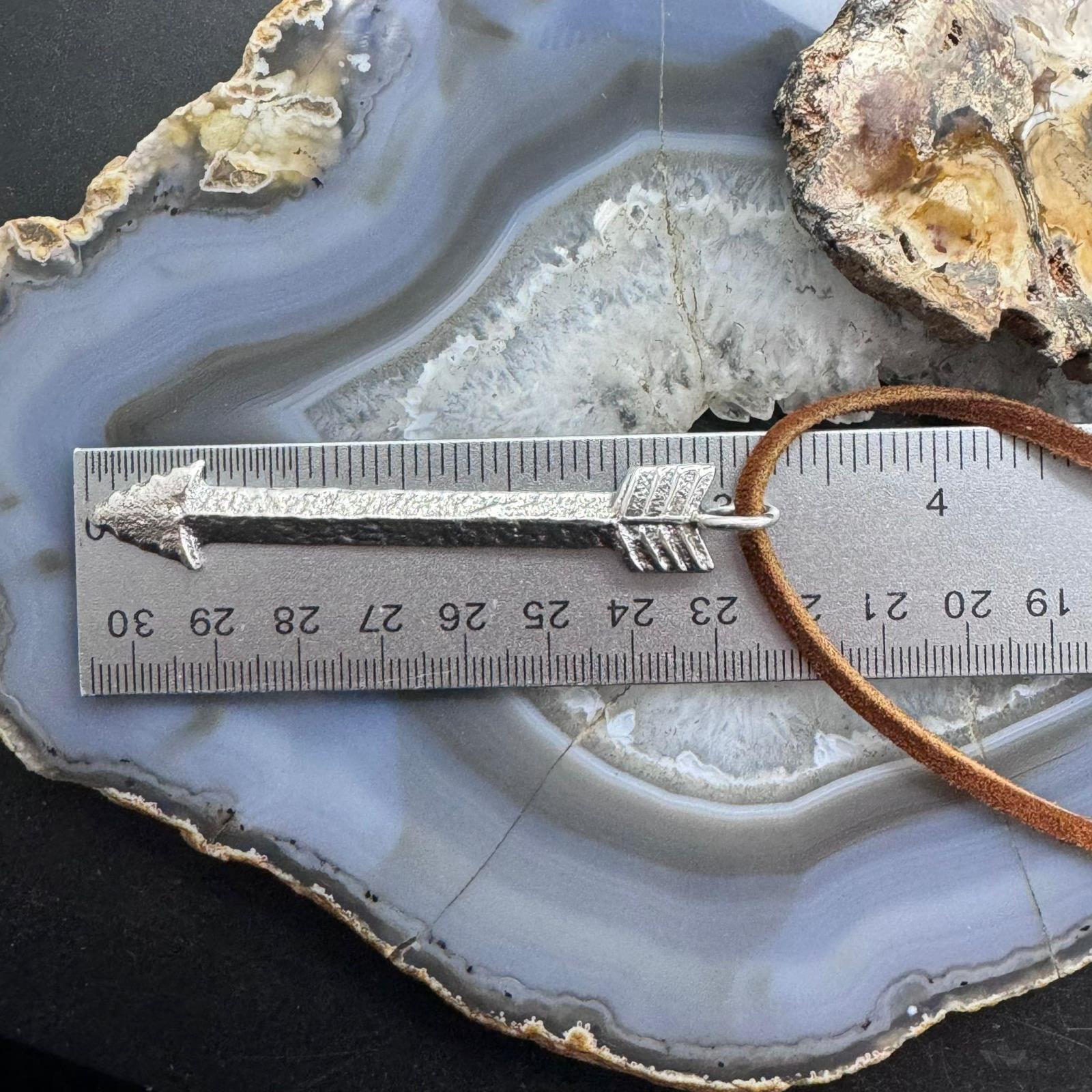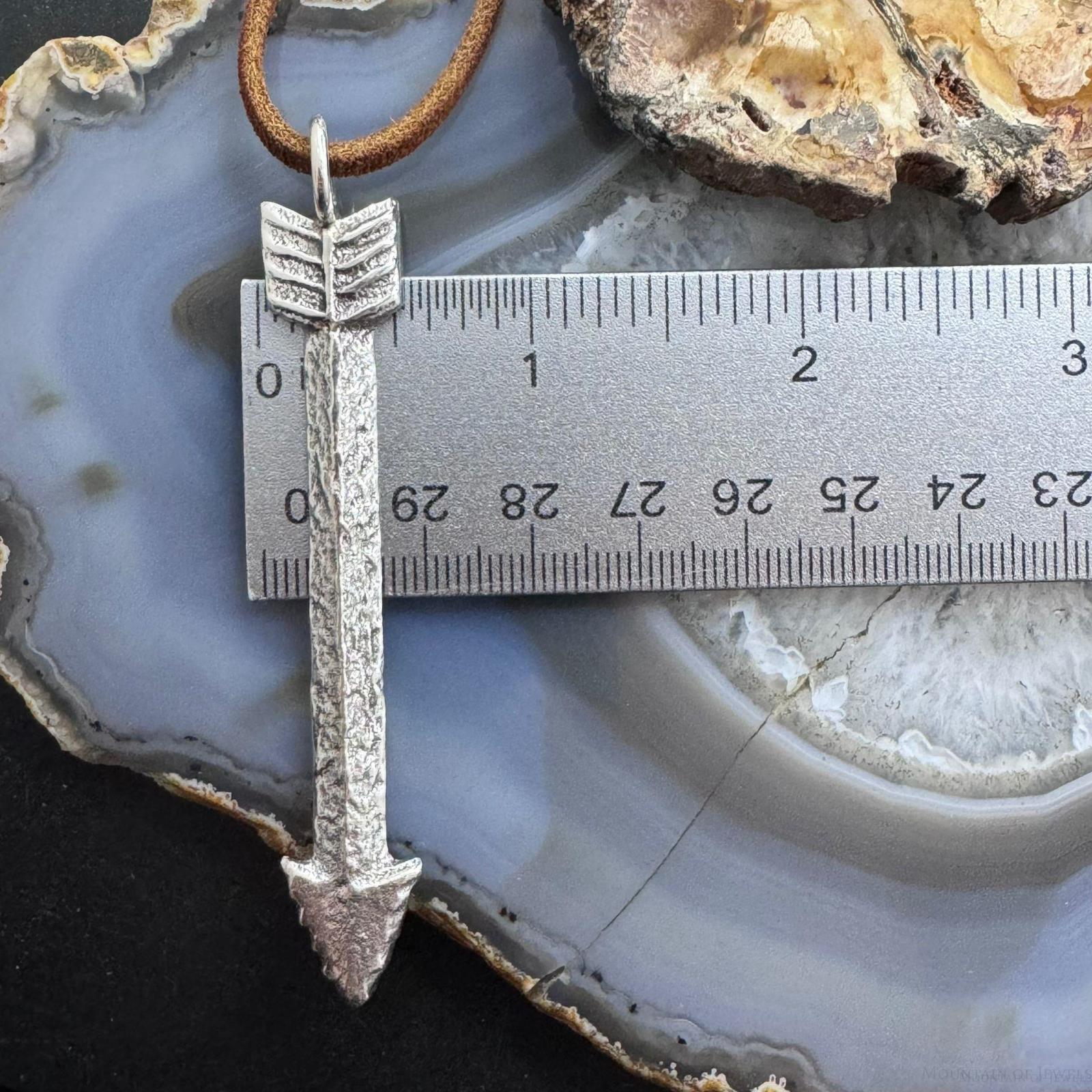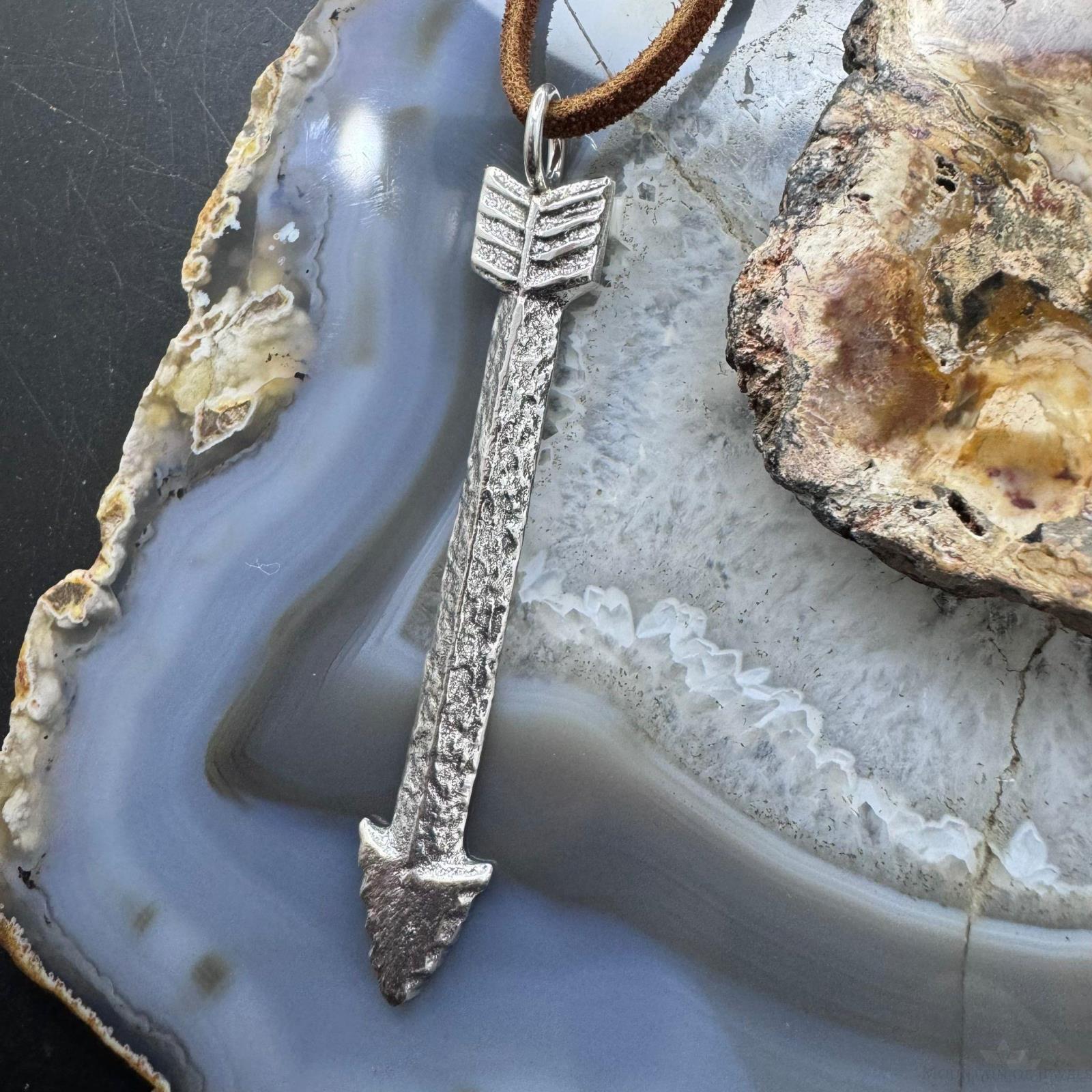 Gary Custer Sterling Tufa Cast Unisex Arrow Pendant w/Adjustable Leather Cord #1