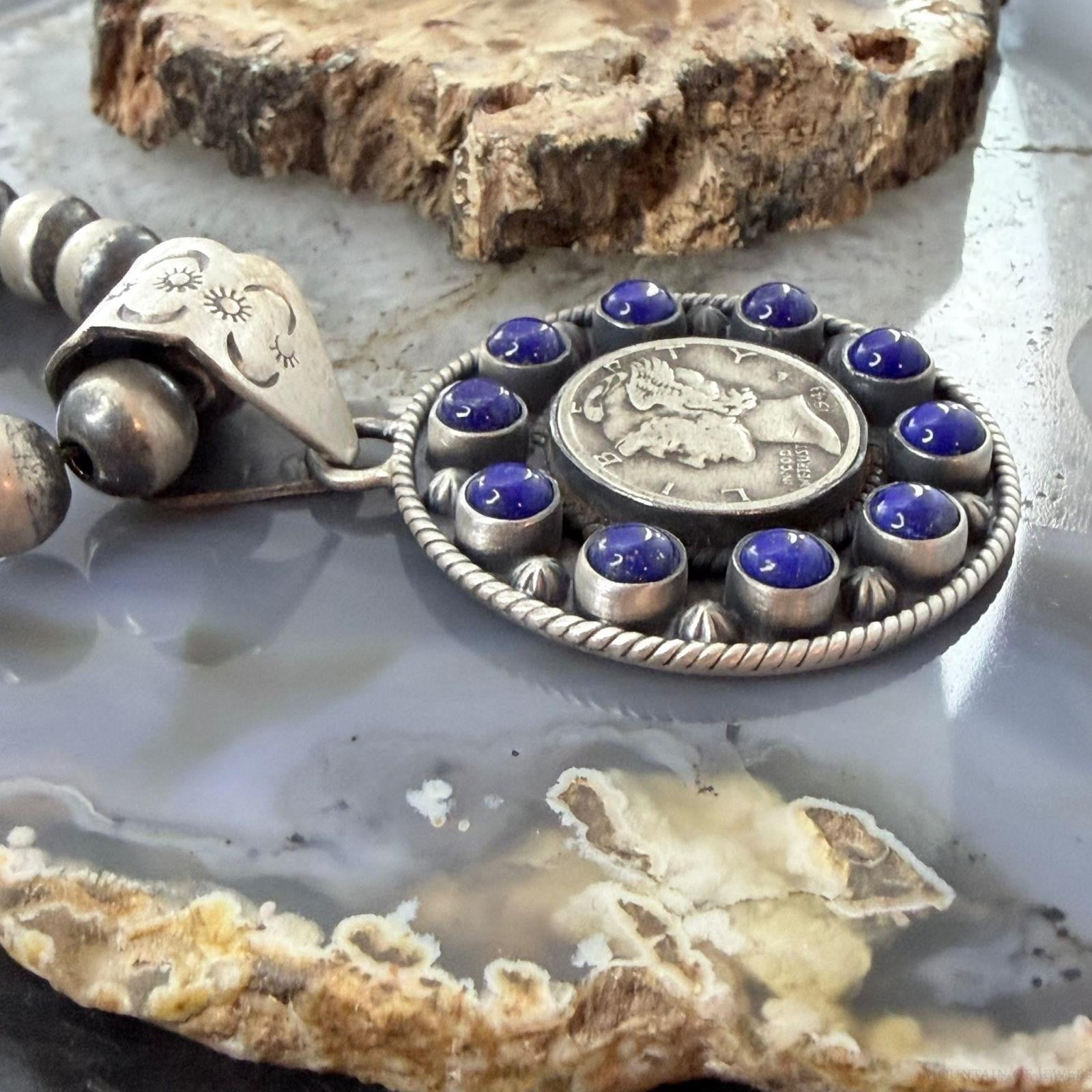 Genuine 1943 90% Silver Mercury Dime Coin w/Lapis Decorated Unisex Pendant #1