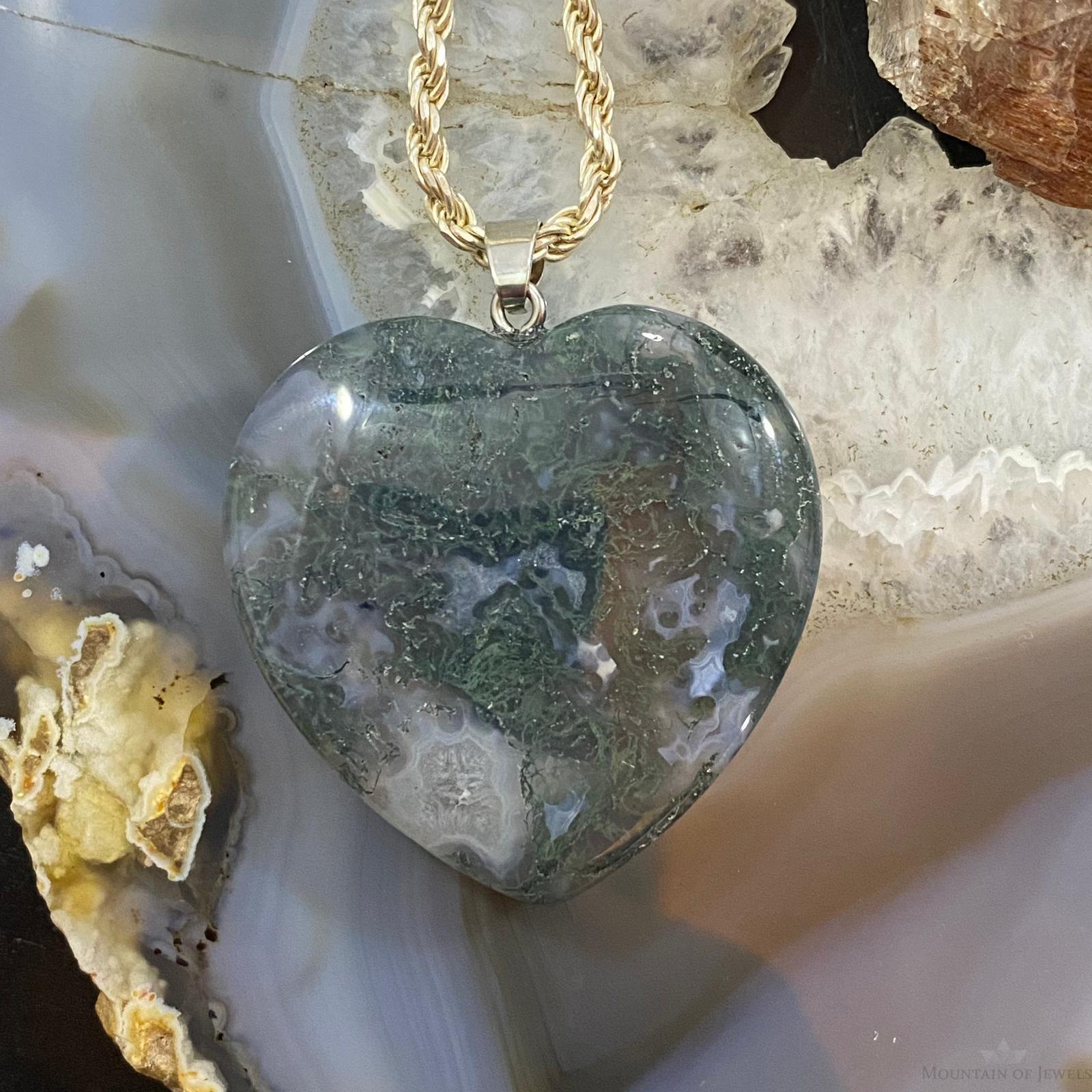 Heart Shape Slab Moss Agate Fashion Pendant For Women