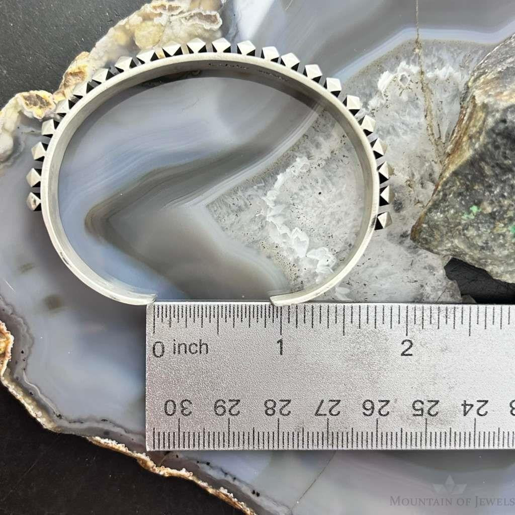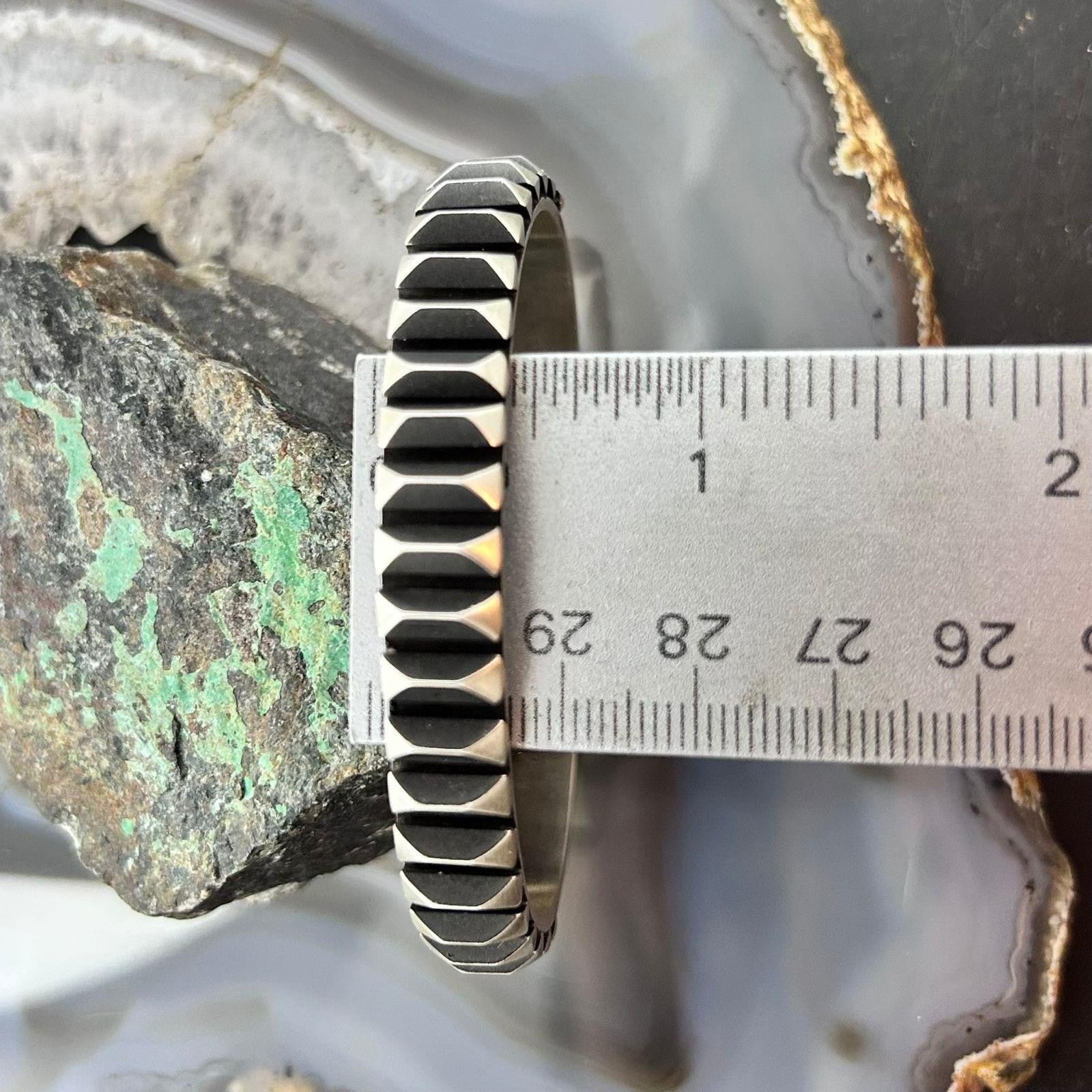 Leander Tahe Native American Sterling Silver 3D Geometric Unisex Cuff Bracelet