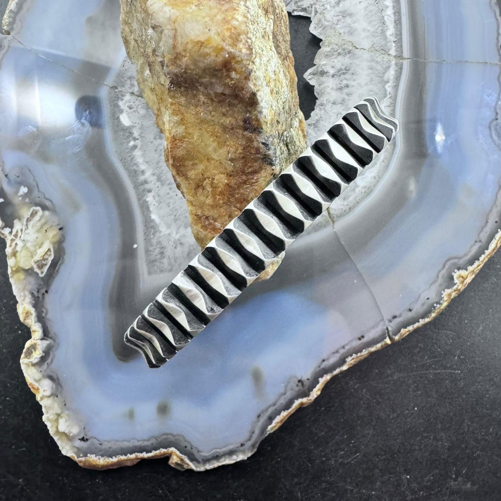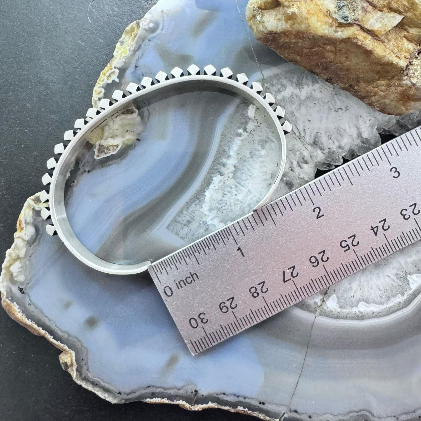 Leander Tahe Native American Sterling Silver 3D Geometric Unisex Cuff Bracelet