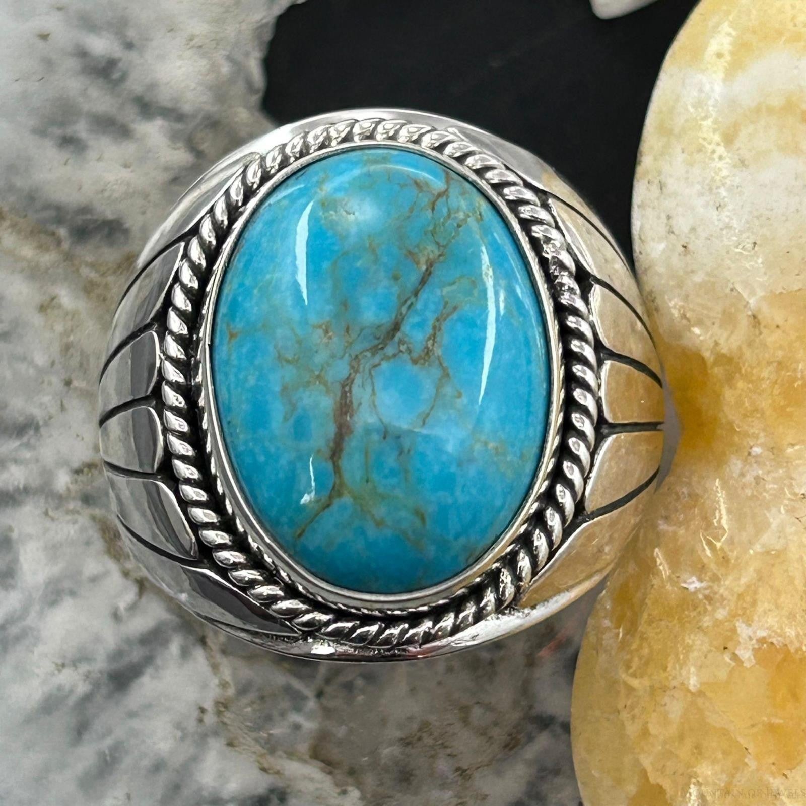 Native American Sterling Silver Oval Turquoise Shield Ring Size 10.75 For Men