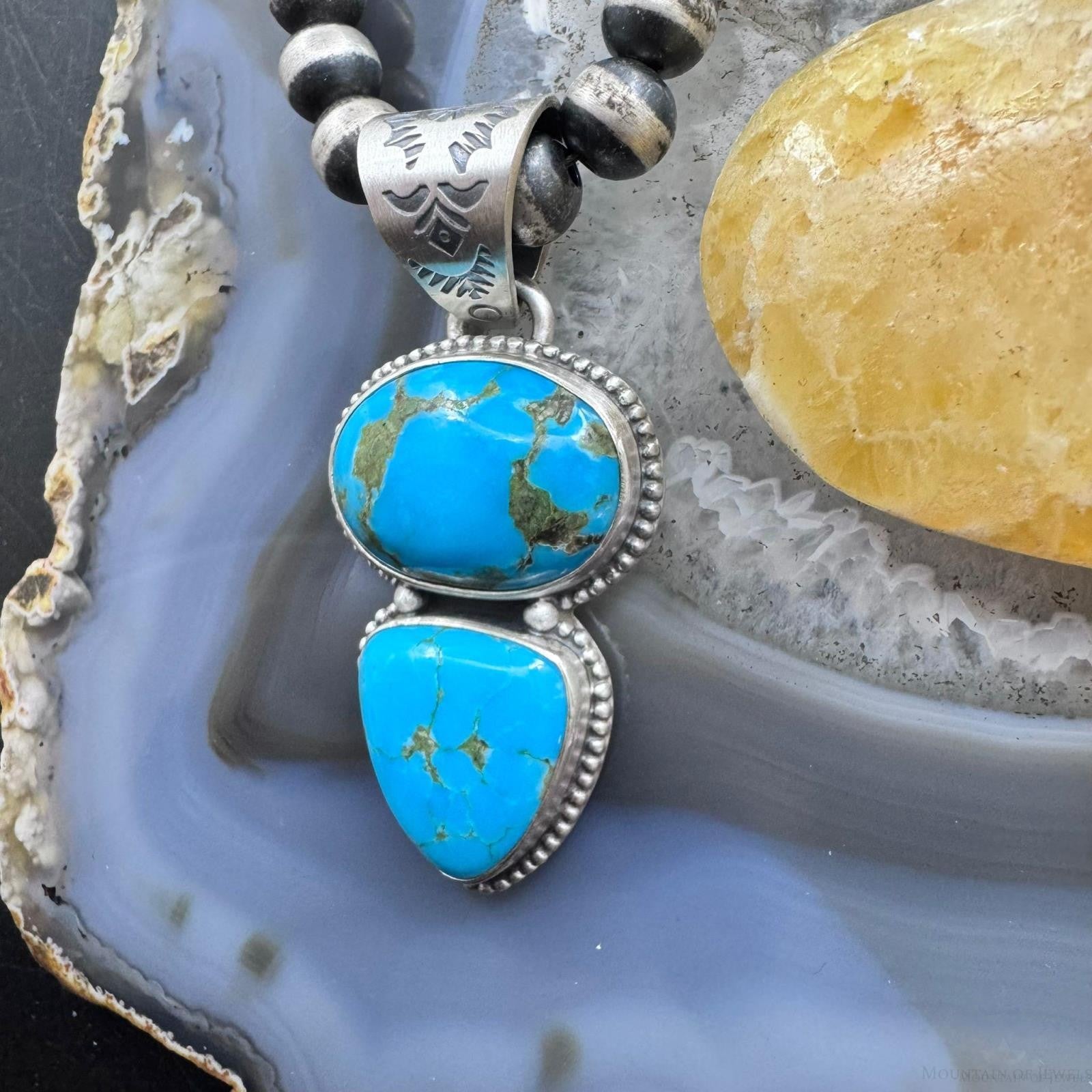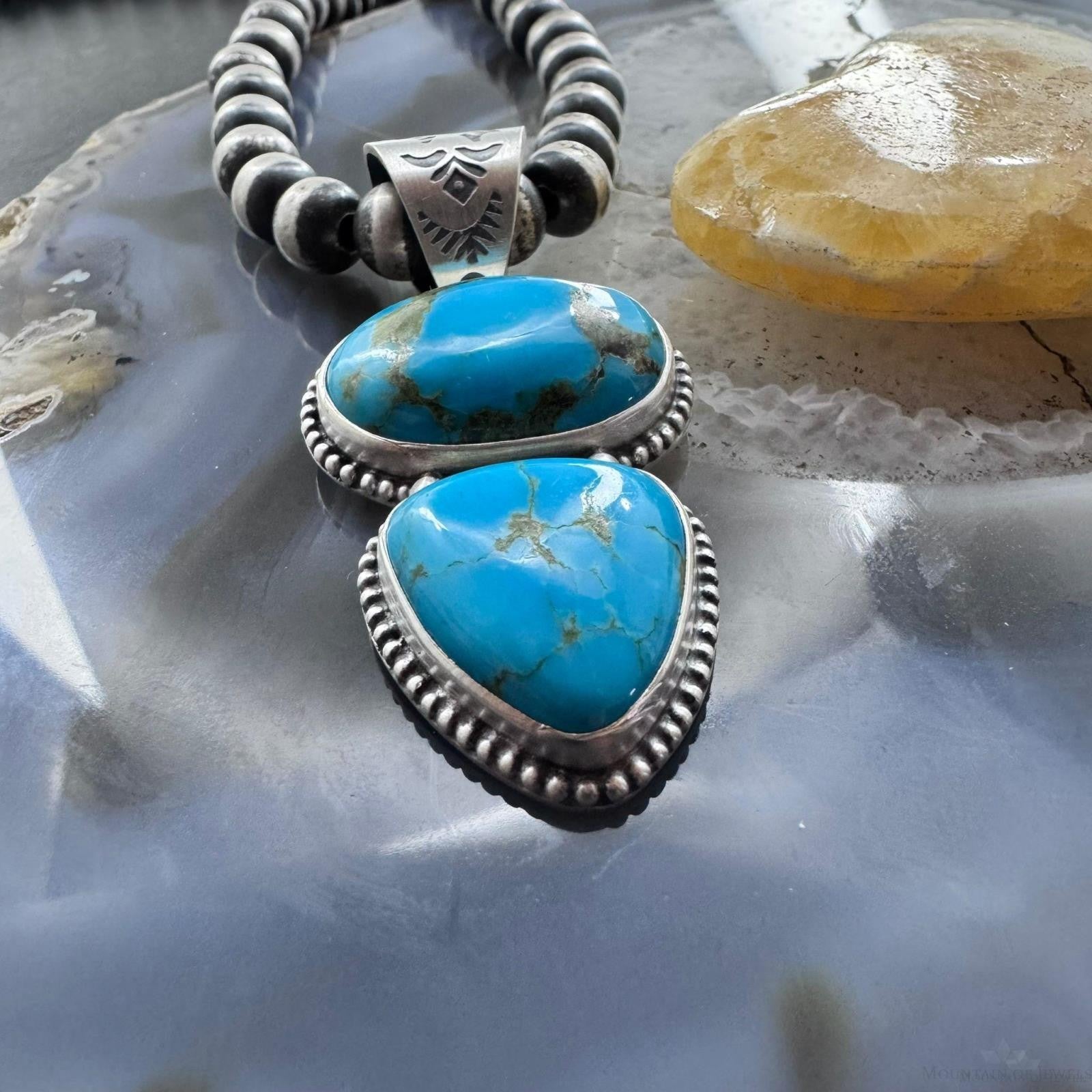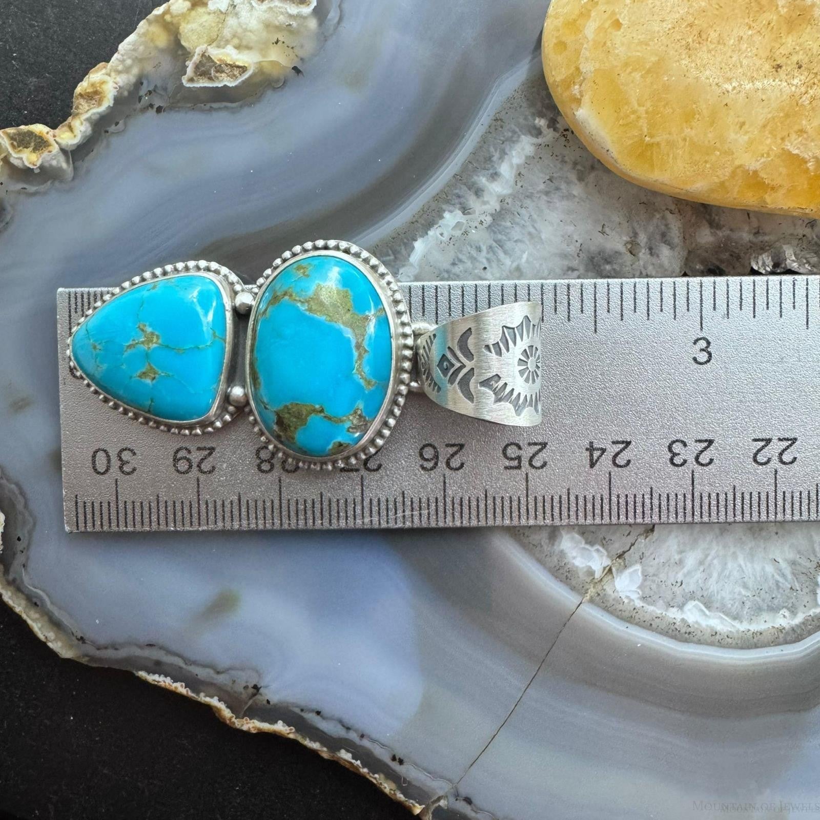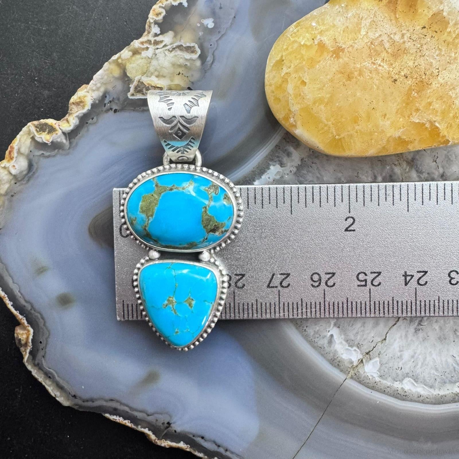 Native American Sterling Silver 2 Turquoise Decorated Pendant For Women