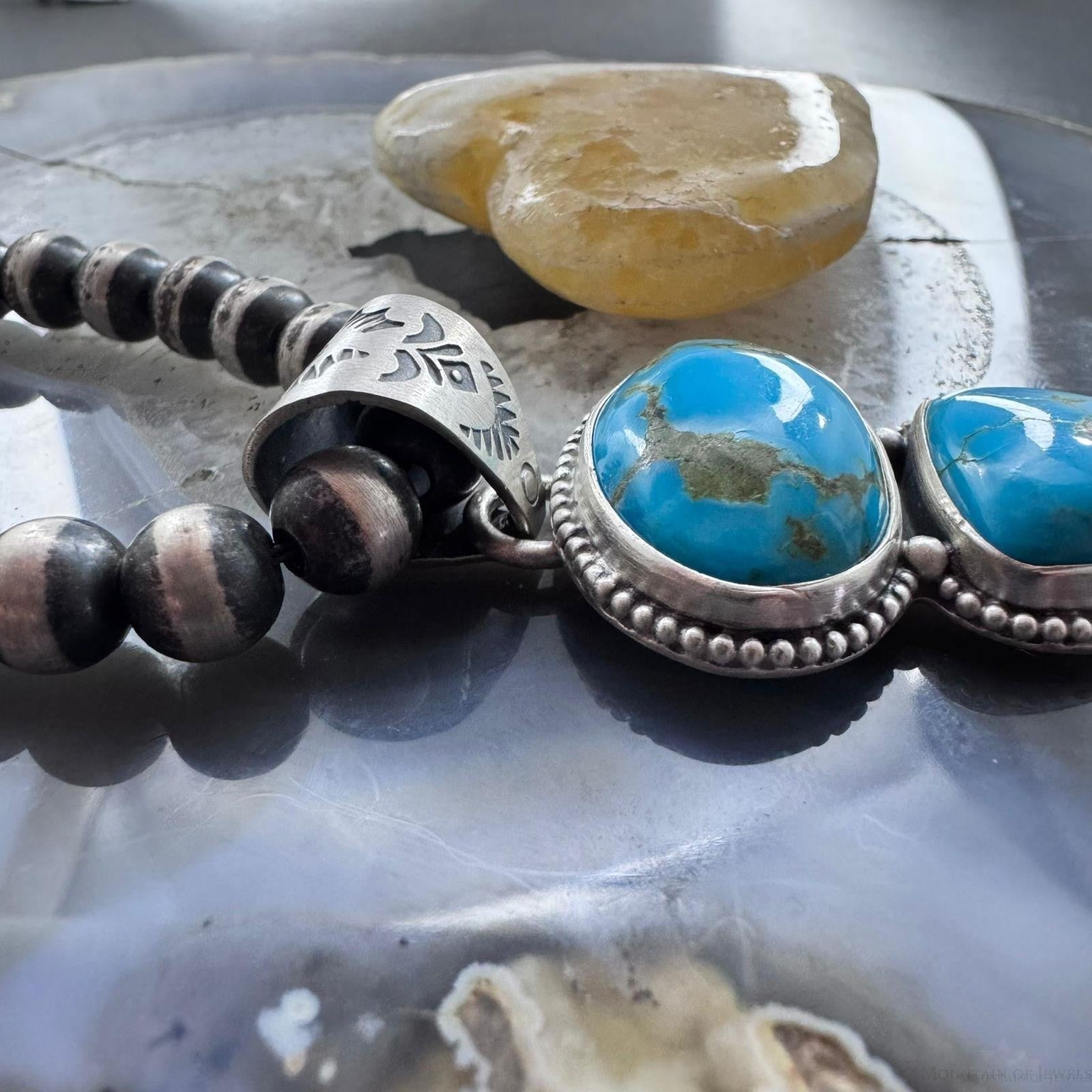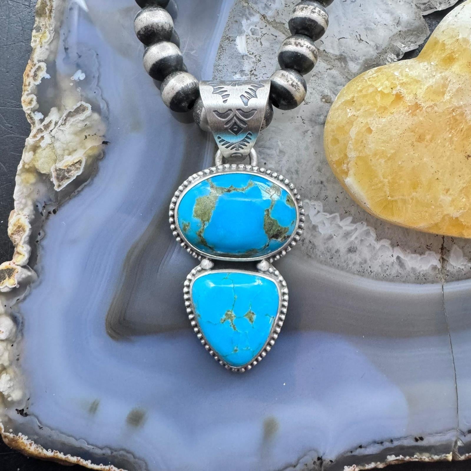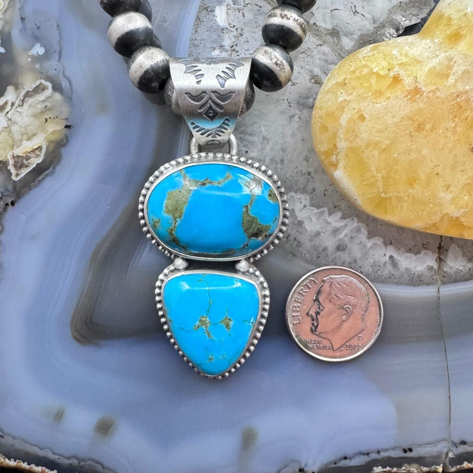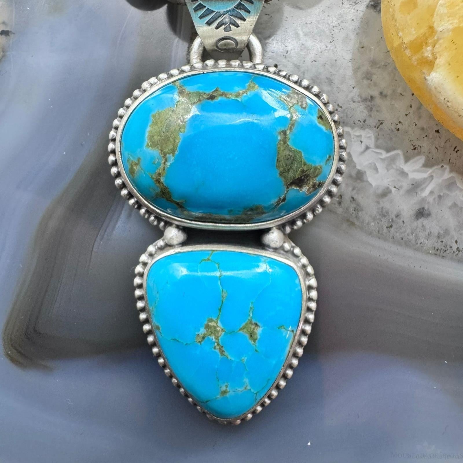 Native American Sterling Silver 2 Turquoise Decorated Pendant For Women
