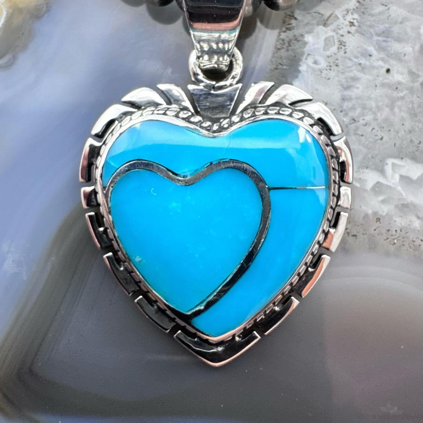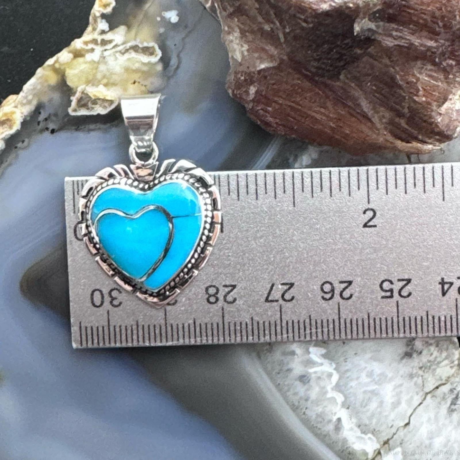 Native American Sterling Silver Kingman Turquoise Decorated Double Heart Pendant For Women