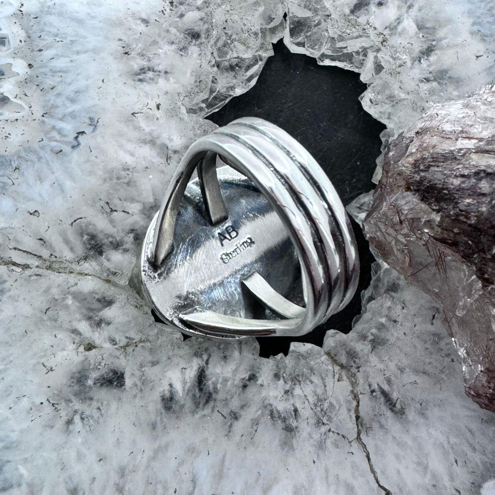 Native American Sterling Silver Oval Sonora Gold Turquoise Ring Size 8.25 For Women