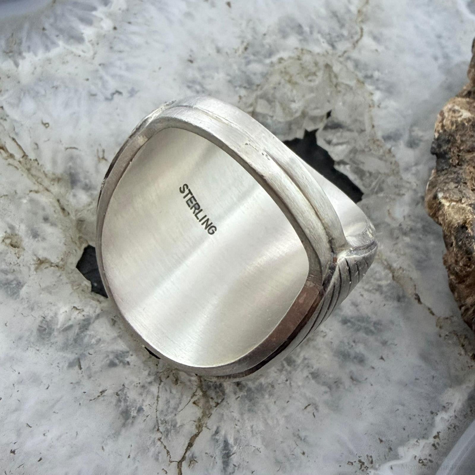Native American Sterling Silver Square Kingman Turquoise Shield Ring Size 11.25 For Men