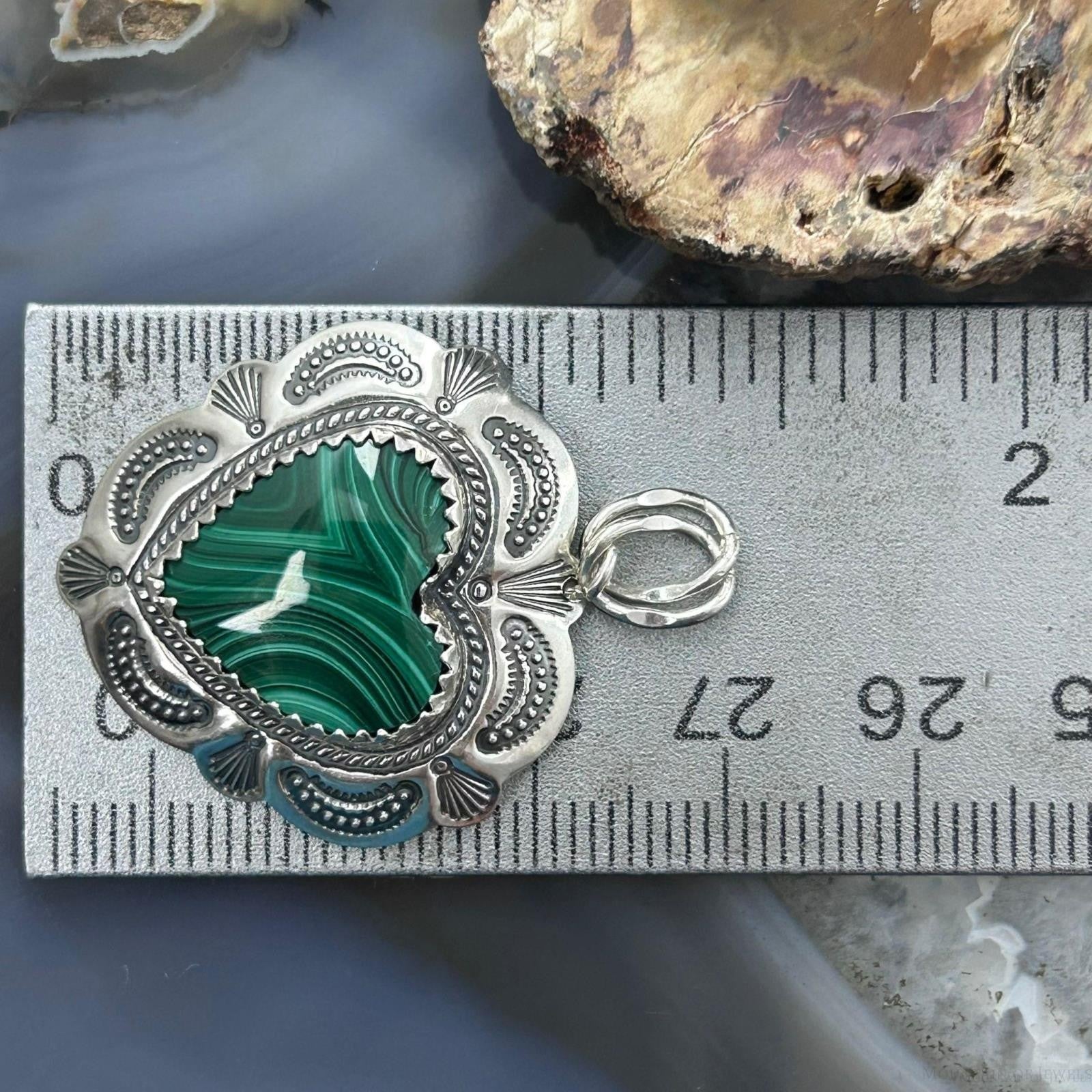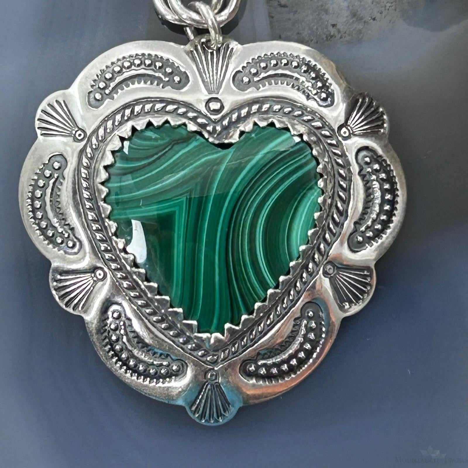 QT Quoc Sterling Silver Southwestern Style Malachite Heart Pendant For Women