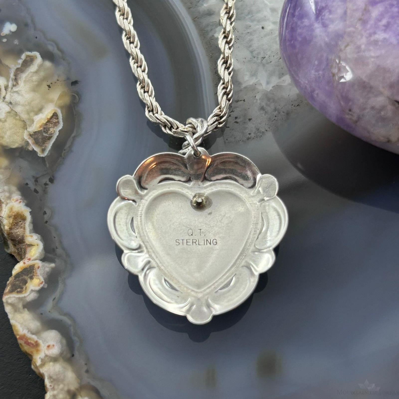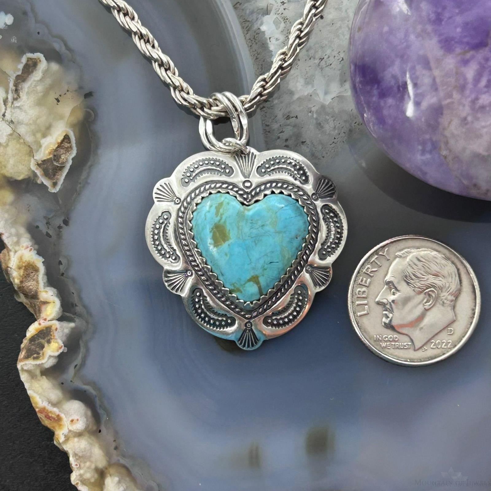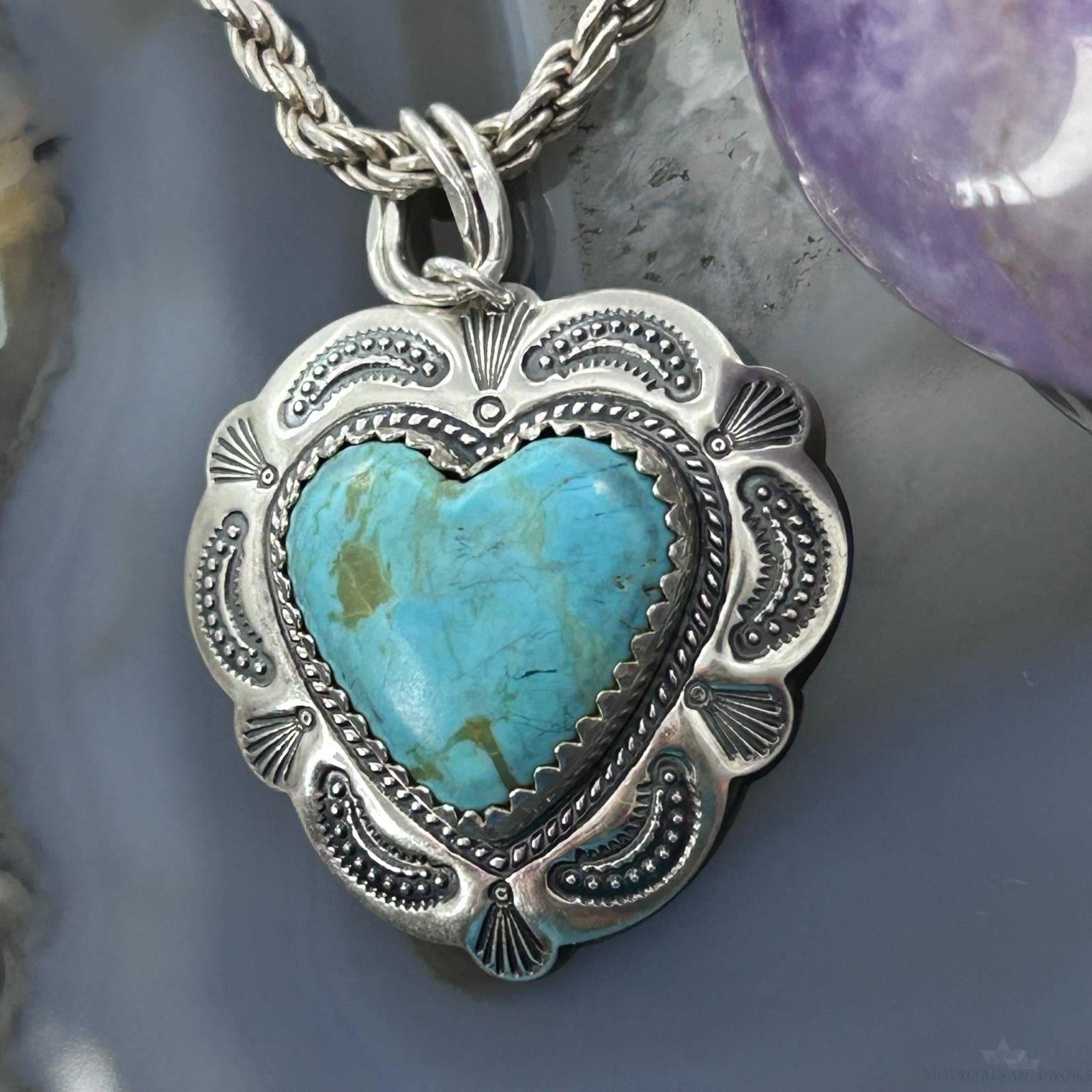 QT Quoc Sterling Silver Southwestern Style Turquoise Heart Pendant For Women