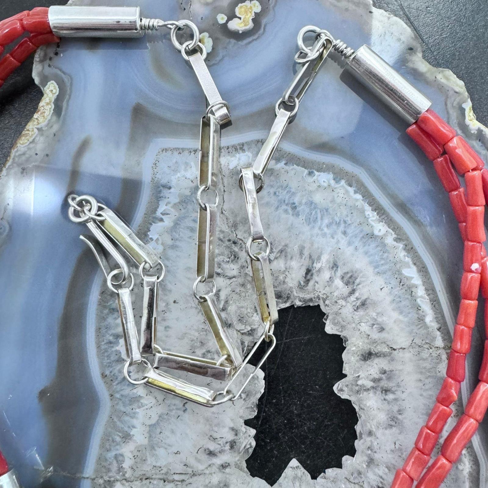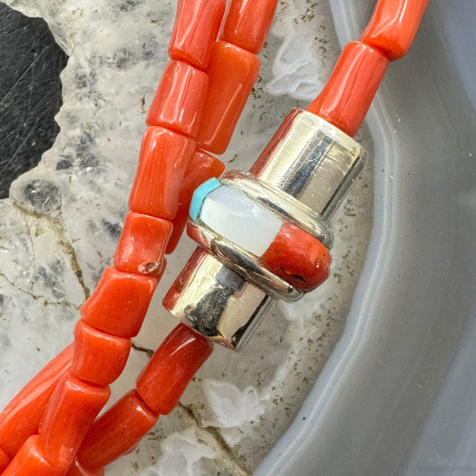 Rayland & Patty Edaakie Zuni Sterling Silver Coral & Multi Gemstone Inlay Pendant w/ Necklace For Women
