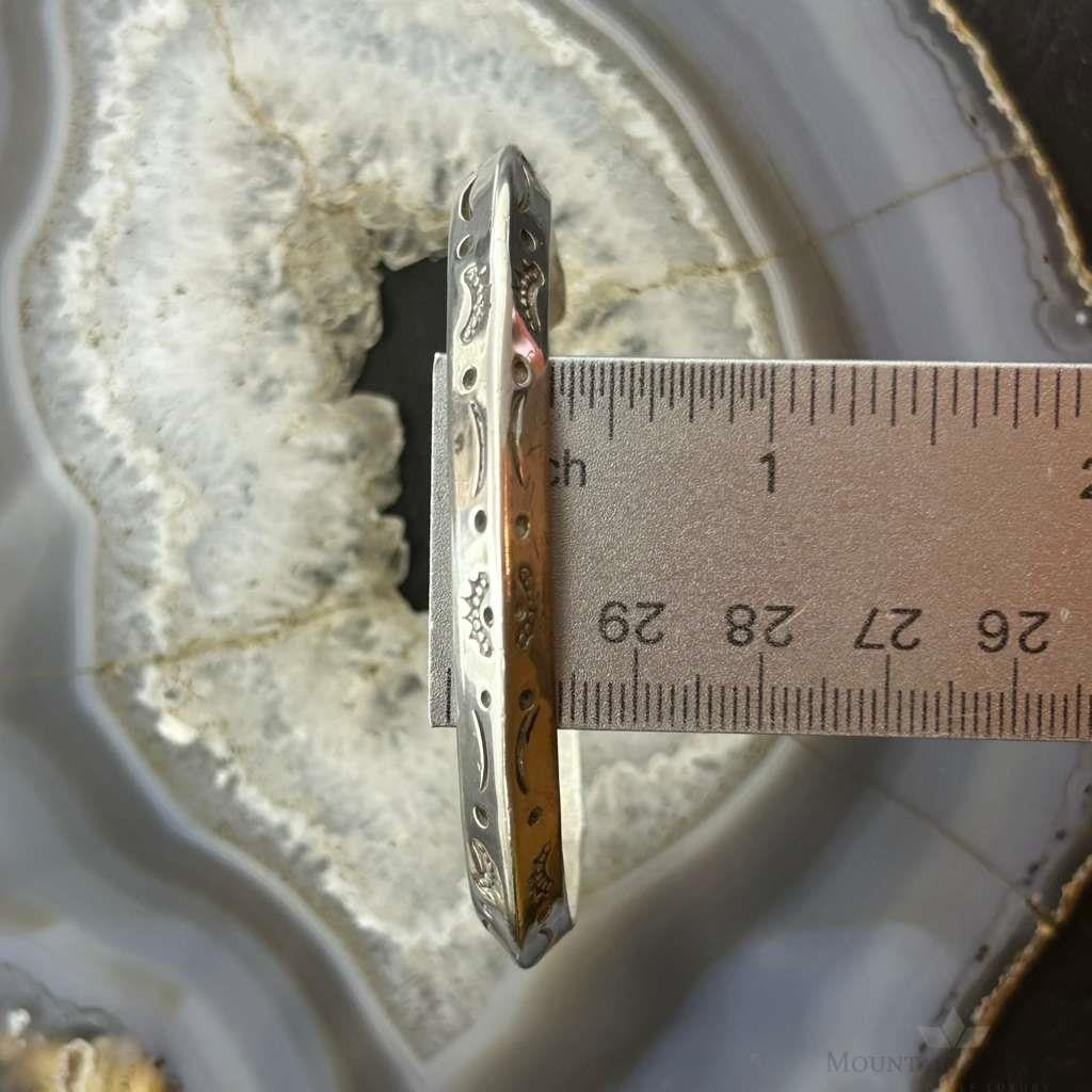 Signed Native American Sterling Silver Stamped Carinated Bracelet For Women