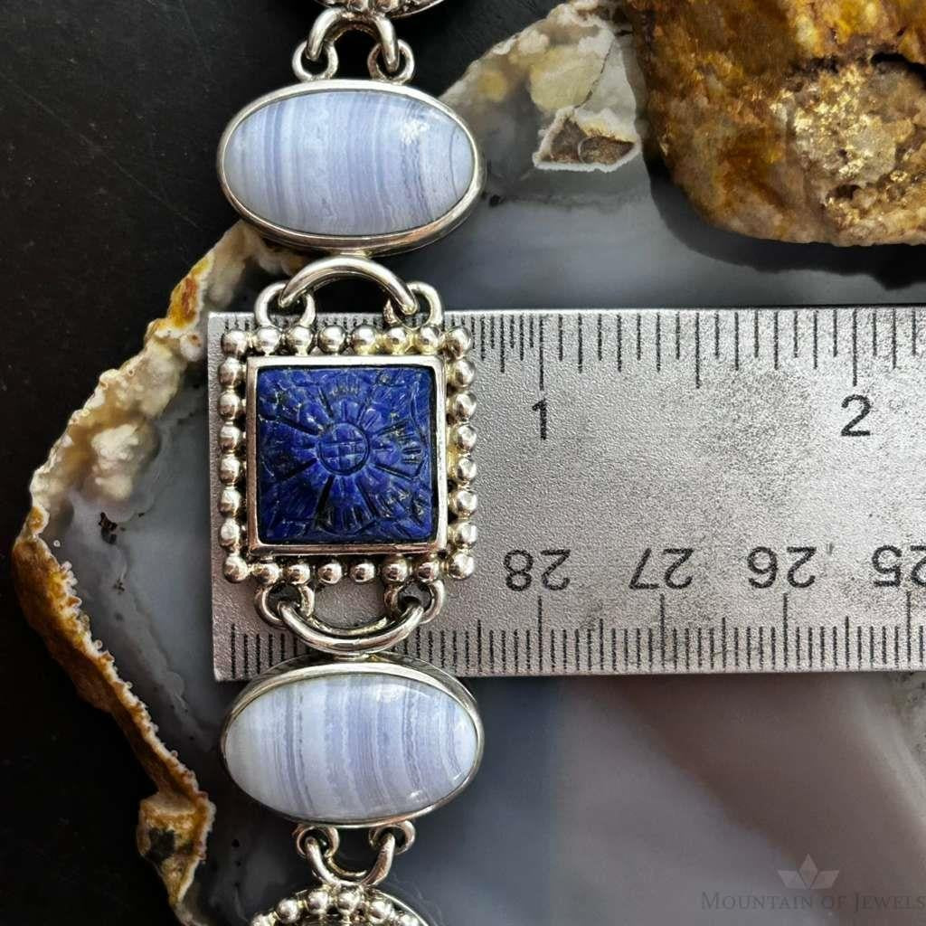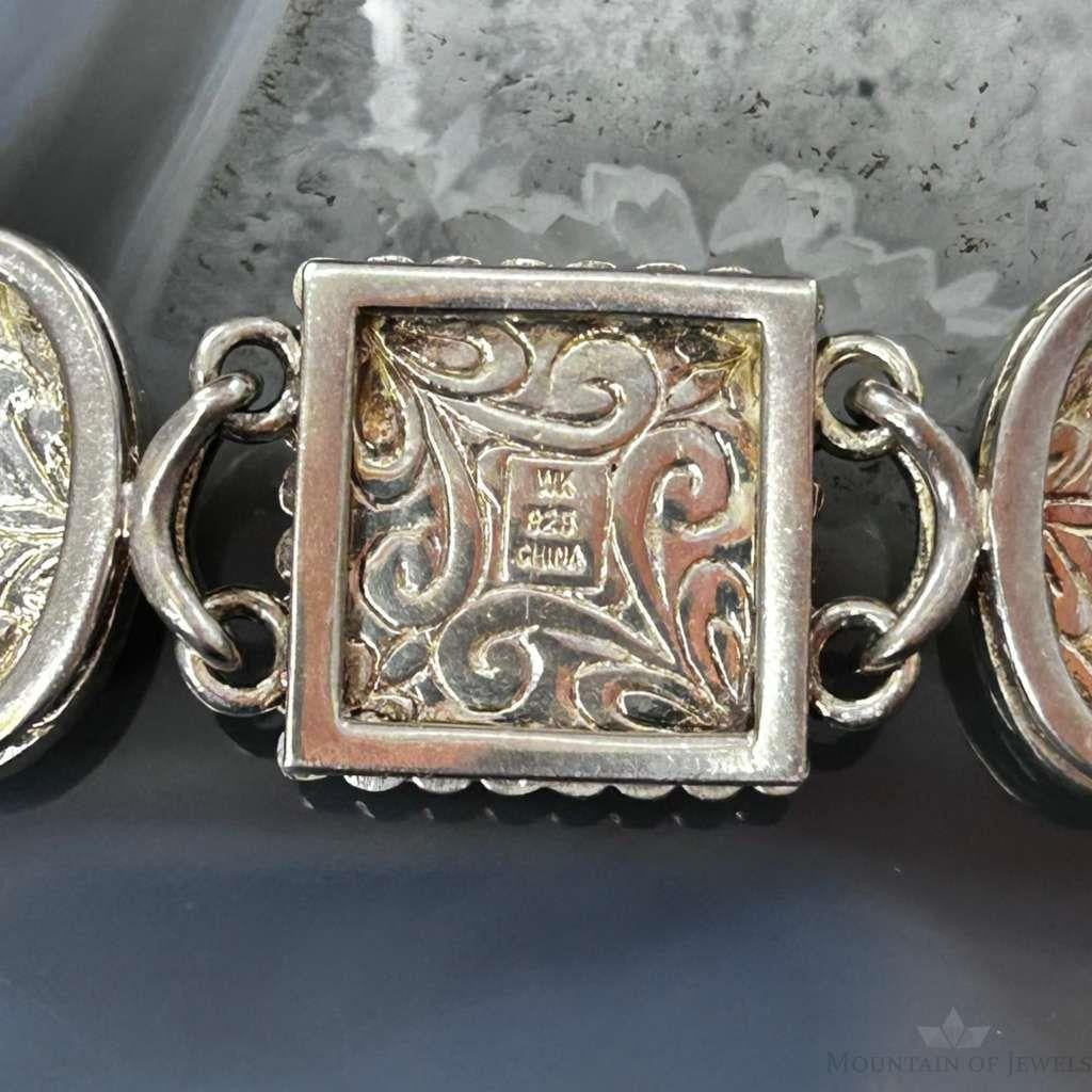 Sterling Silver Multi Shape and Stone Toggle Clasp Fashion Link Bracelet For Women