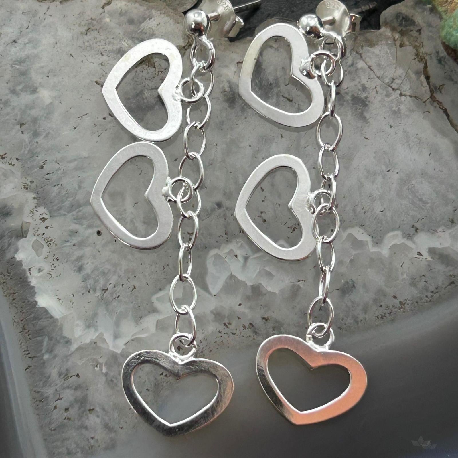 Sterling Silver 3 Cutout Hearts Fashion Dangle Earrings For Women