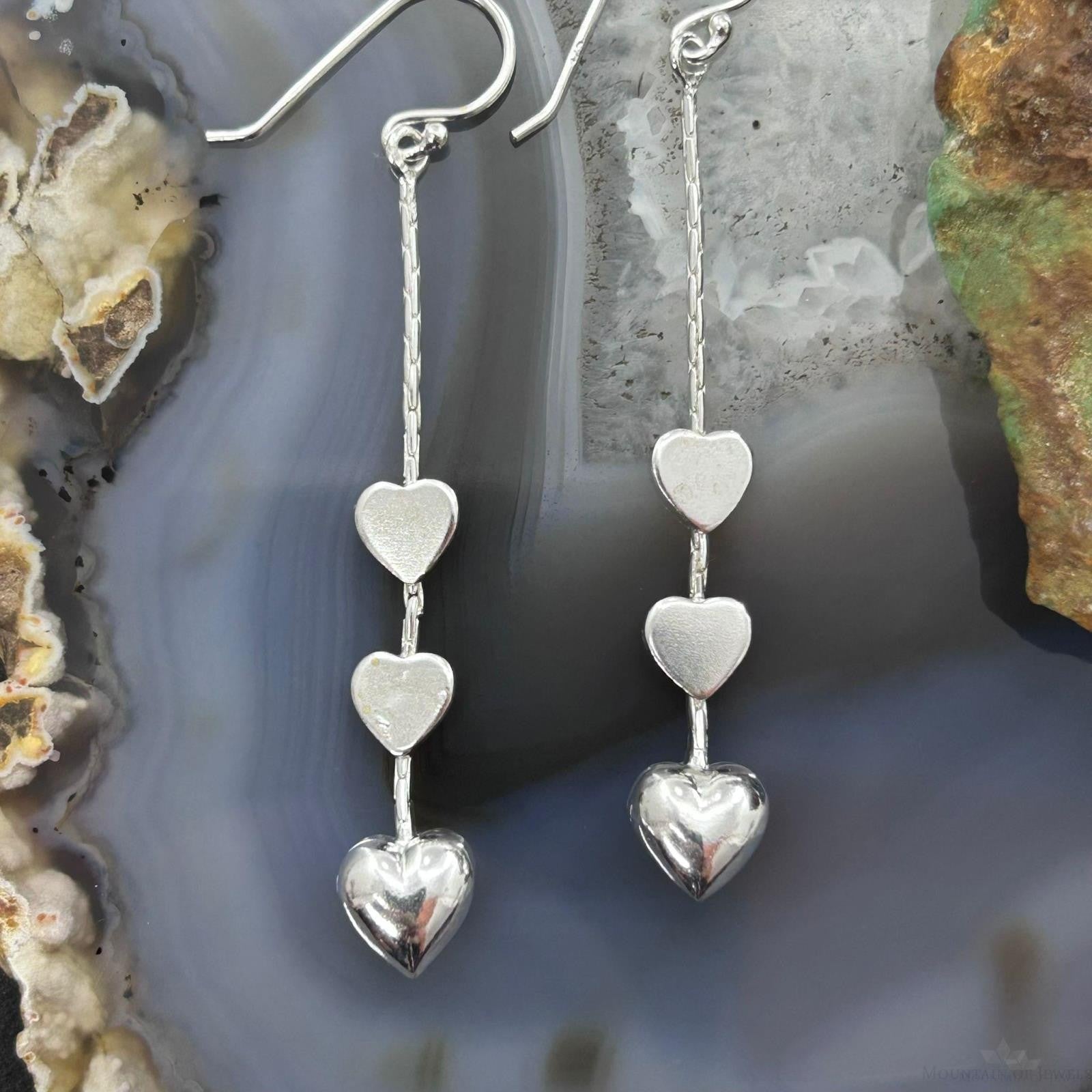 Sterling Silver 3 Hearts Fashion Dangle Earrings For Women