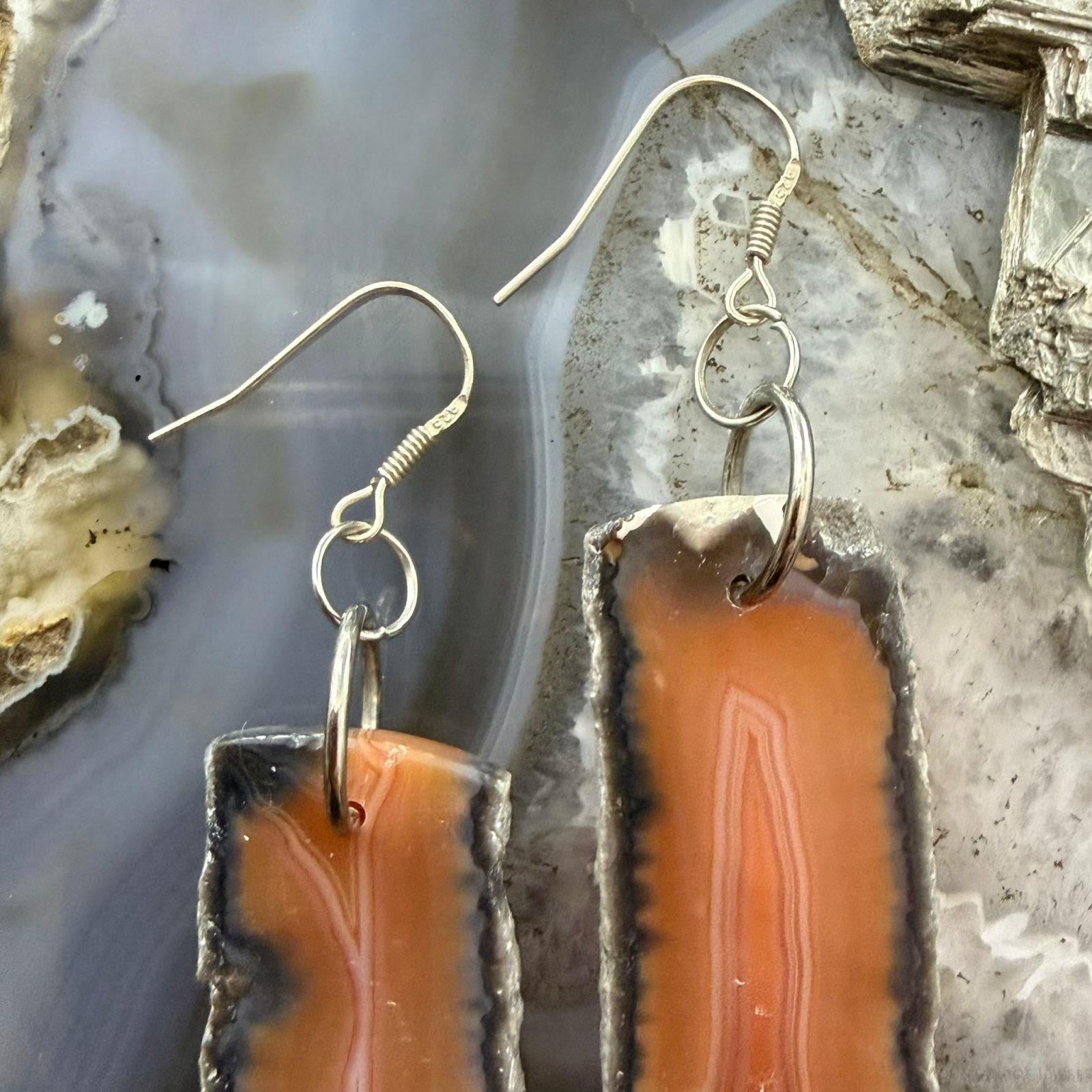 Sterling Silver Agate Slab Dangle Earrings For Women #402
