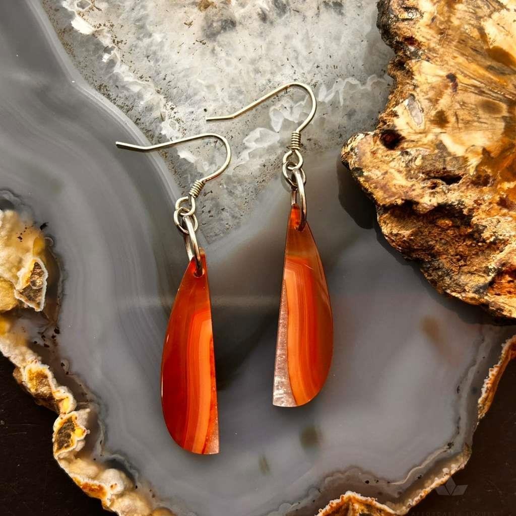 Sterling Silver Elongated Half Moon Carnelian Slab Dangle Earrings For Women 327