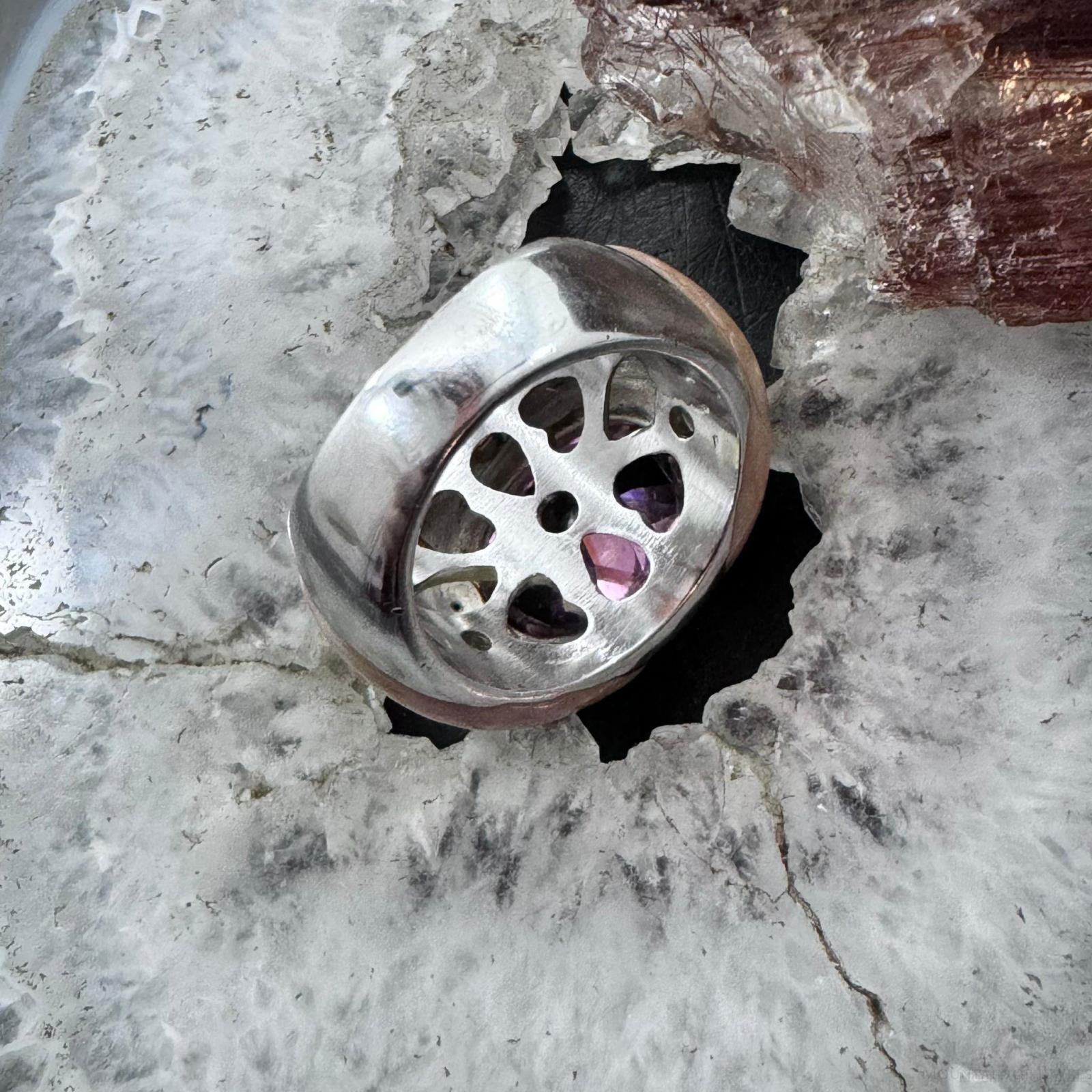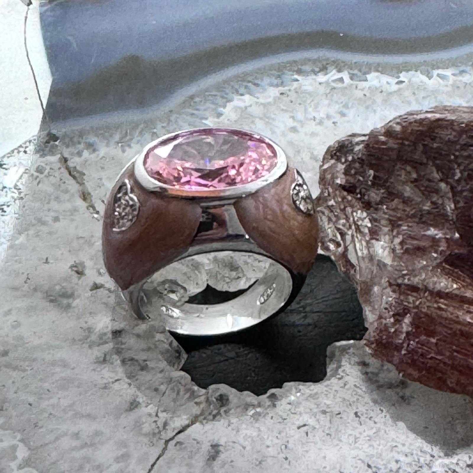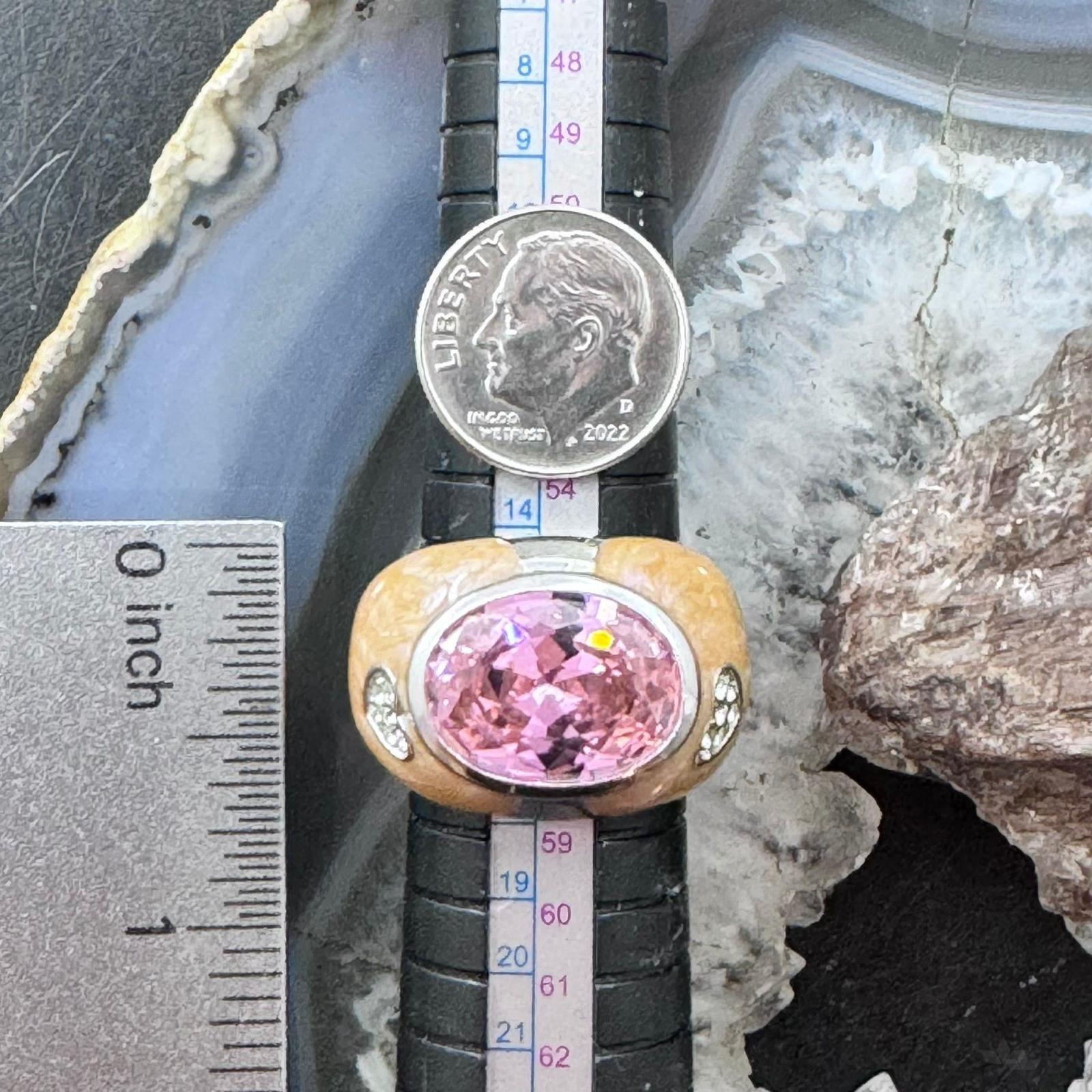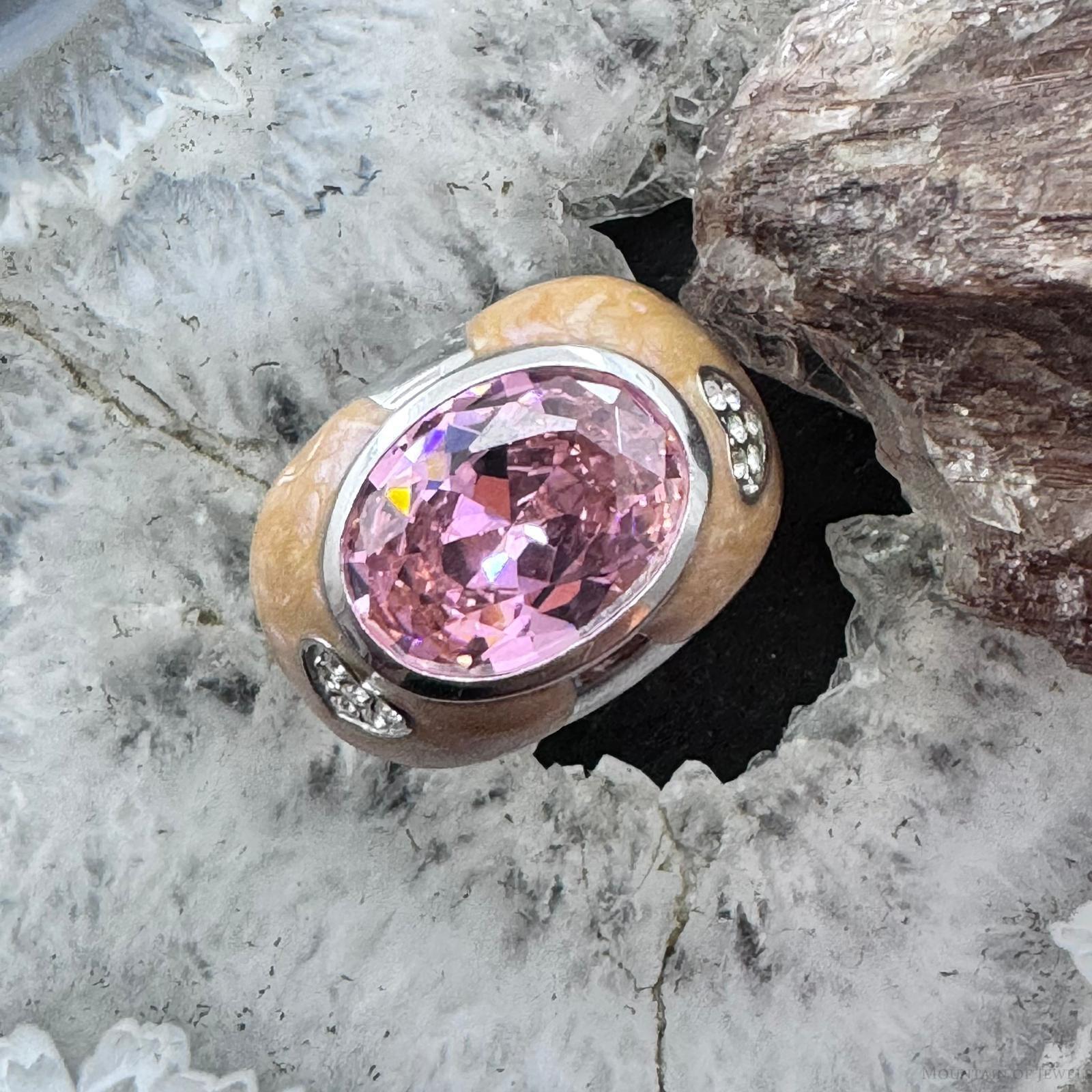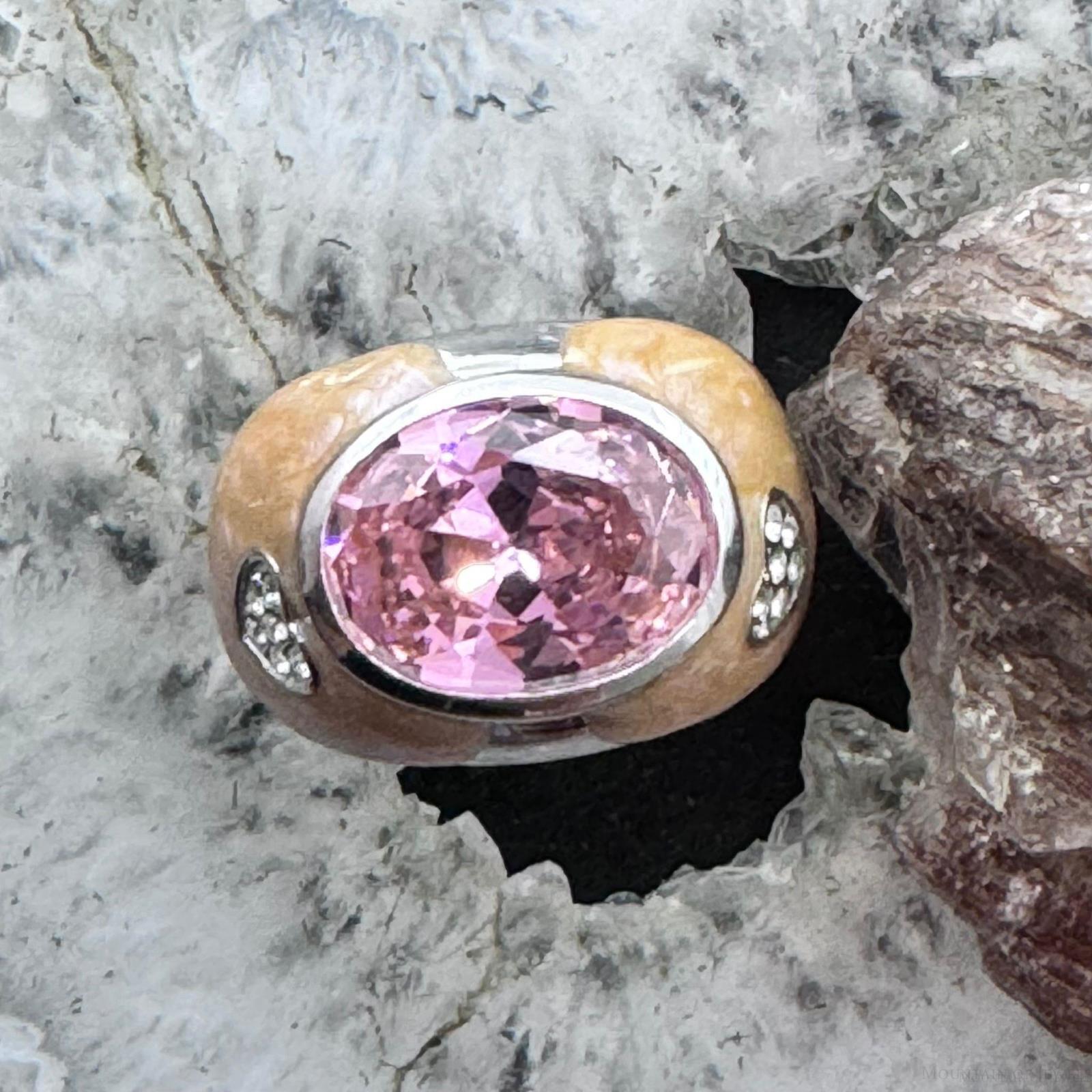 Sterling Silver Faceted Pink and Clear Cubic Zirconia Fashion Ring Size 8 For Women