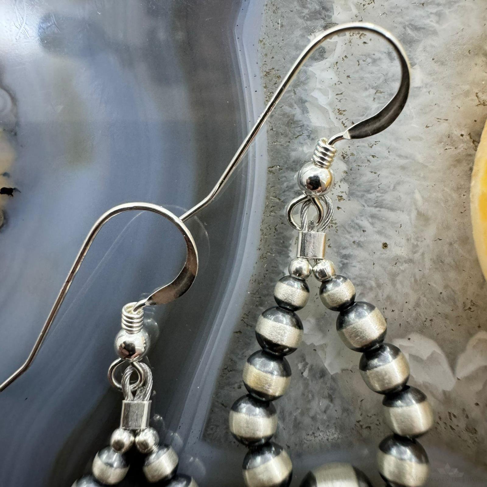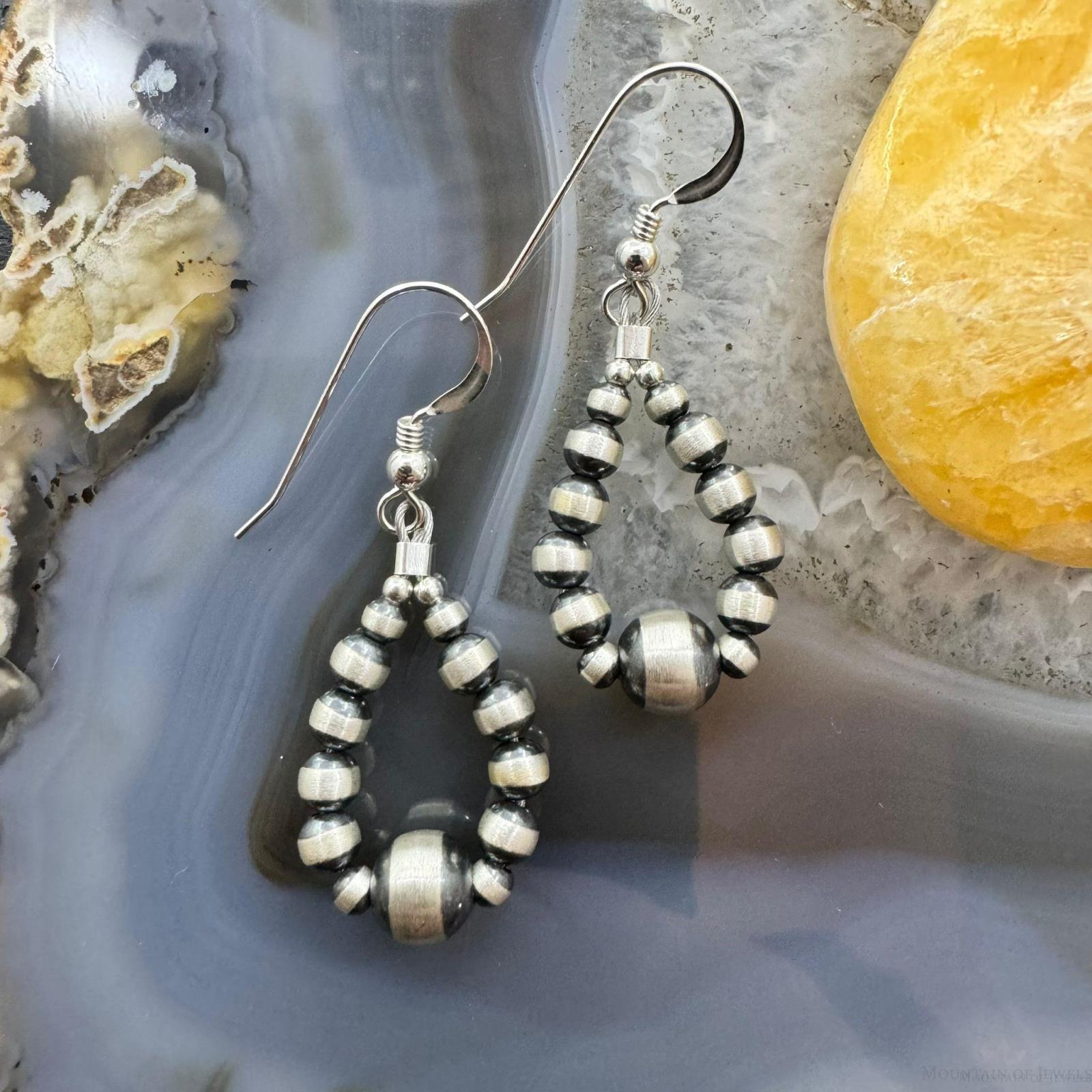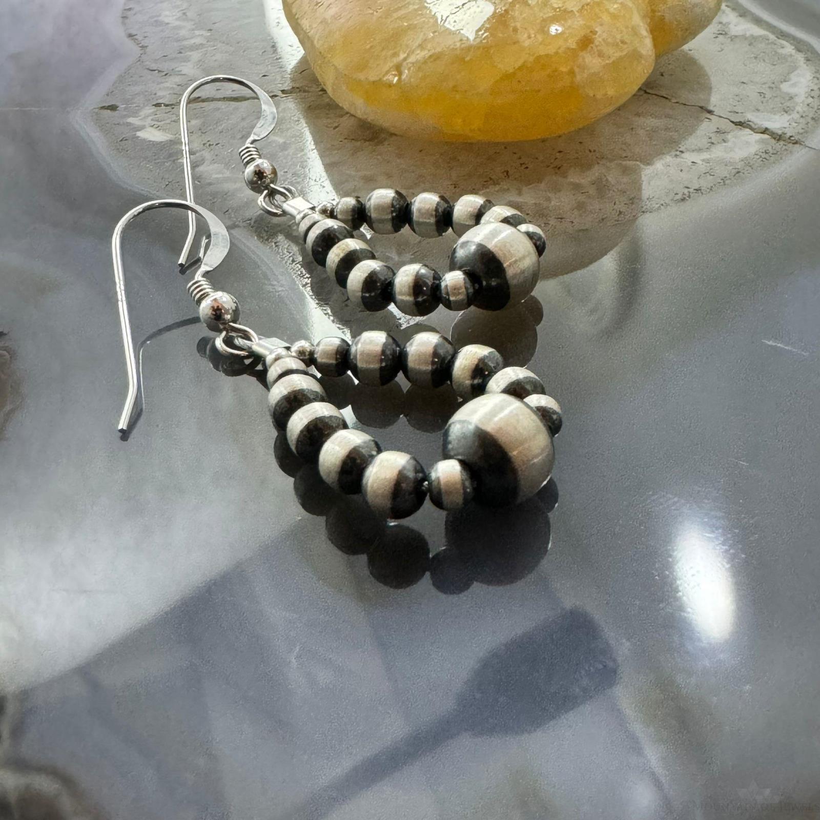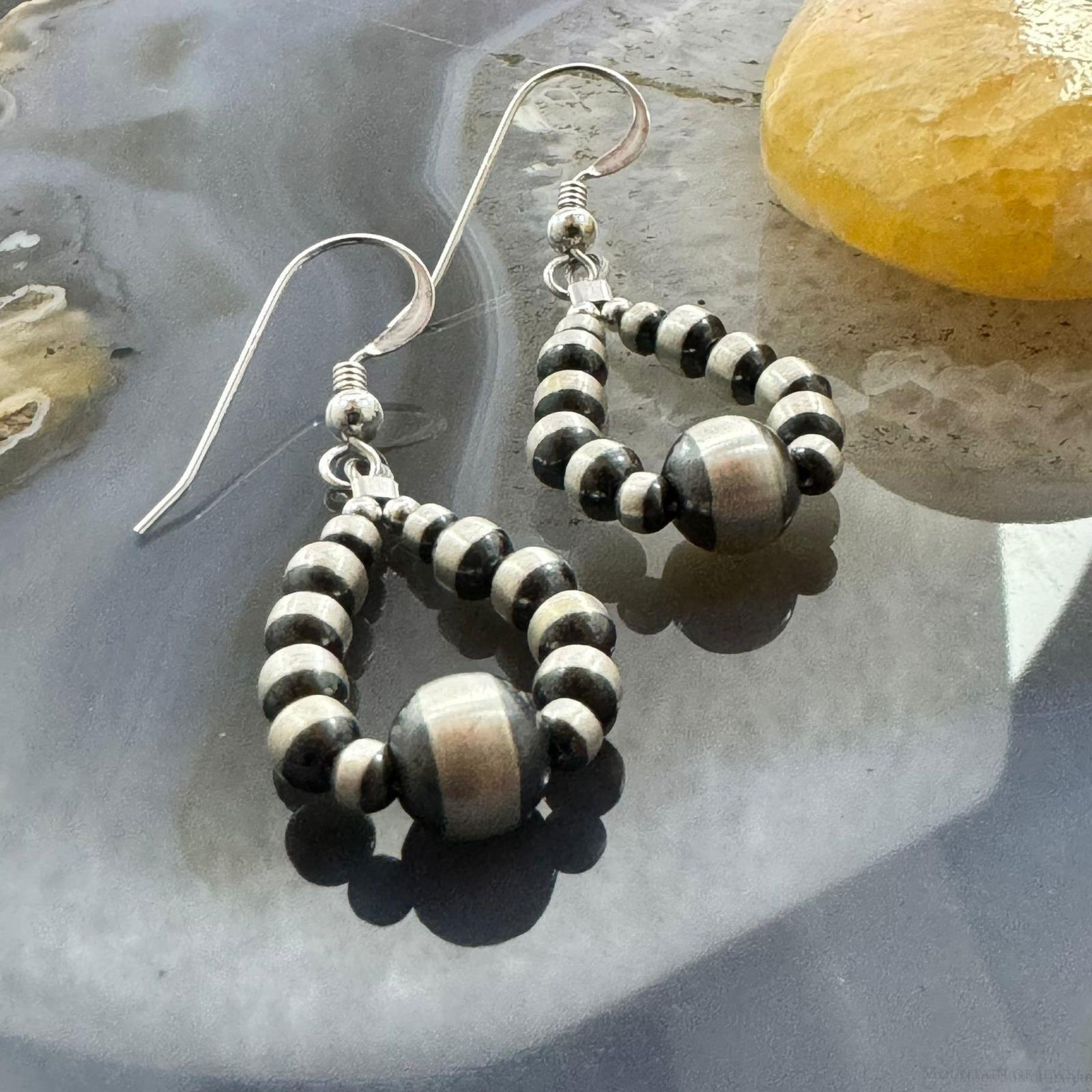 Sterling Silver Graduated Navajo Pearl Beads Hoop Dangle Earrings For Women