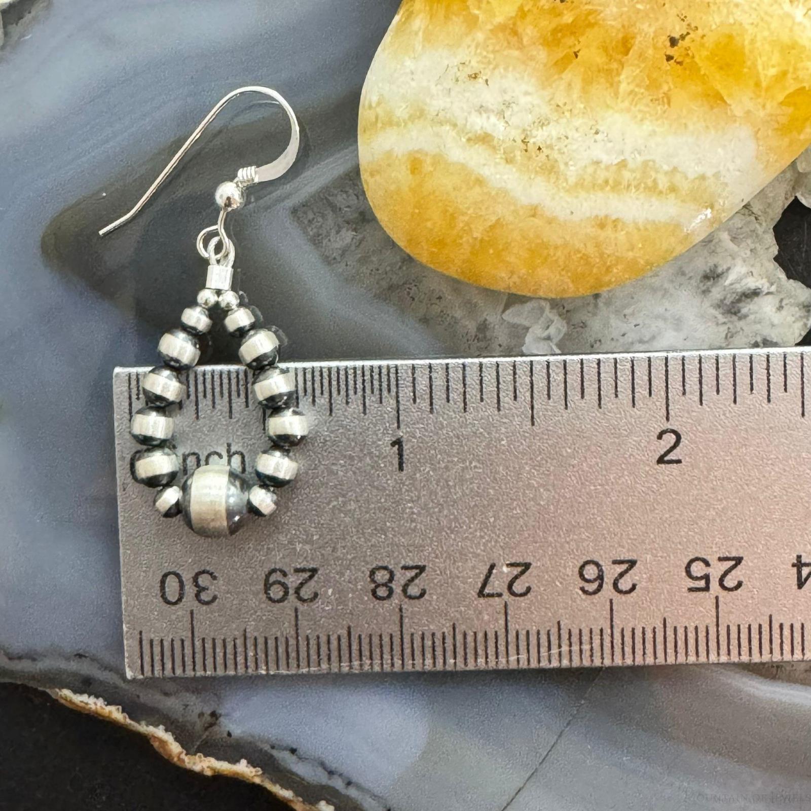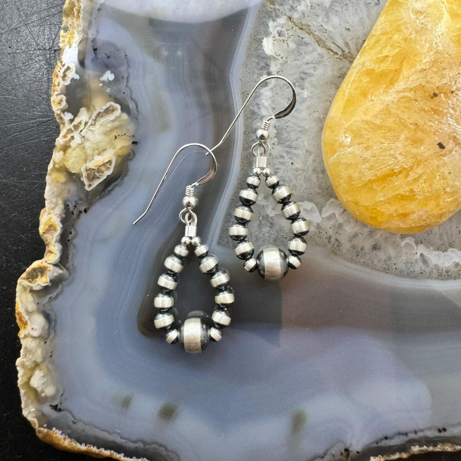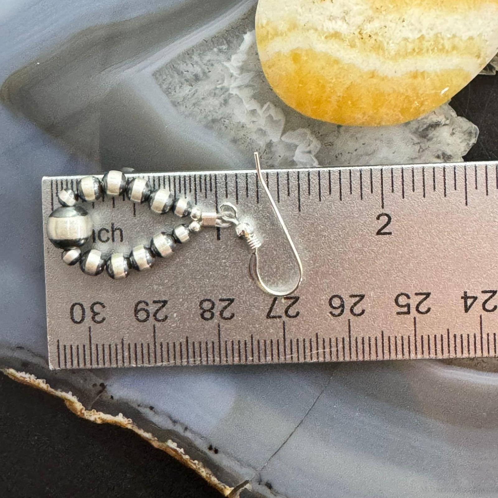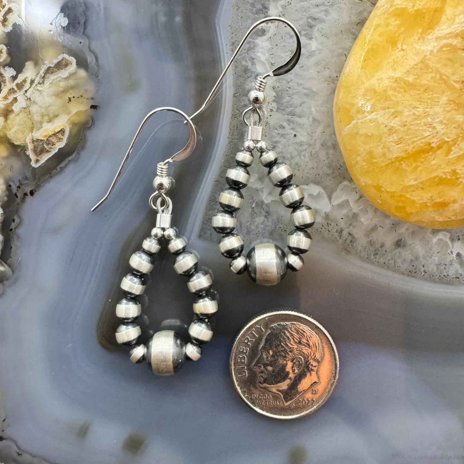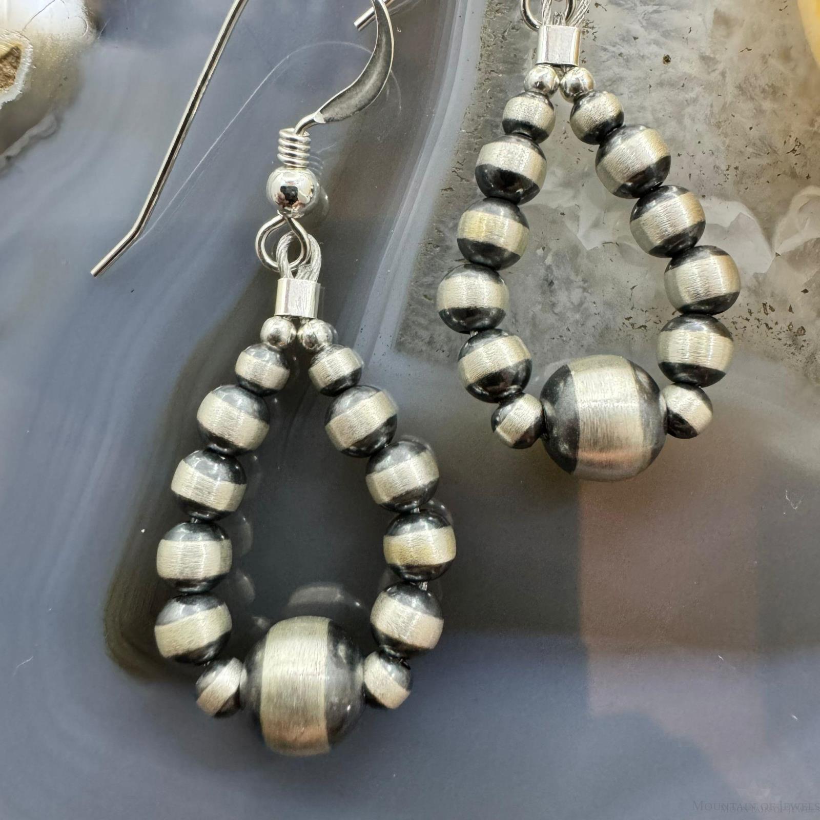 Sterling Silver Graduated Navajo Pearl Beads Hoop Dangle Earrings For Women