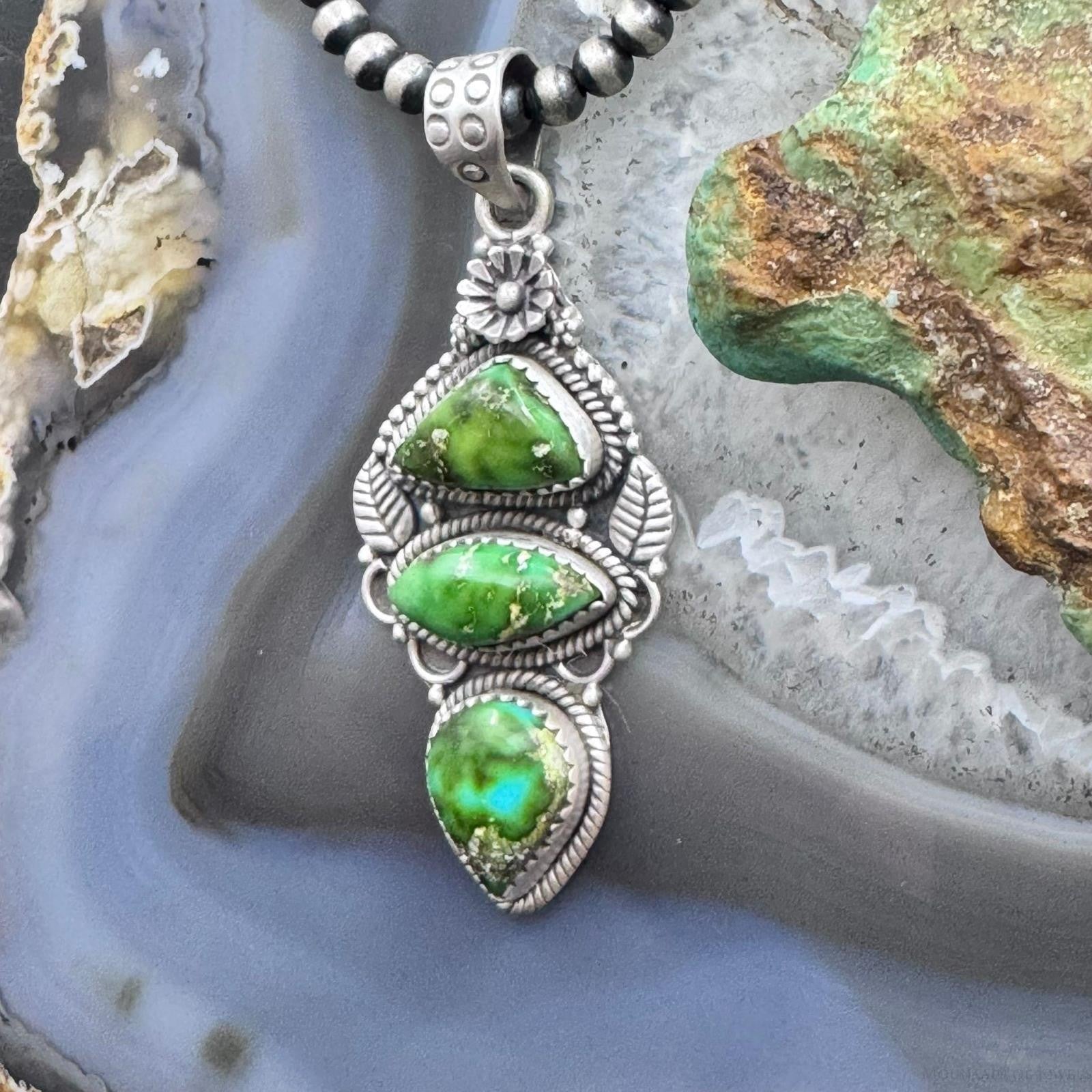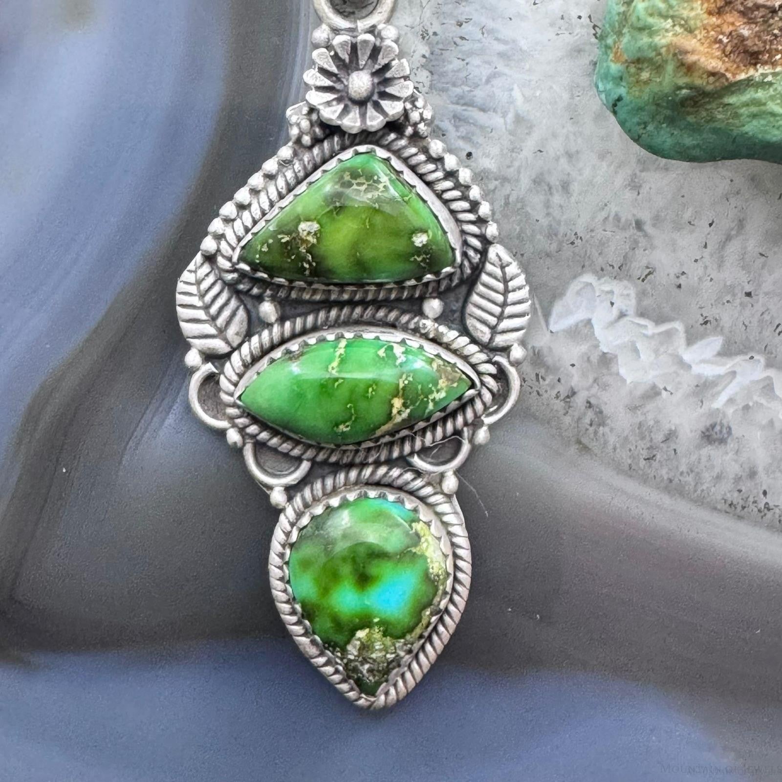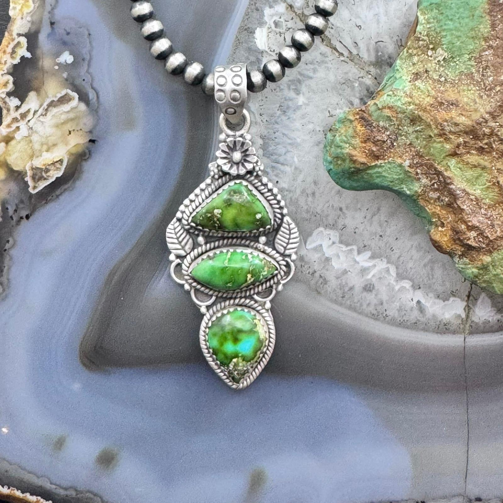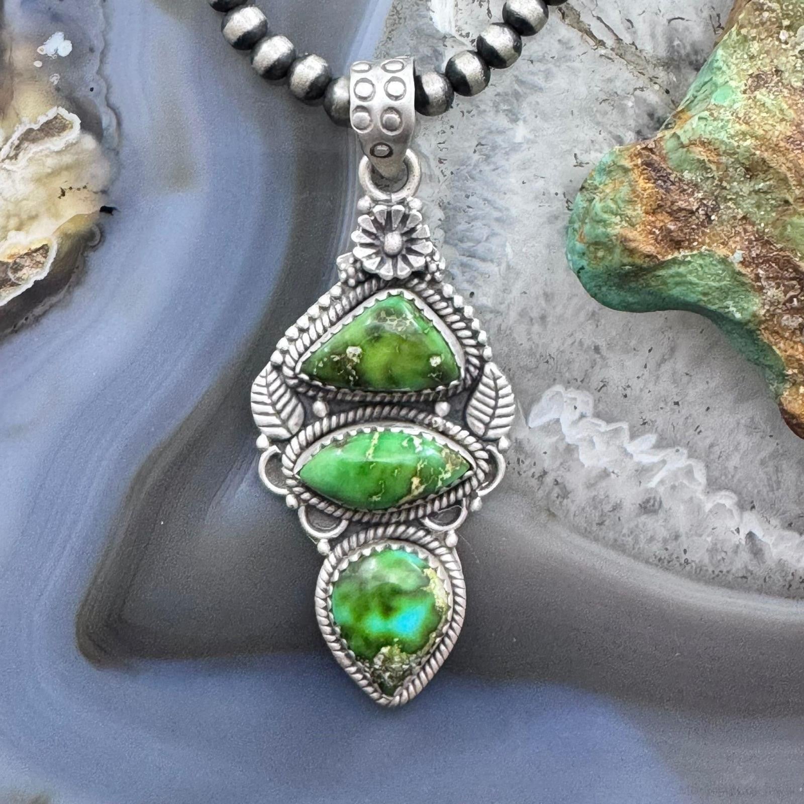 Sterling Silver Southwestern Style 3 Sonora Gold Turquoise Decorated Pendant For Women #1