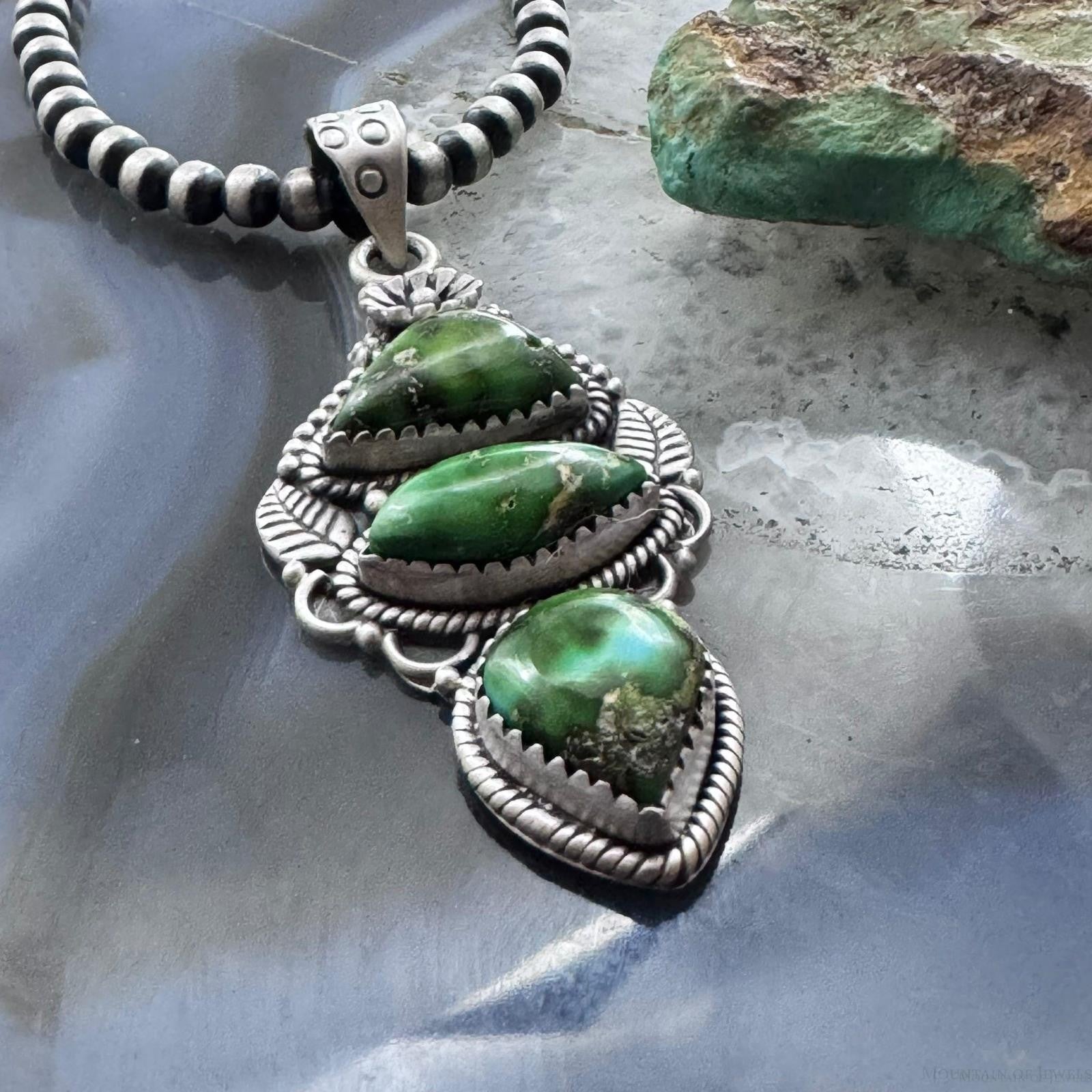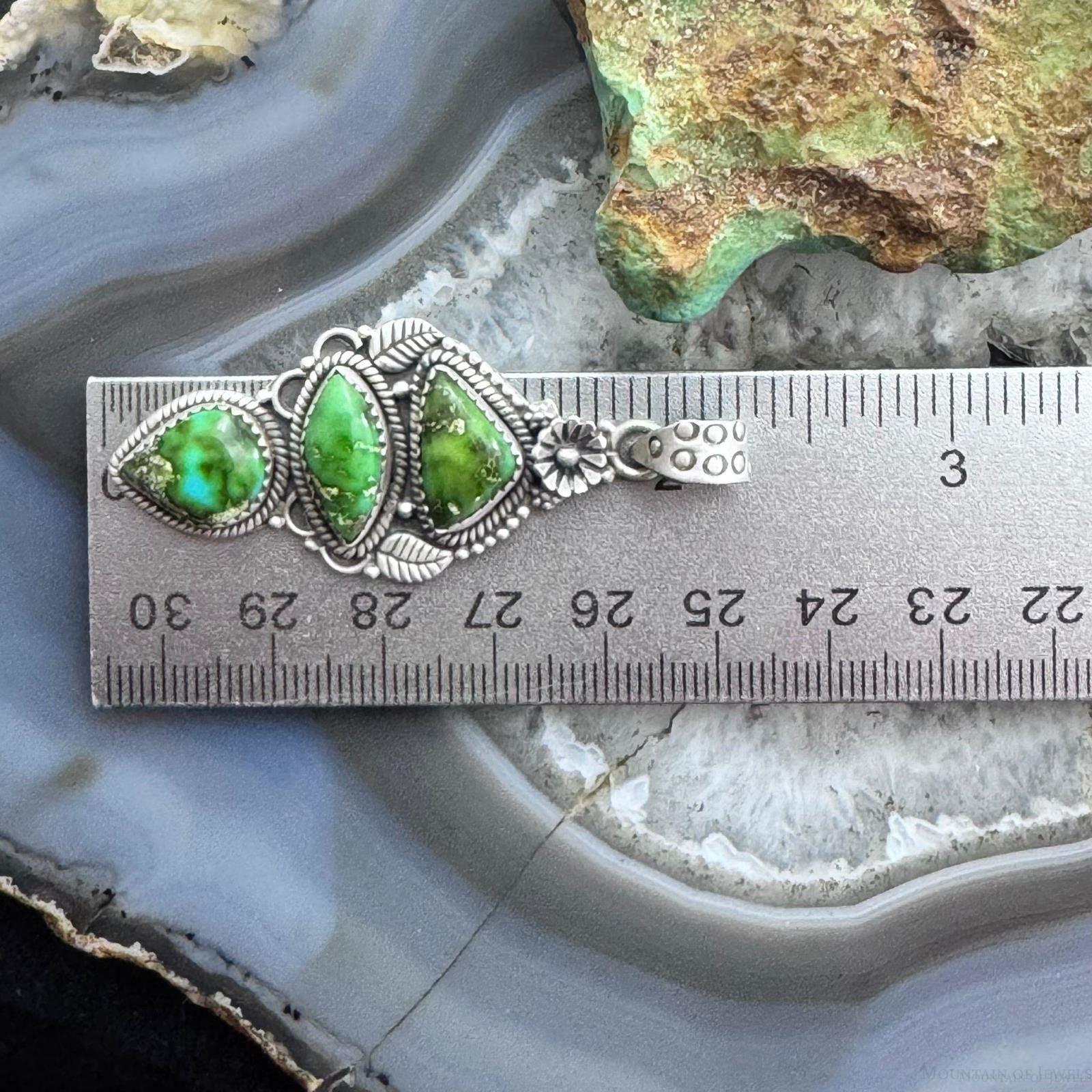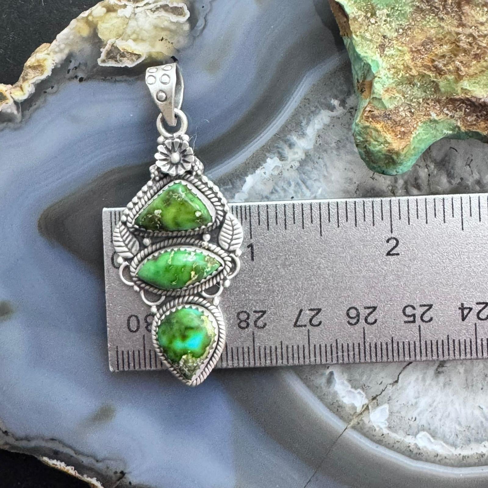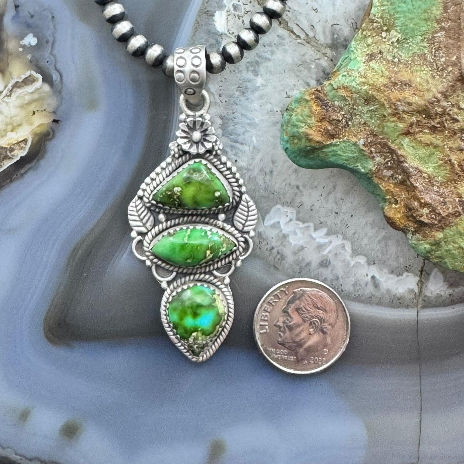 Sterling Silver Southwestern Style 3 Sonora Gold Turquoise Decorated Pendant For Women #1