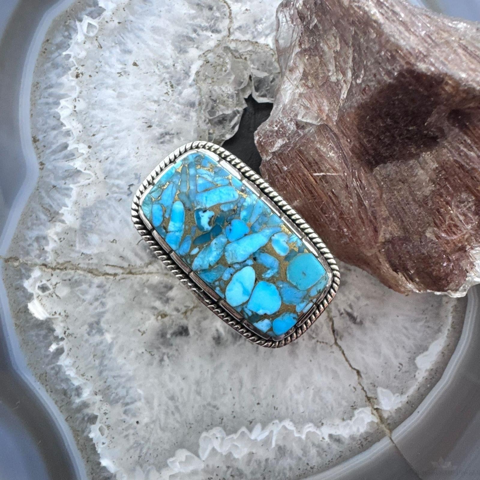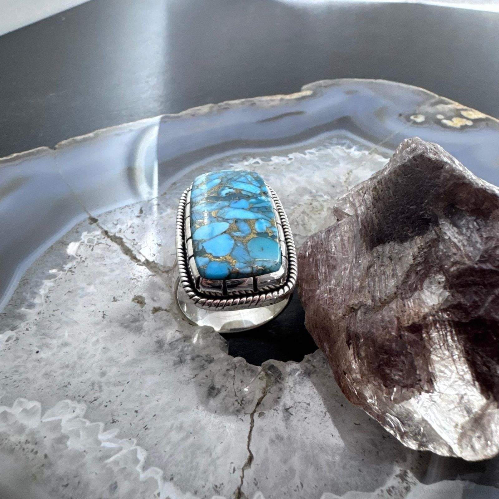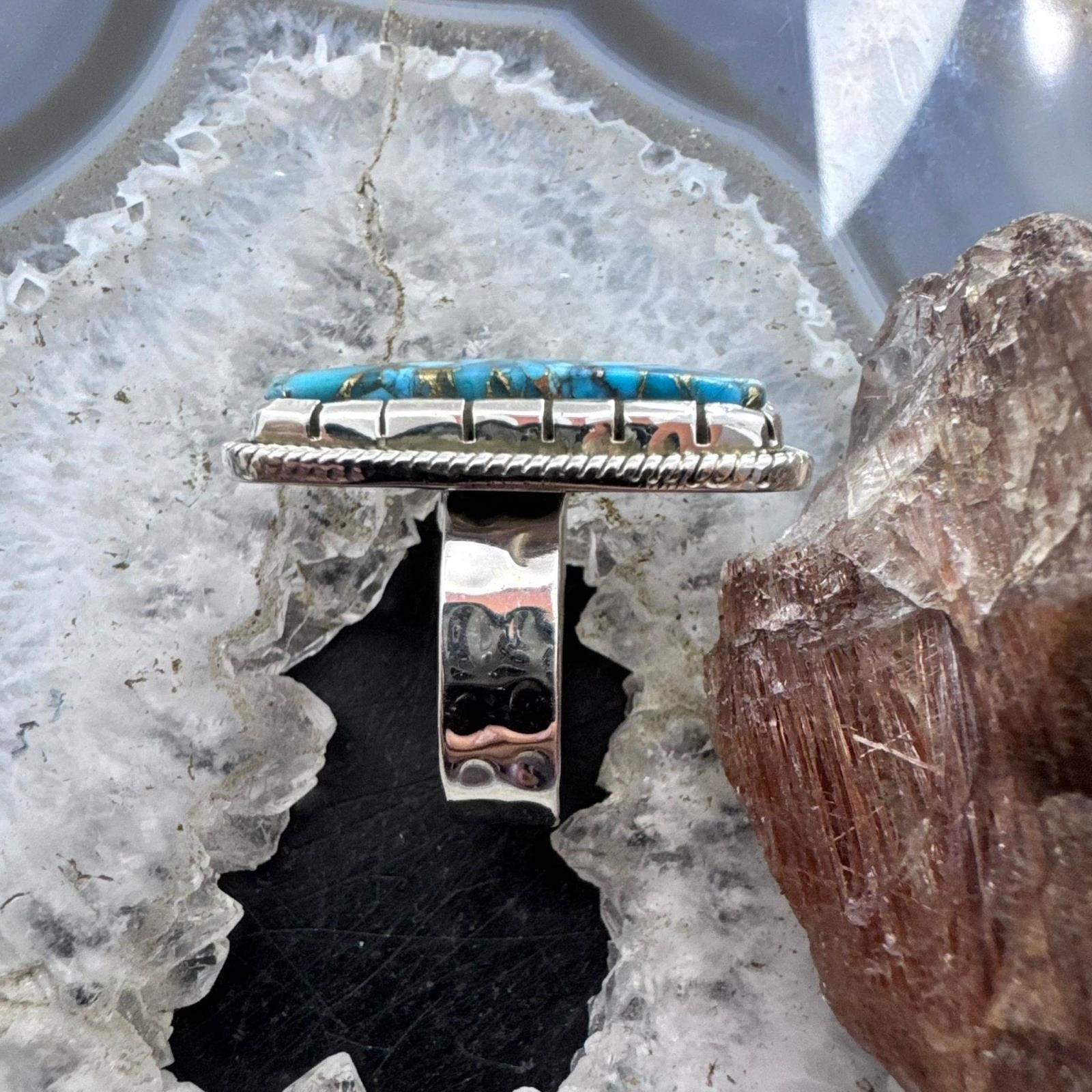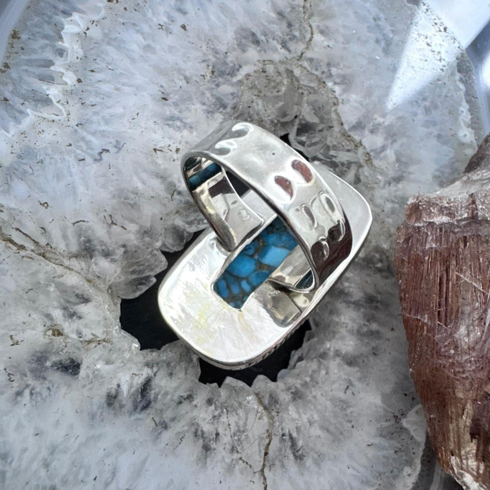 Sterling Silver Southwestern Style Blue Copper Turquoise Ring Size 9.25 For Women