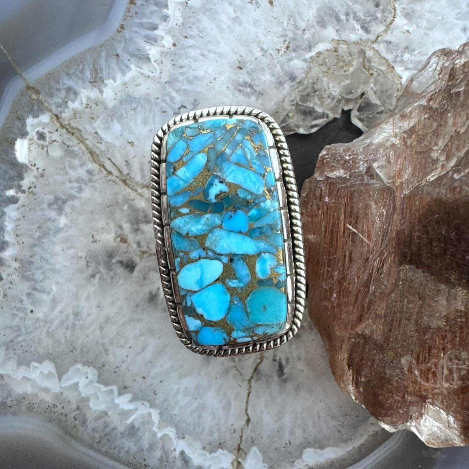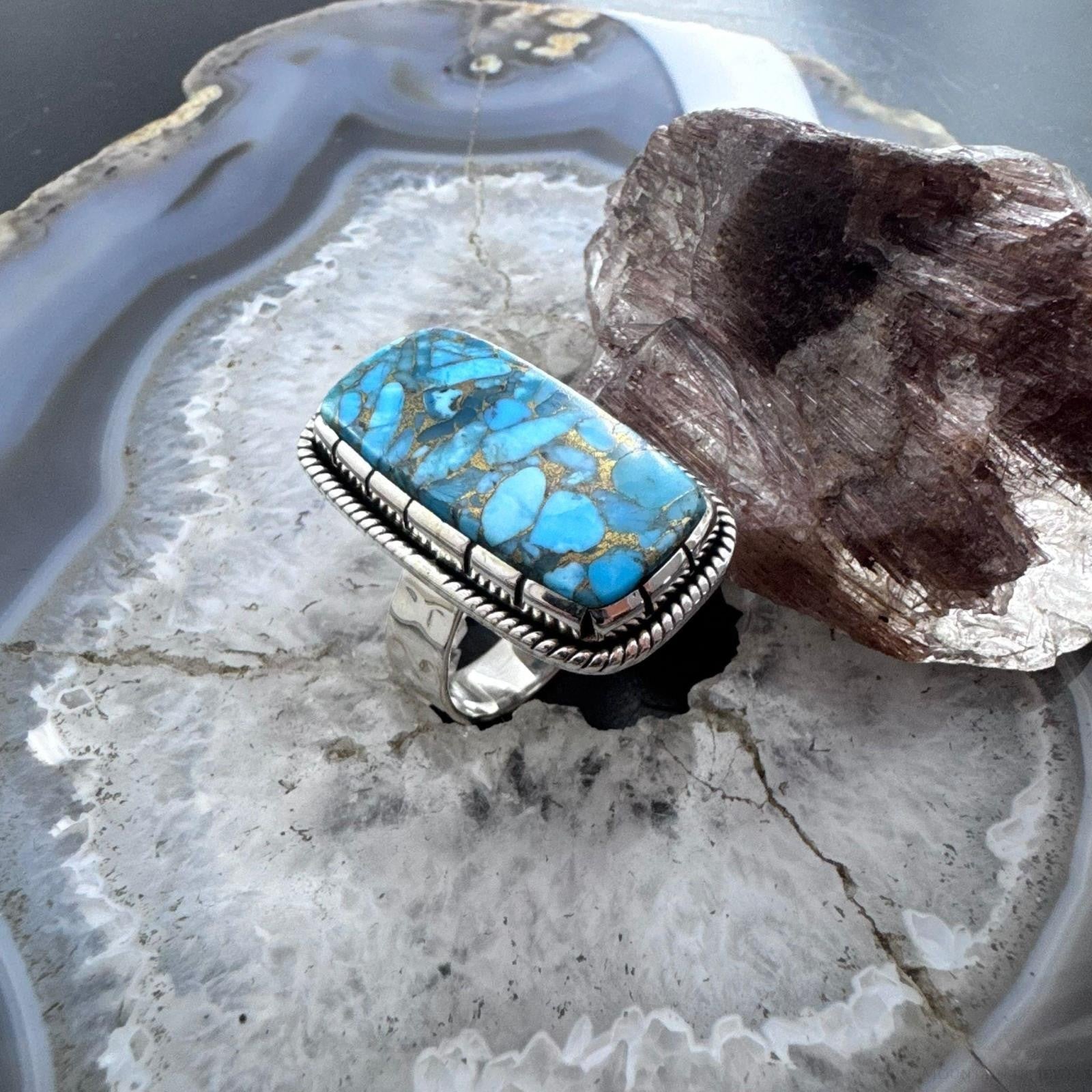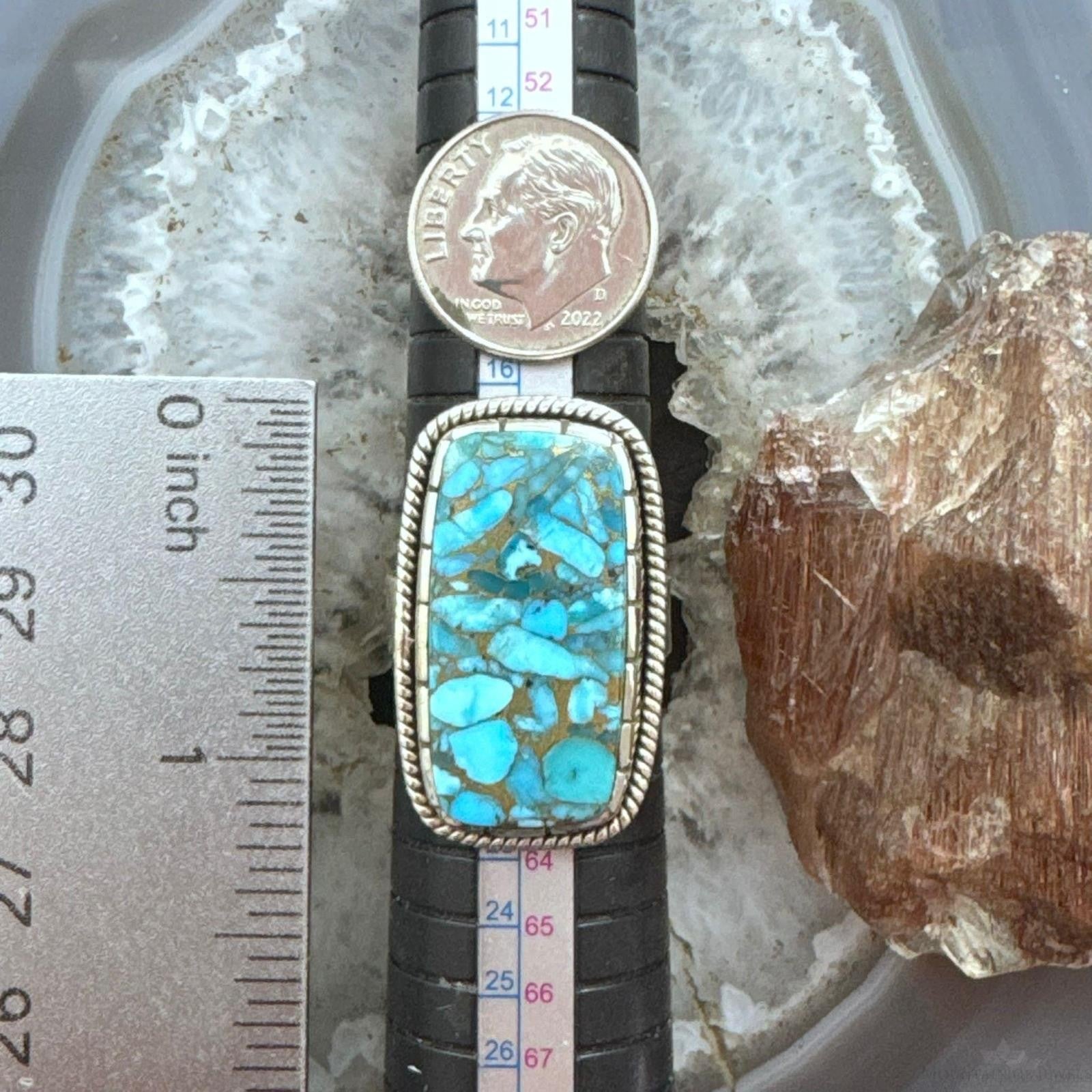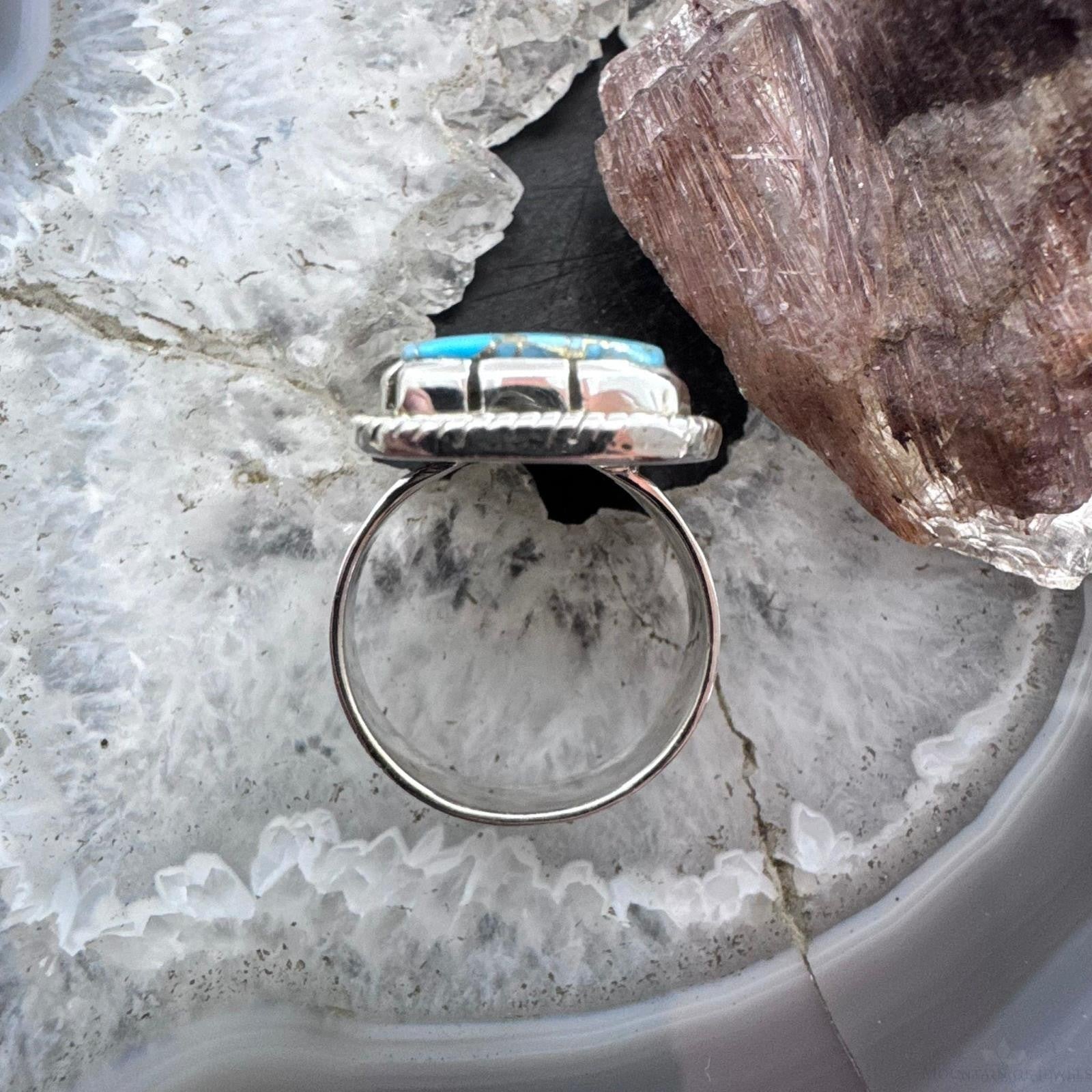 Sterling Silver Southwestern Style Blue Copper Turquoise Ring Size 9.25 For Women