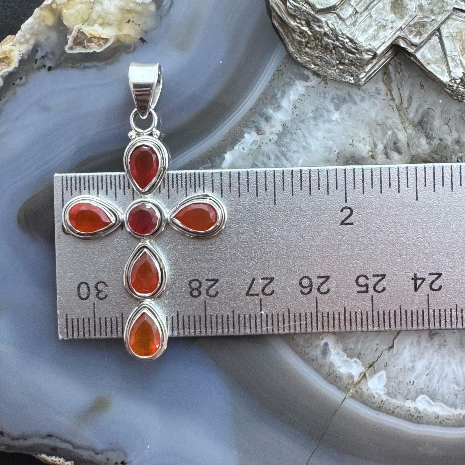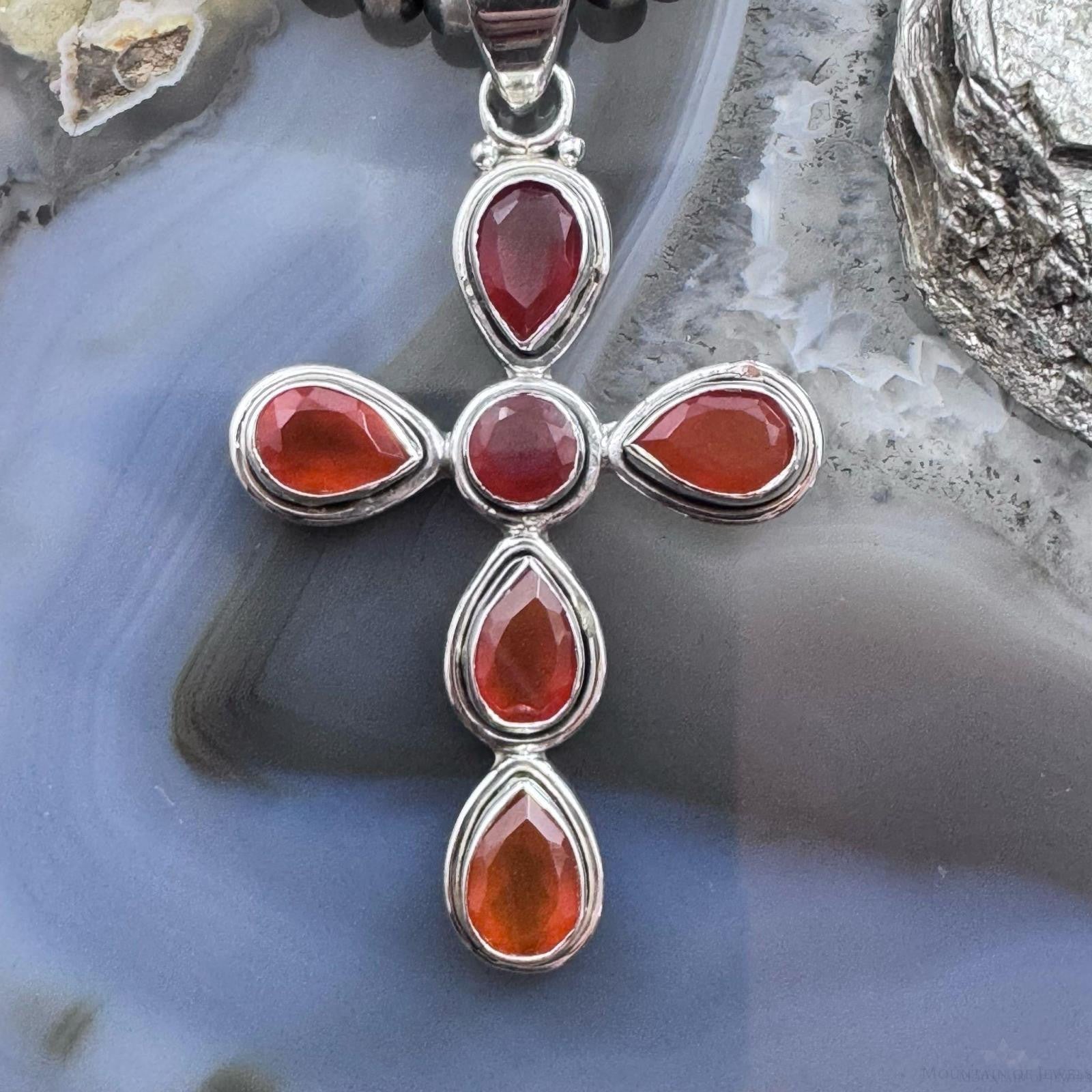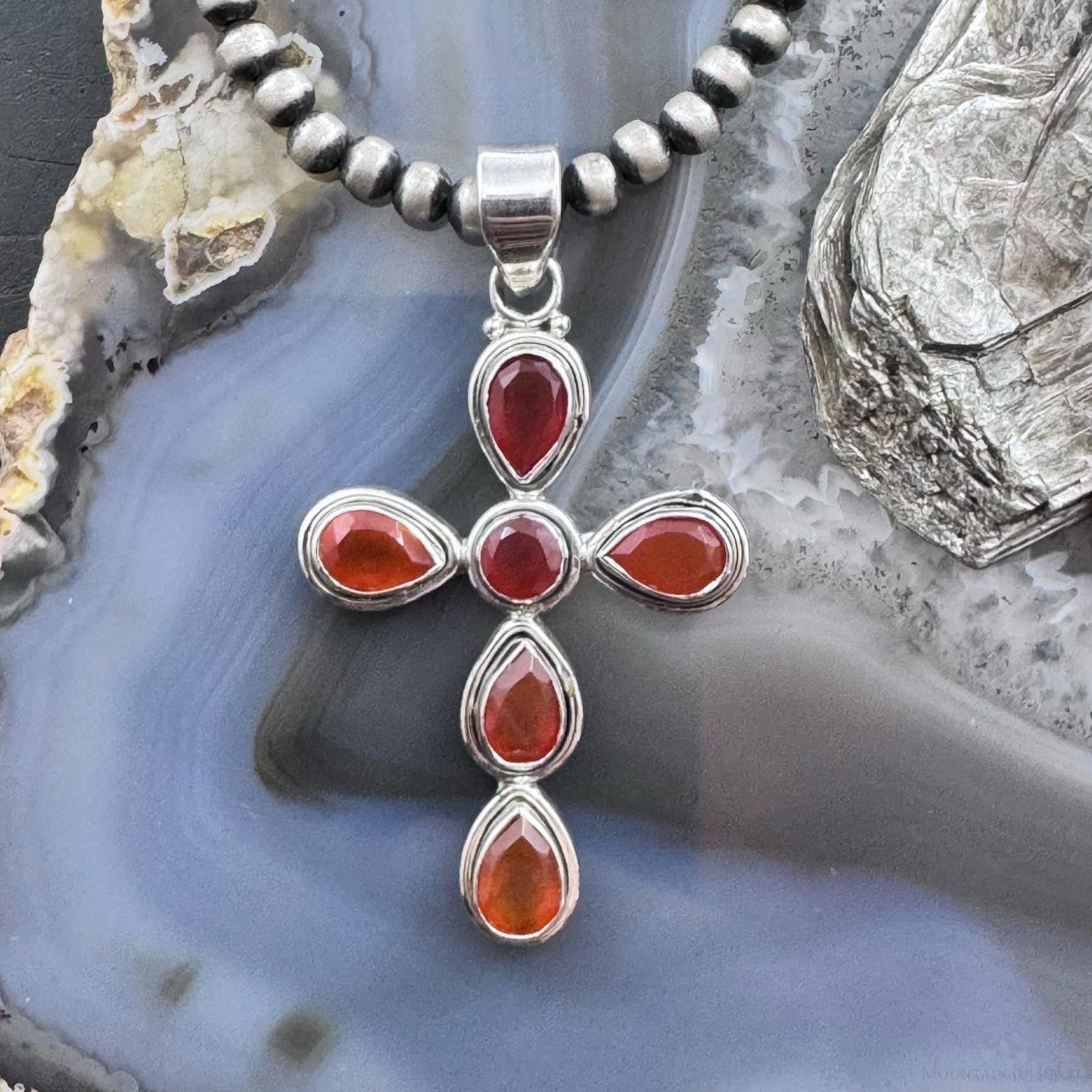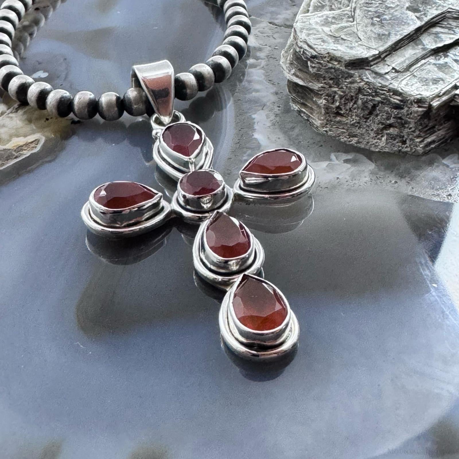 Sterling Silver Southwestern Style Carnelian Decorated Cross Pendant For Women