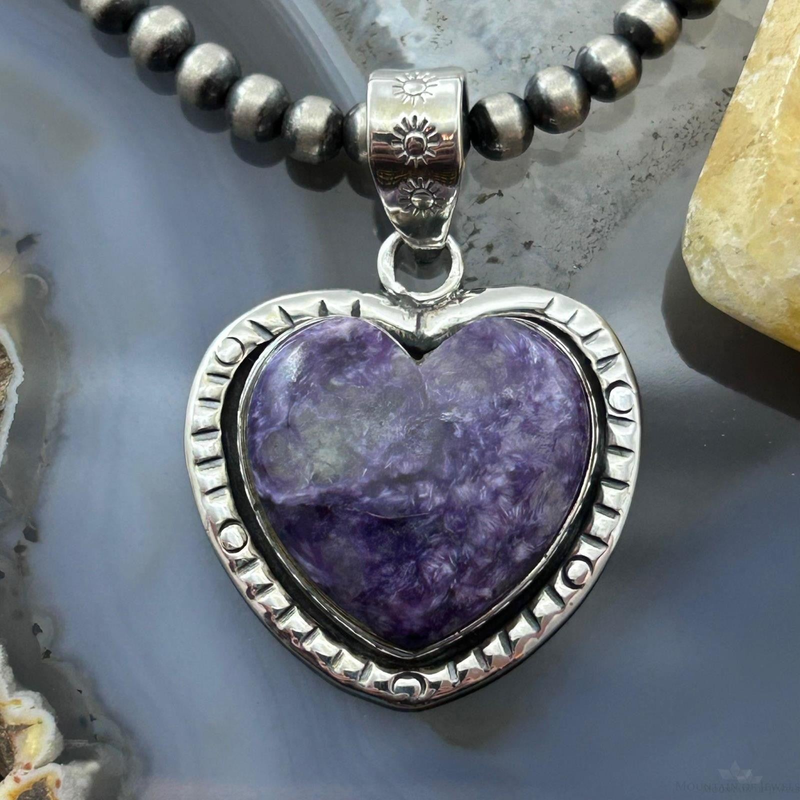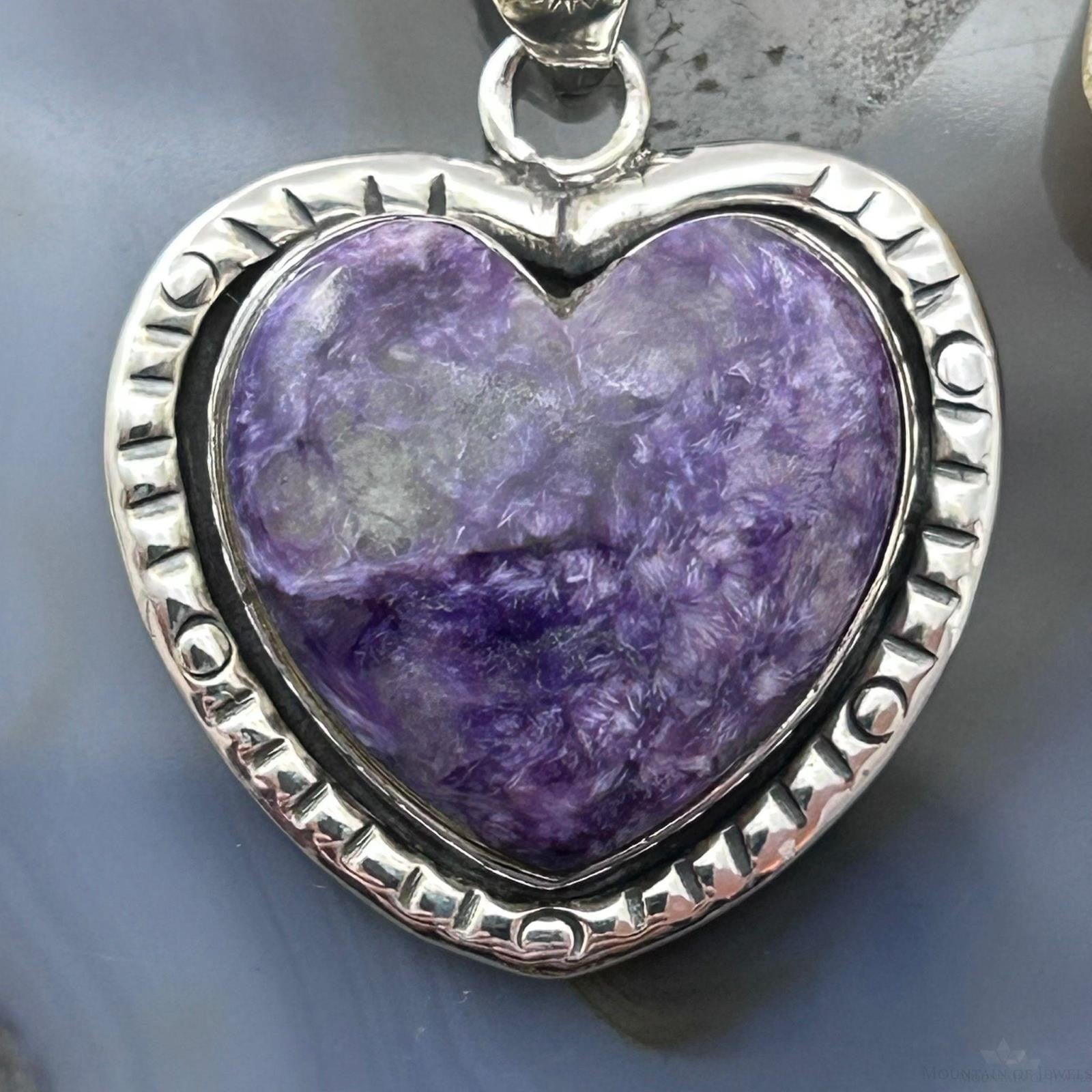 Sterling Silver Southwestern Style Charoite Decorated Heart Pendant For Women #1