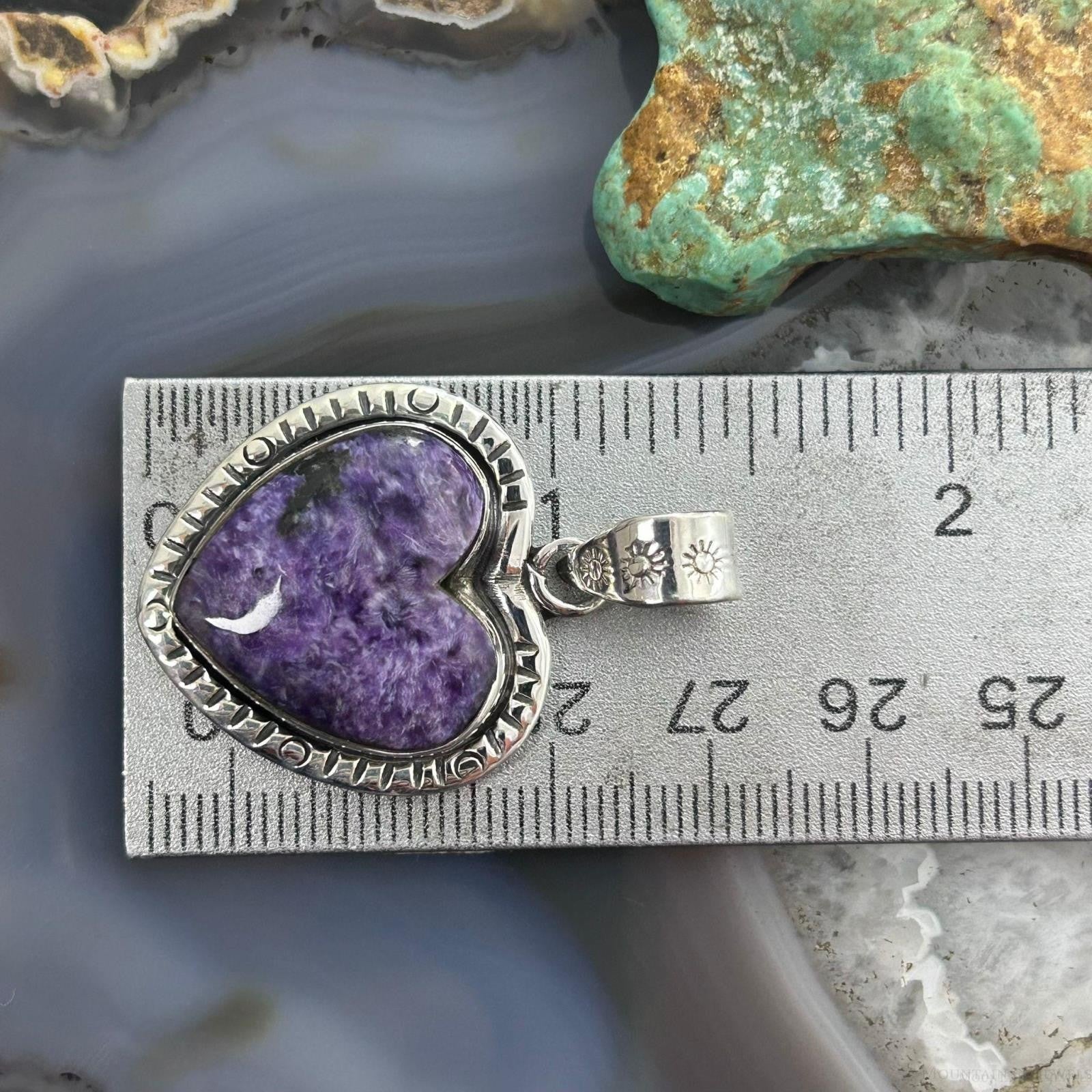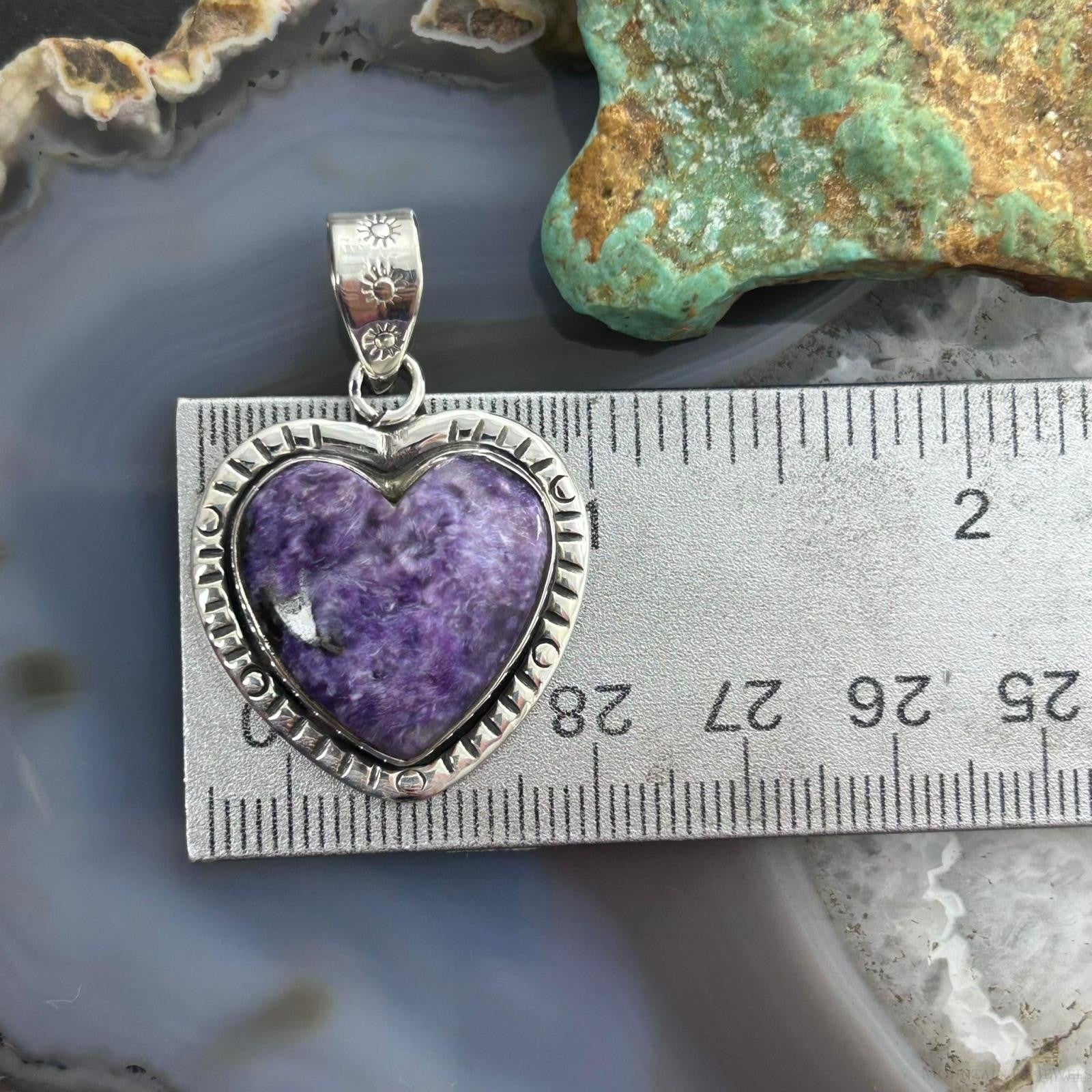 Sterling Silver Southwestern Style Charoite Heart Decorated Pendant For Women