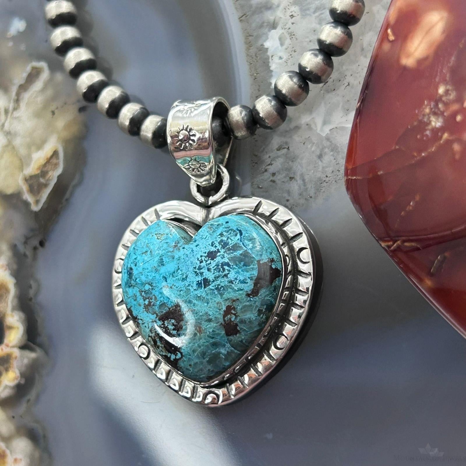 Sterling Silver Southwestern Style Chrysocolla Heart Decorated Pendant For Women