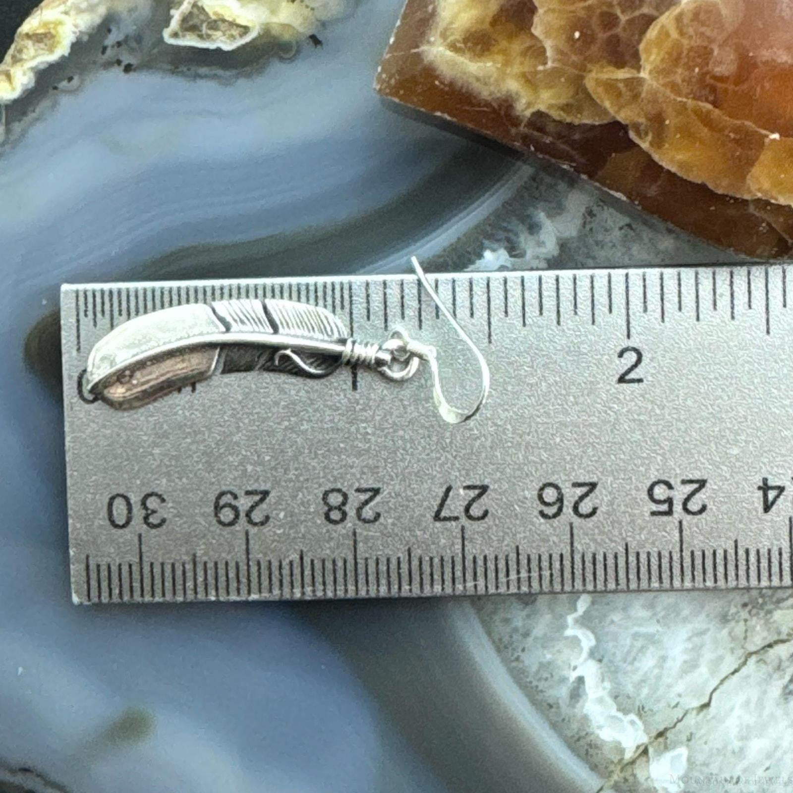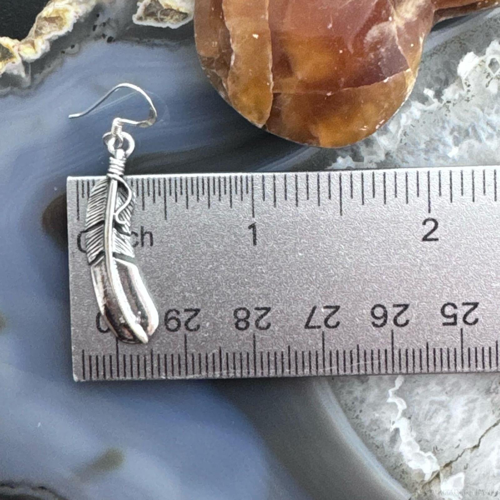 Sterling Silver Southwestern Style Curved Feather Dangle Earrings For Women