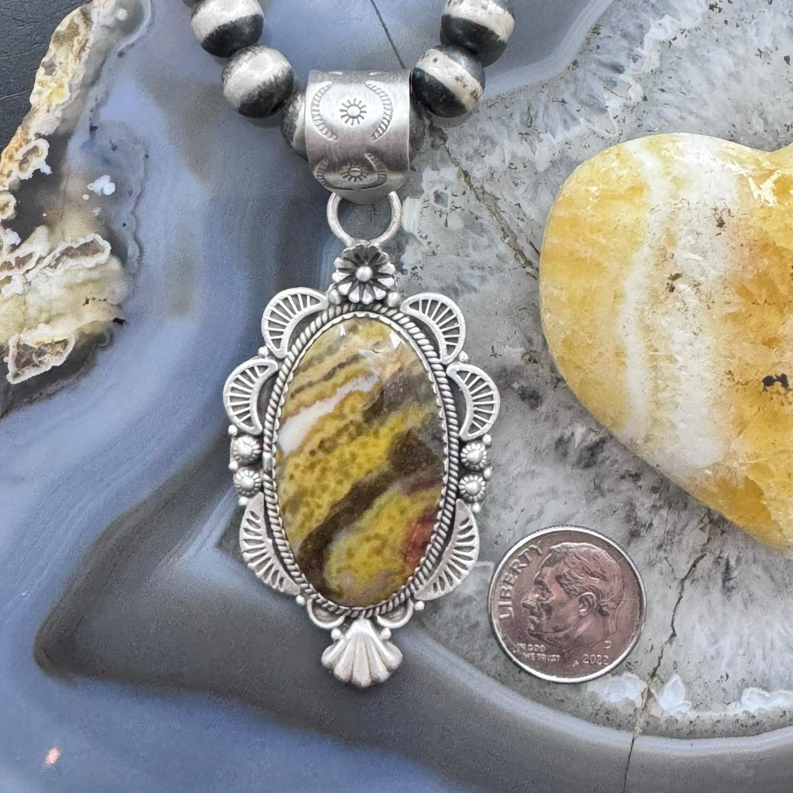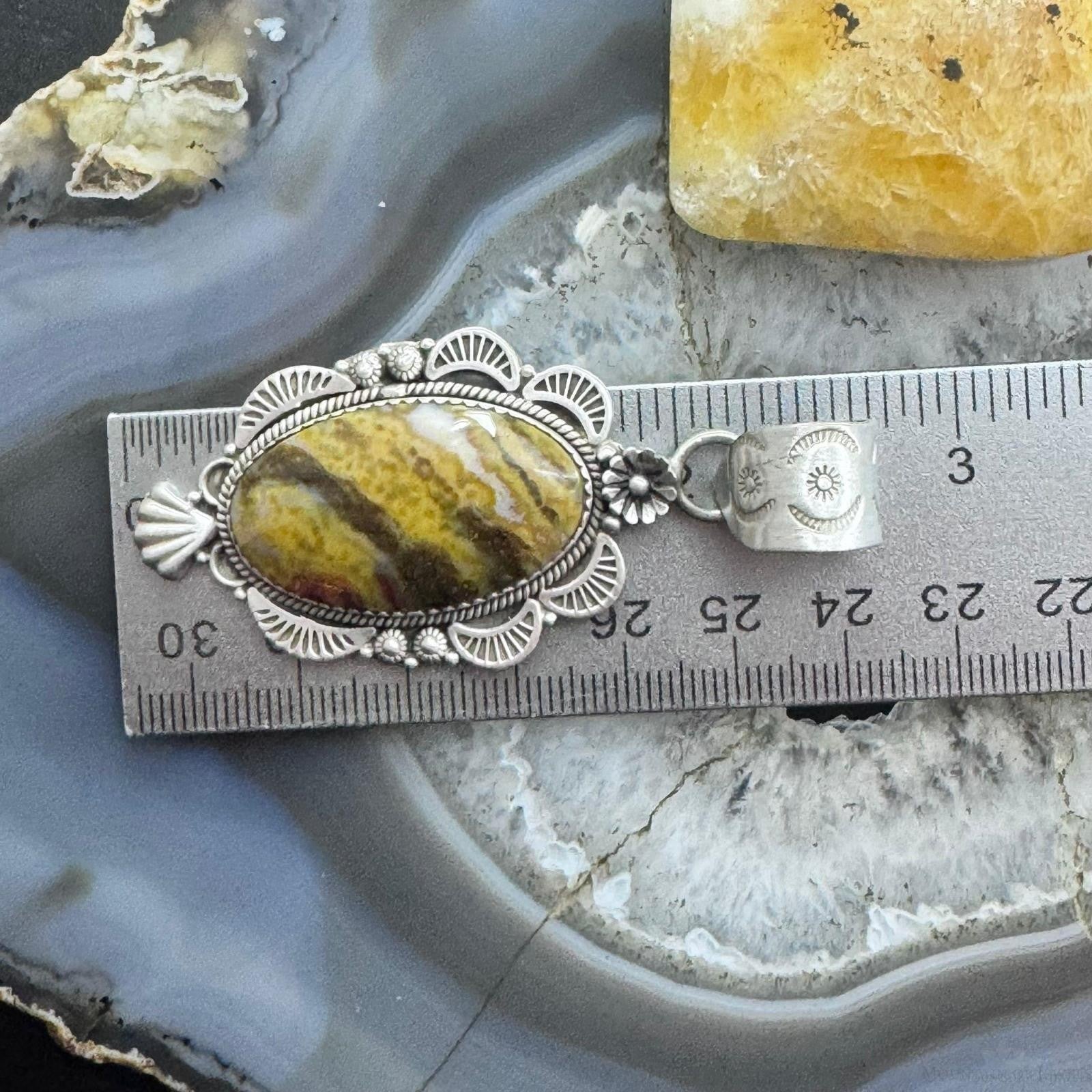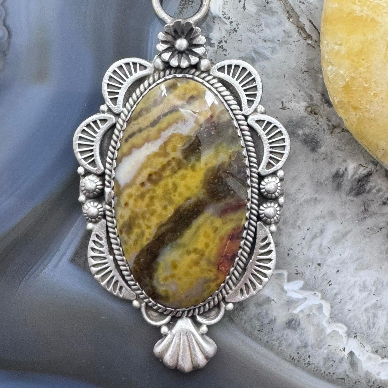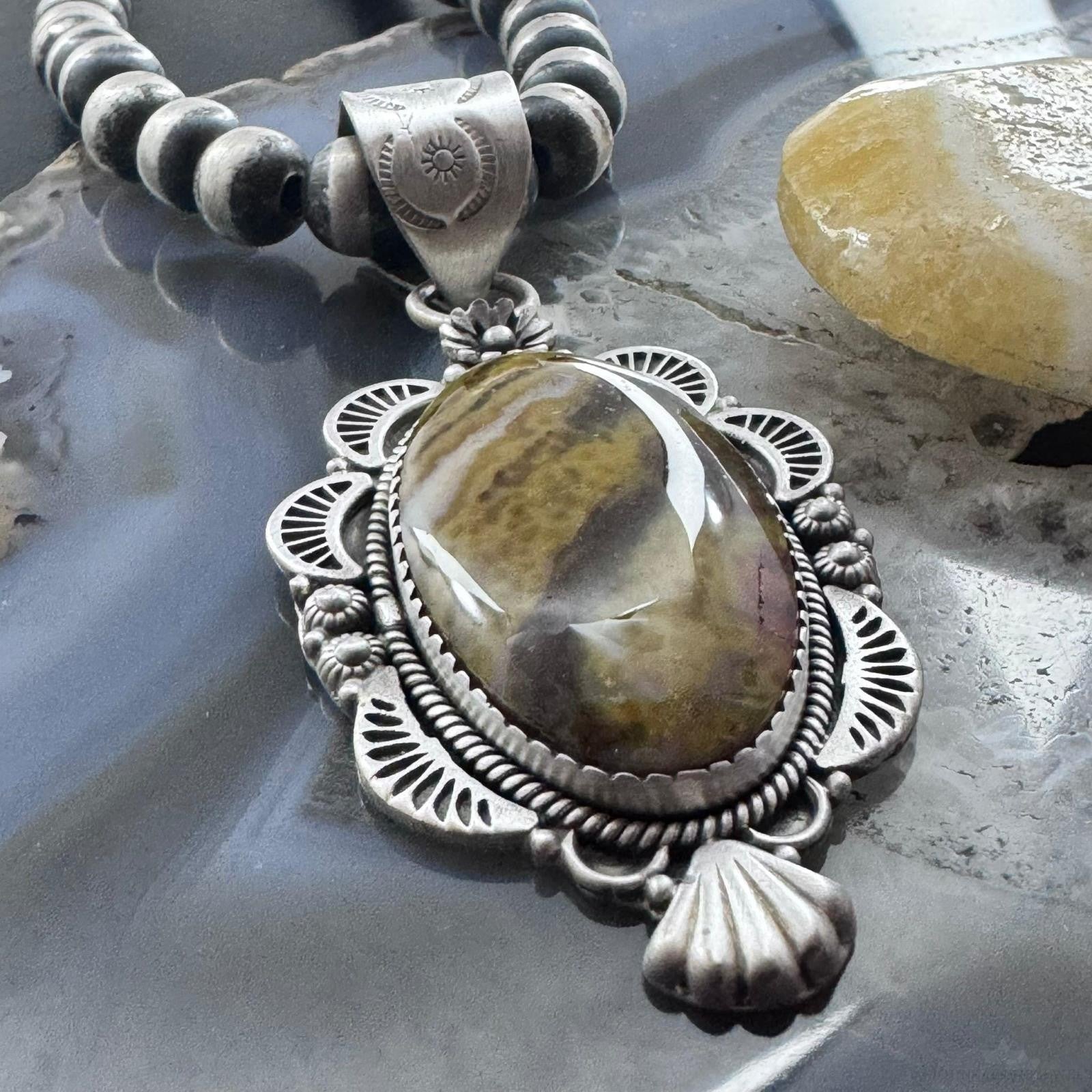 Sterling Silver Southwestern Style Elongated Oval River Jasper Pendant For Women